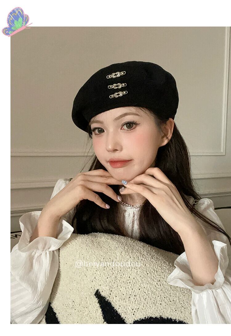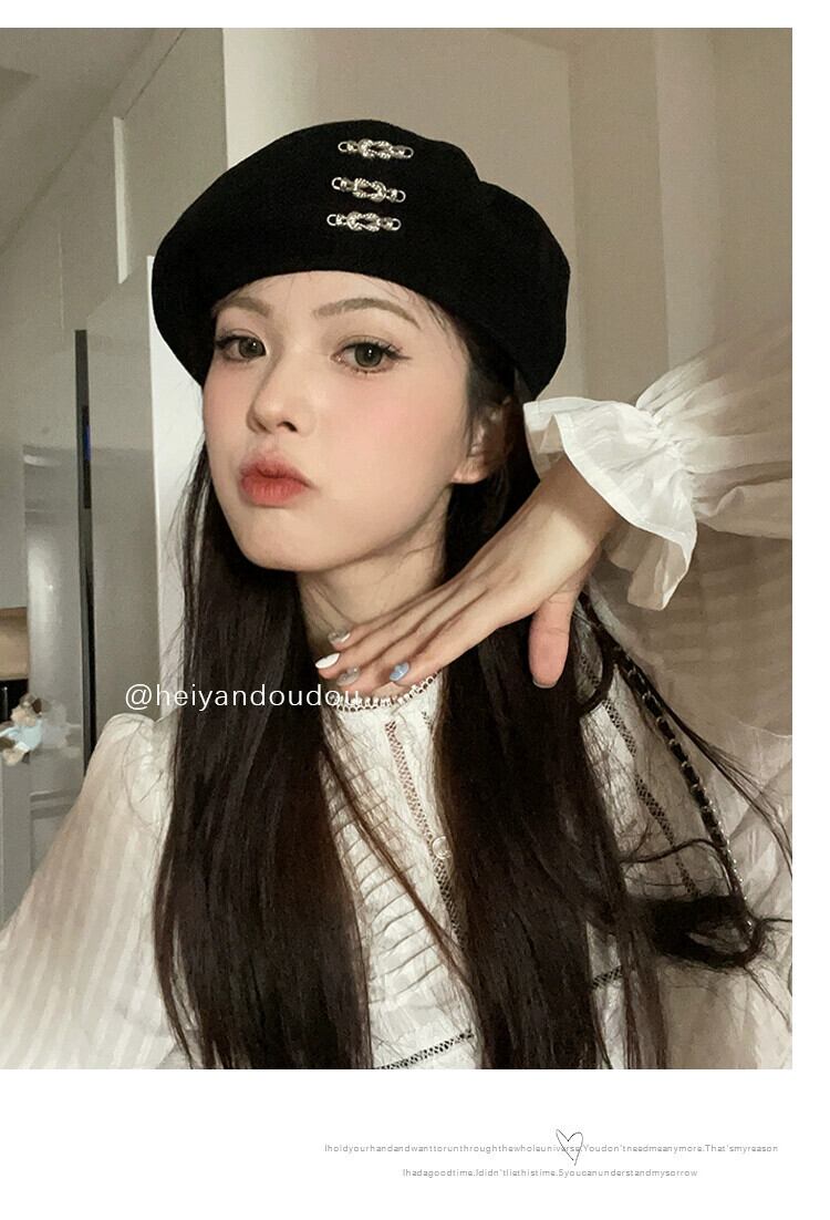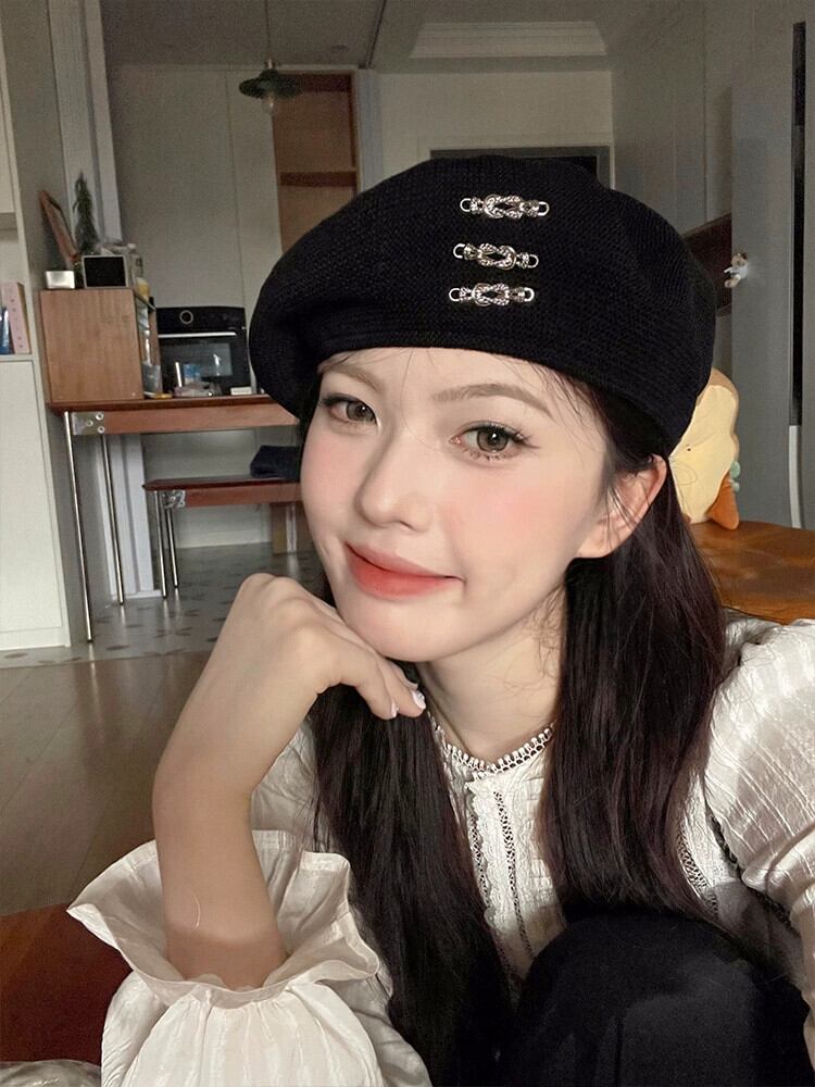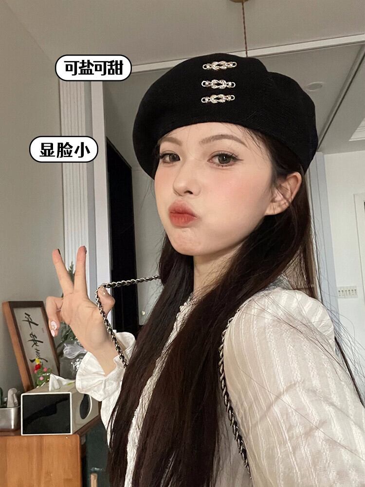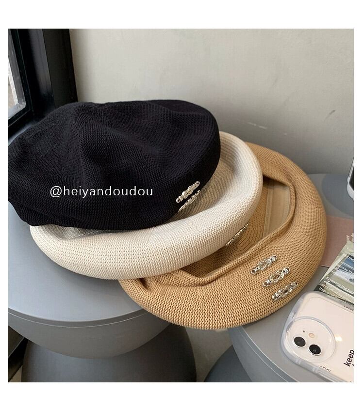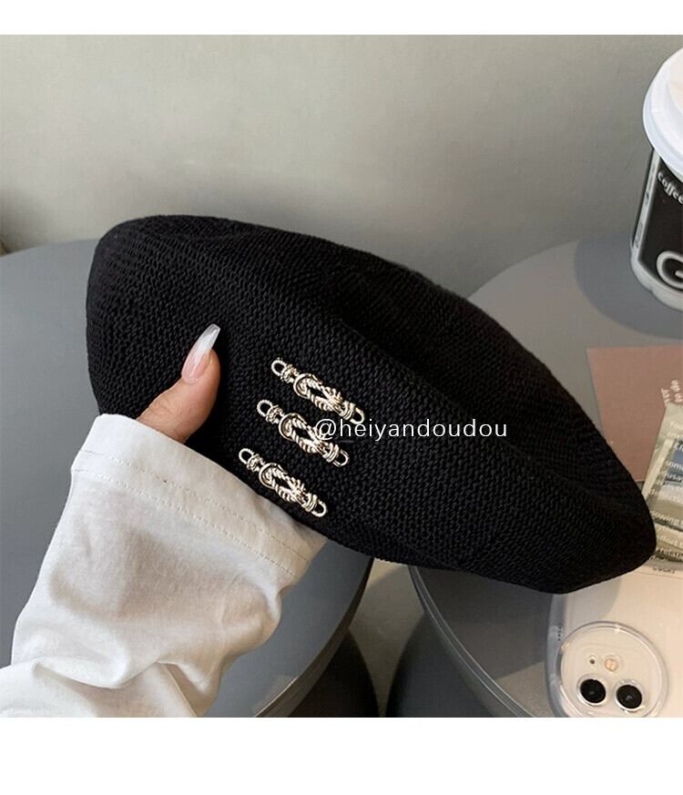 2023 黒ベレー帽女性の夏薄いニッチ大きな頭ウエスト芽帽子ショー小顔 ブラック サマー 夏物 ベレット ヘアアクセサリー 15dd33110538147