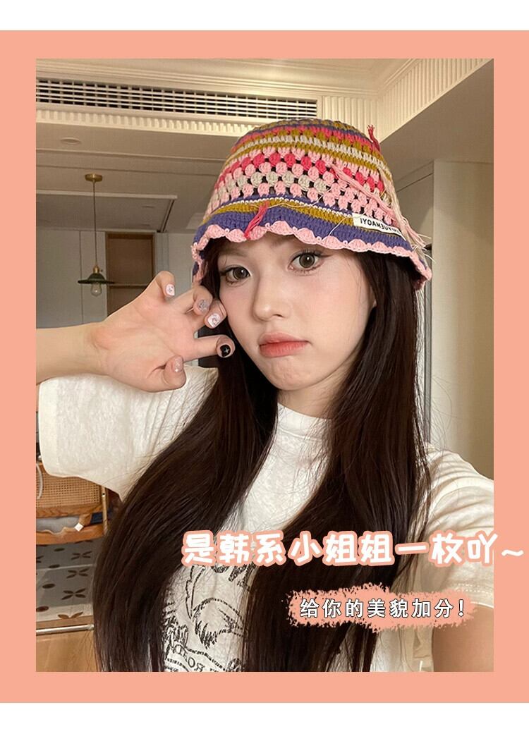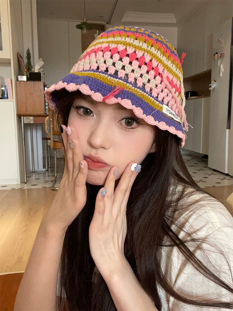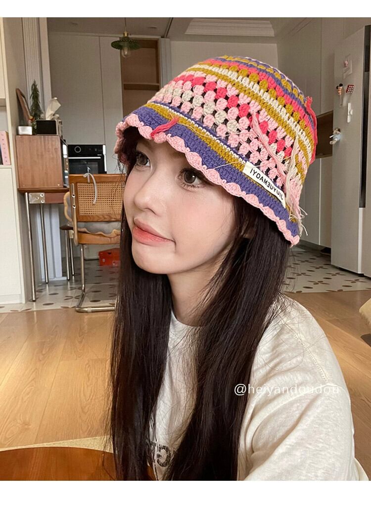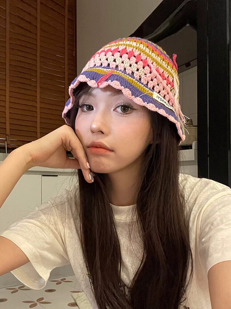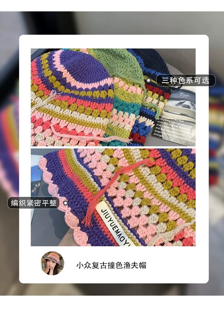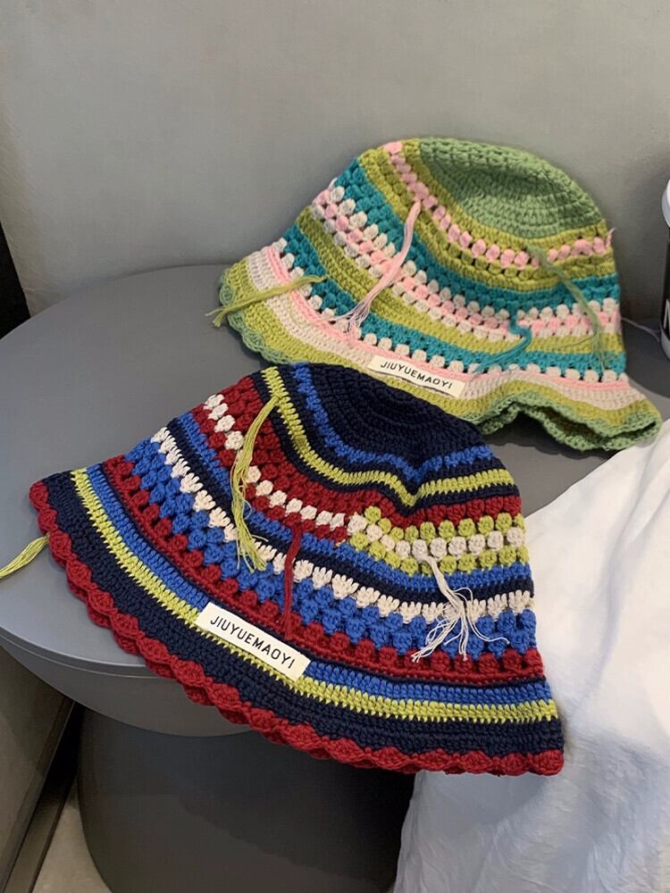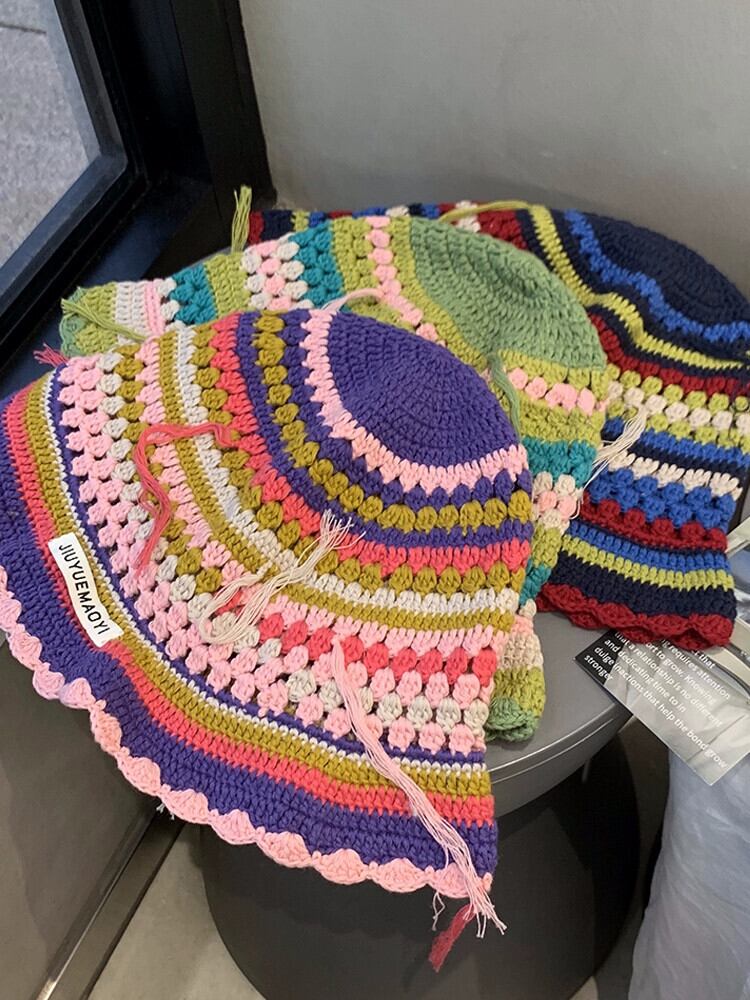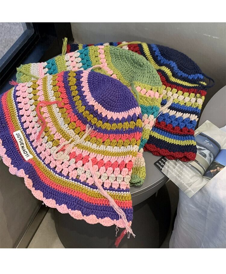 ニッチなデザインのレトロな手作りのかぎ針編みのストライプのウールの帽子の女性、甘くて顔に優しい、多用途の漁師の帽子トレンディです。 大人ガーリー スウィート キュート カジュアル 15dd95900236561