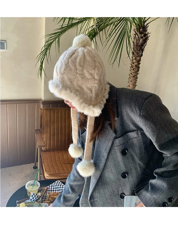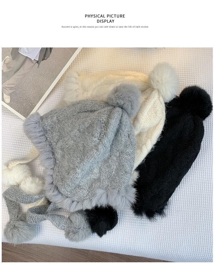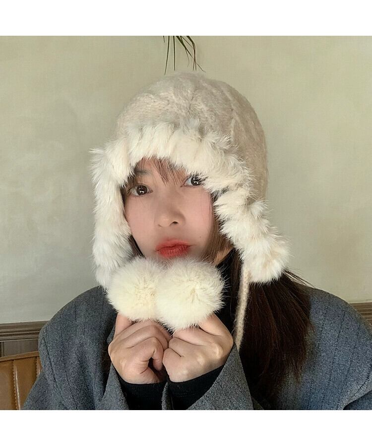 顔が見える小さな帽子の女性、冬の雷峰帽子、防寒プラスベルベット、多用途の耳保護、暖かいウサギの毛皮ニットウール帽子、包頭 ウィンター 冬物 15dd74851090735