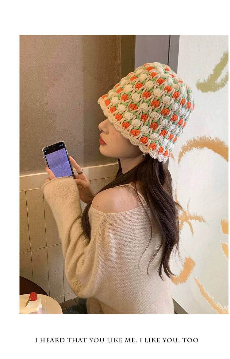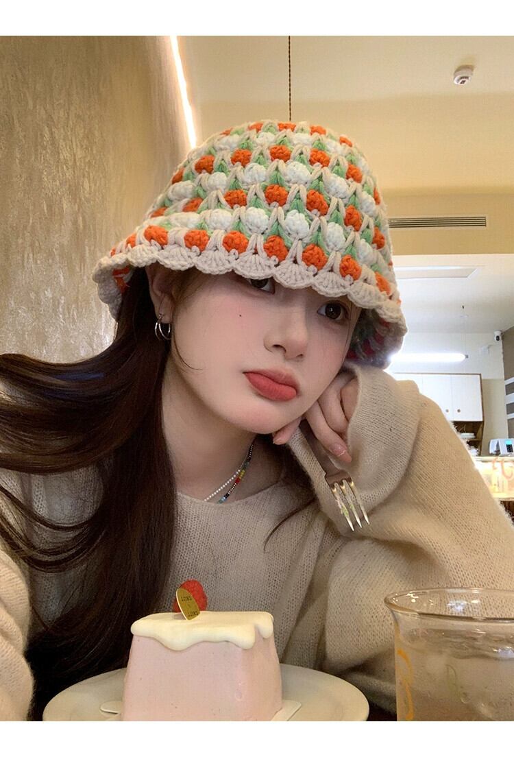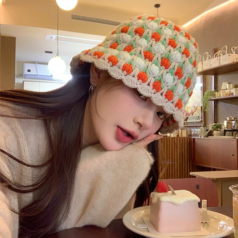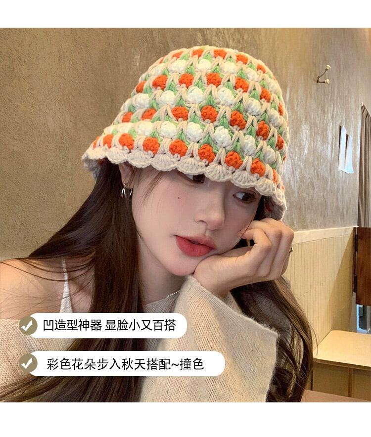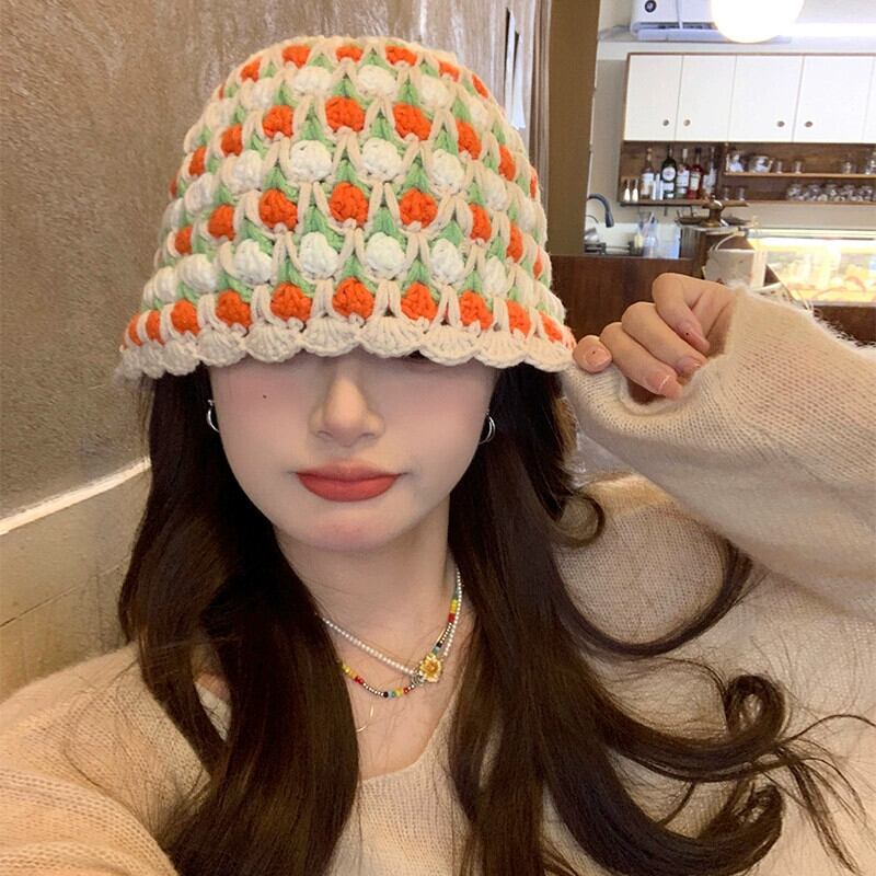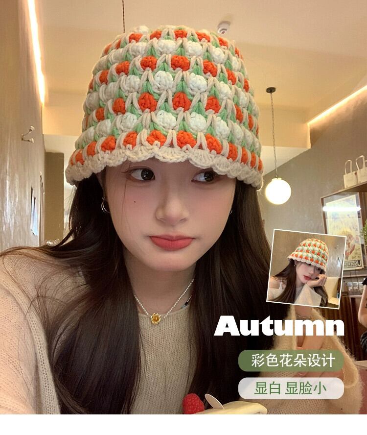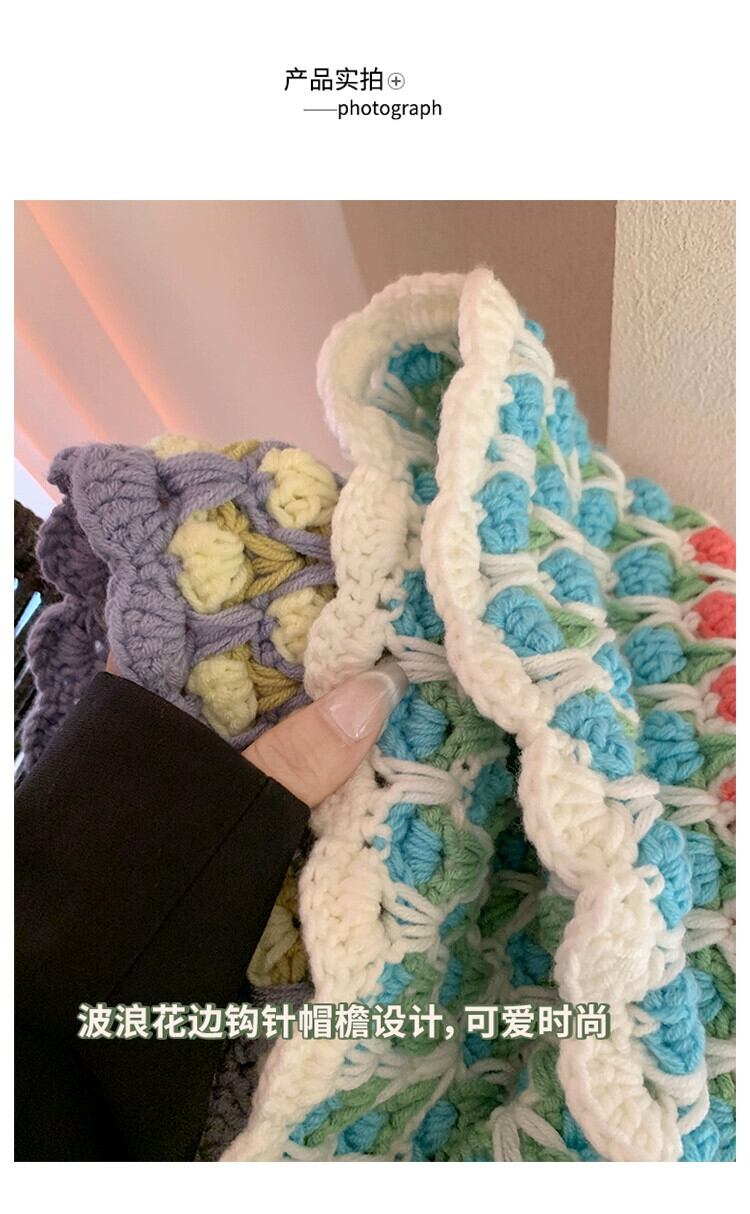 手織りのコントラストカラーのウールの帽子の女性、秋と冬の新しいスタイルの大きな頭囲のニット帽多用途暖かい漁師の帽子洗面器の帽子トレンディな オータム 秋物 ウィンター 冬物 15dd79045928886