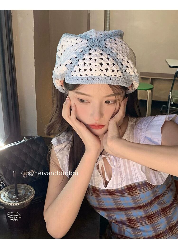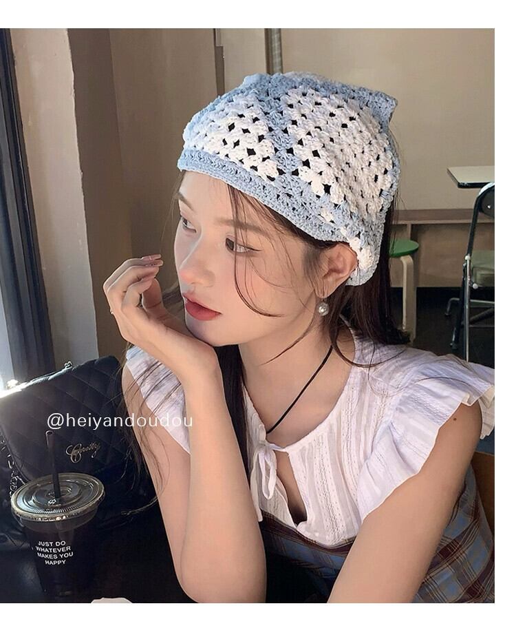 インス甘いレトロ手編みヘアバンド春と秋の女性旅行ポグラフィ文学かぎ針編みの三角形のスカーフヘッドスカーフ 大人ガーリー スウィート キュート カジュアル スプリング 春物 オータム 秋物 ヘアアクセサリー 15dd48263794862