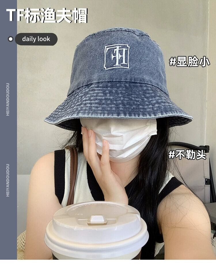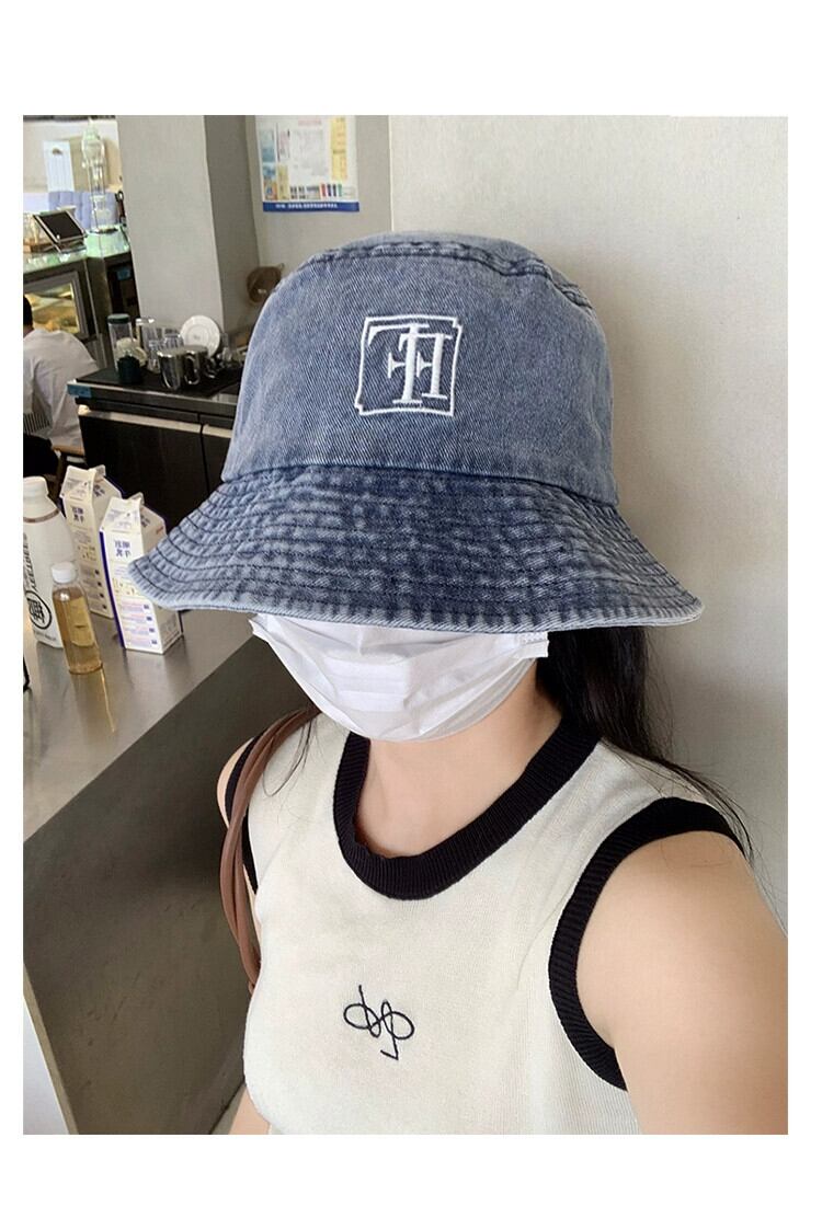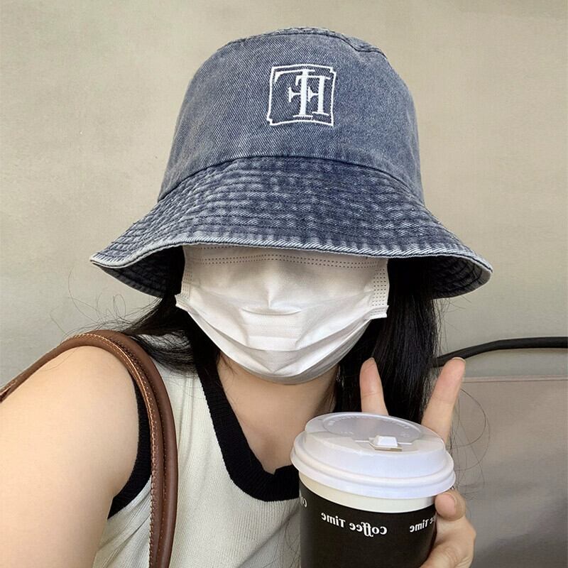ese レトロ デニム フィッシャーマン ハット レディース 薄い スタイル オールマッチ 日よけ 盆地帽子 メイクなしで顔をカバーして小顔に見せるバケットハット 15dd3773694003