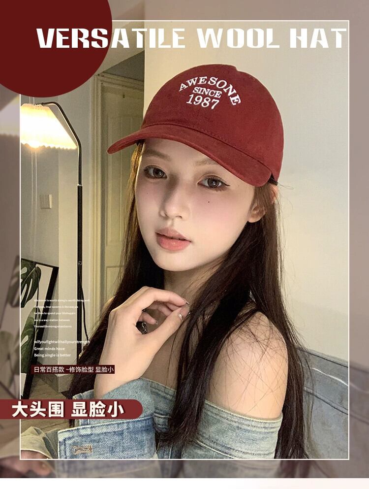 アメリカンレトロレターベースボールキャップレディース、大きくて深め、広いつば、ひさし付きキャップ、多用途、大きな頭囲、小顔の帽子 15dd29184032126