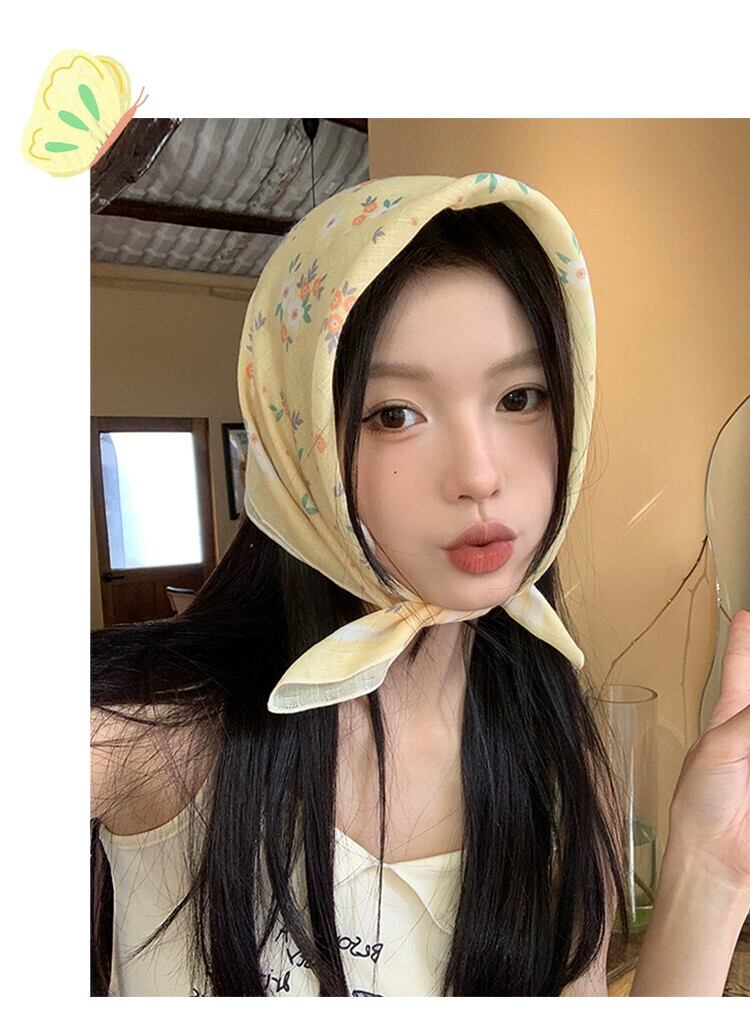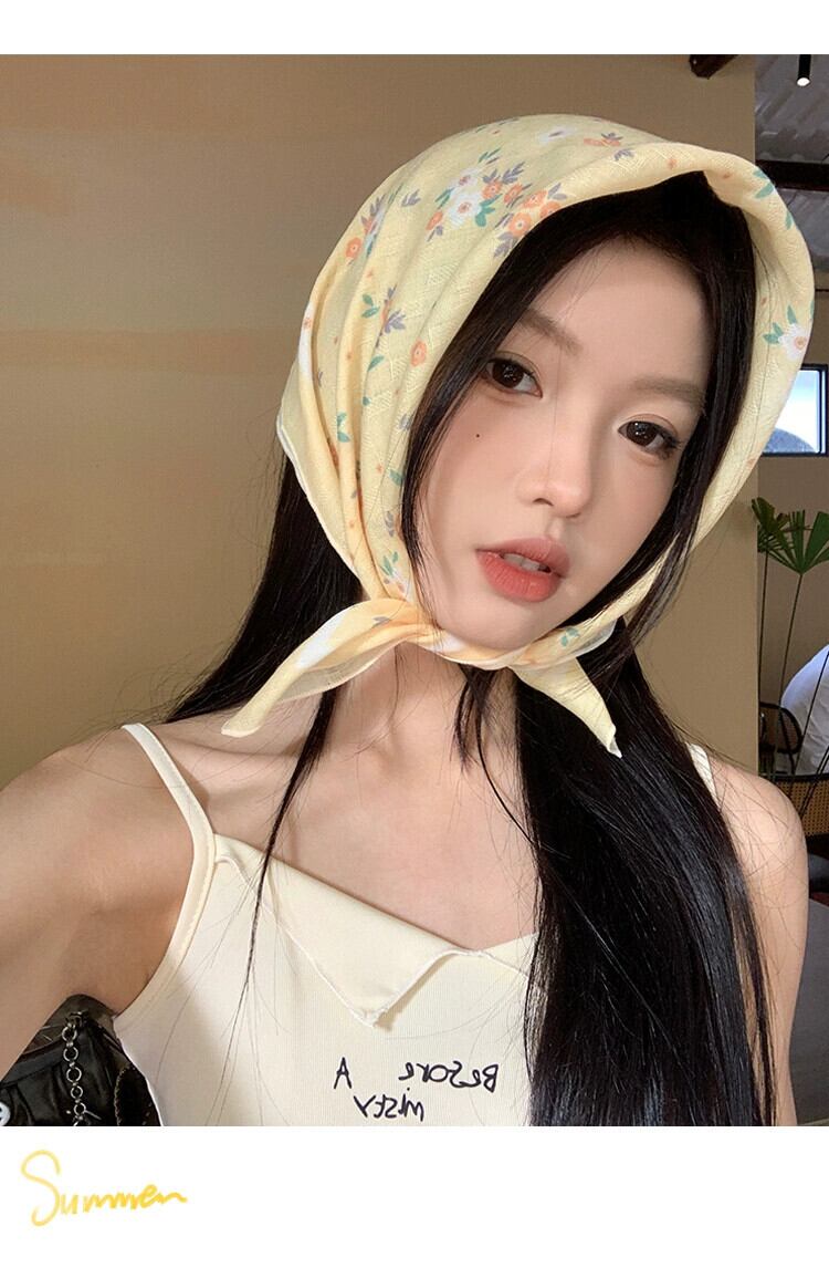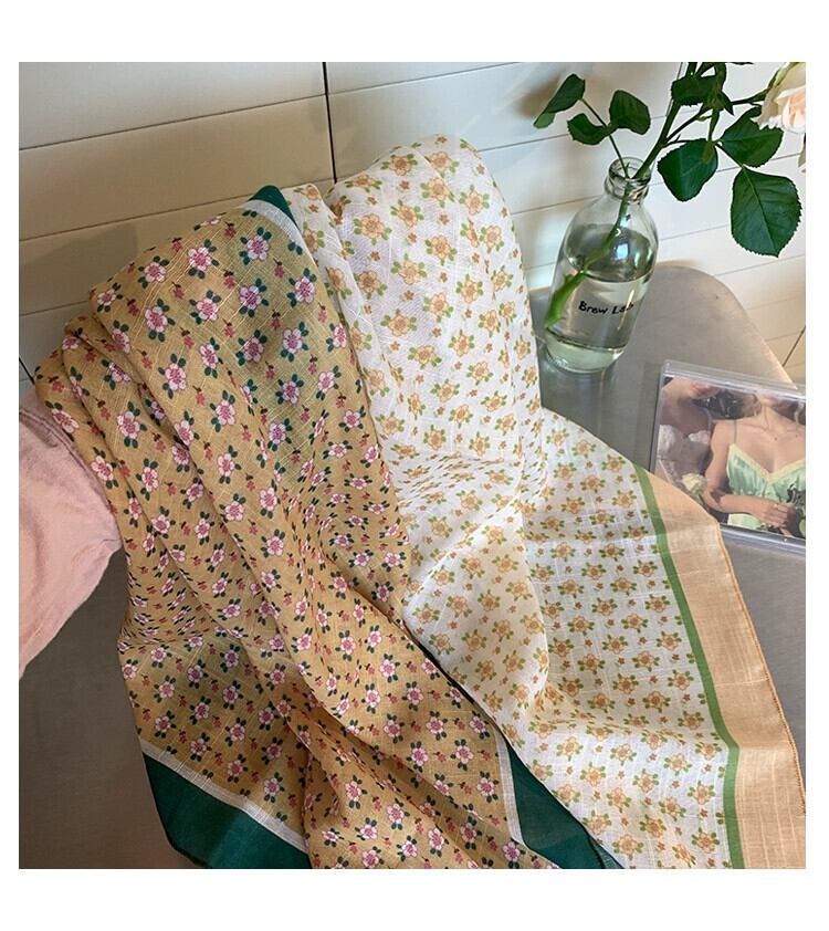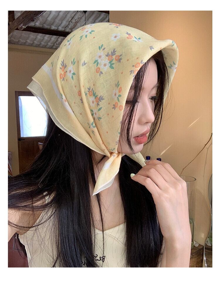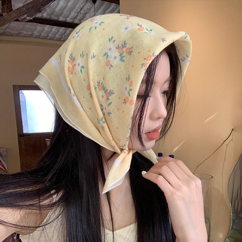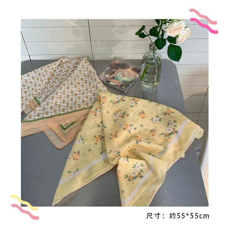 綿とリネンの小さな正方形のスカーフ、女性、ハイエンド、新鮮で通気性、文学的で芸術的な装飾的な小さなシルクスカーフ、夏の多目的花柄の小さなスカーフ、ヘッドバンド コットン サマー 夏物 ヘアバンド ヘアアクセサリー スクウェア 15dd73273994797