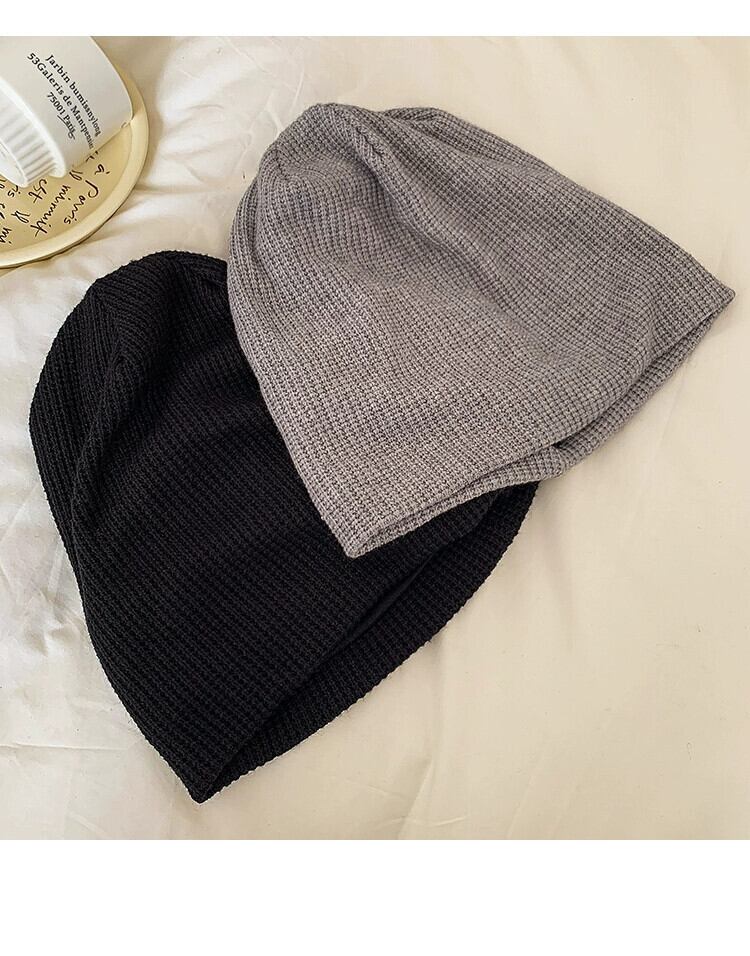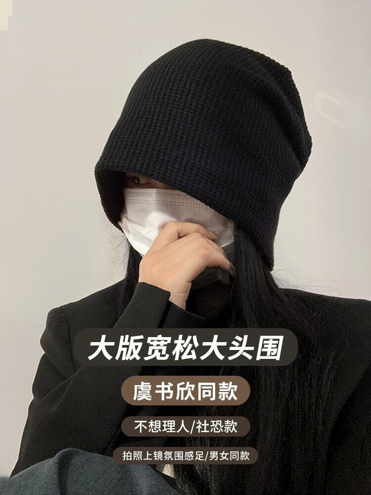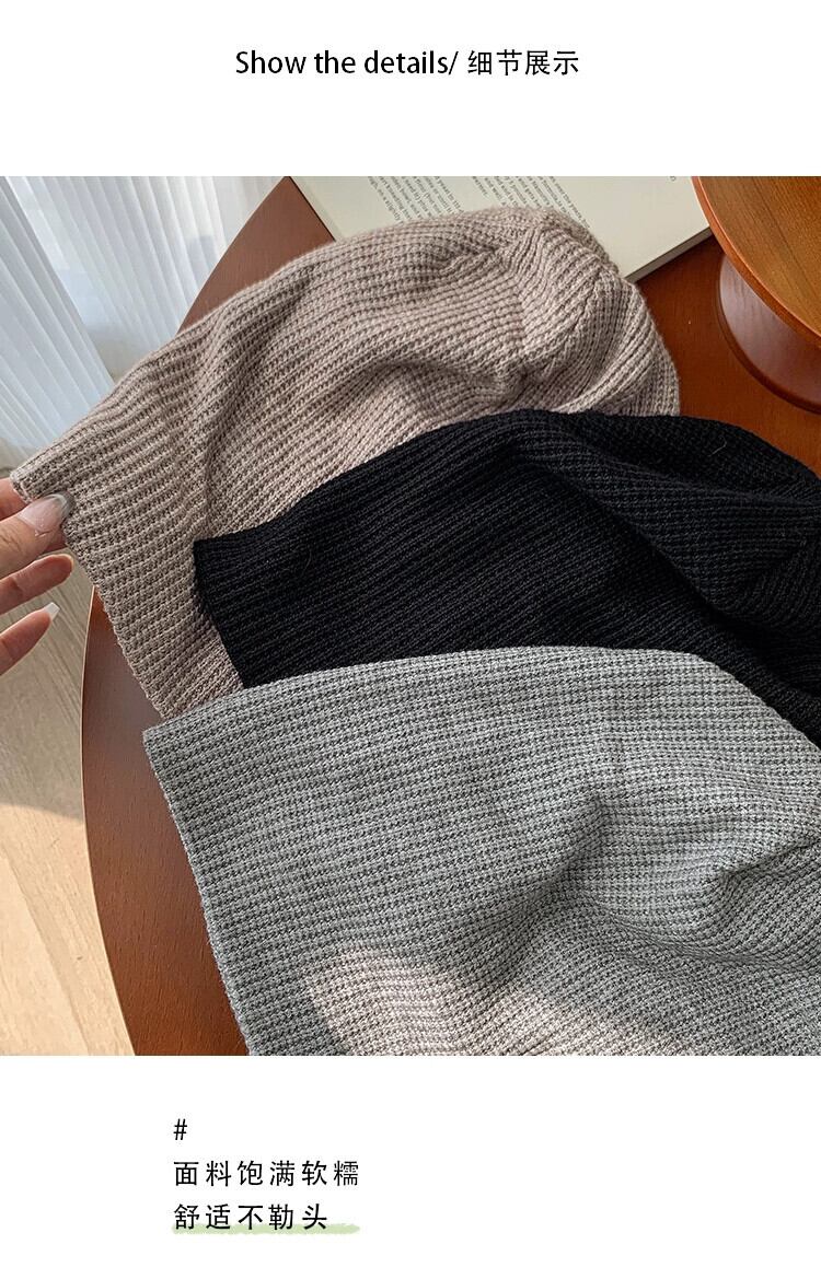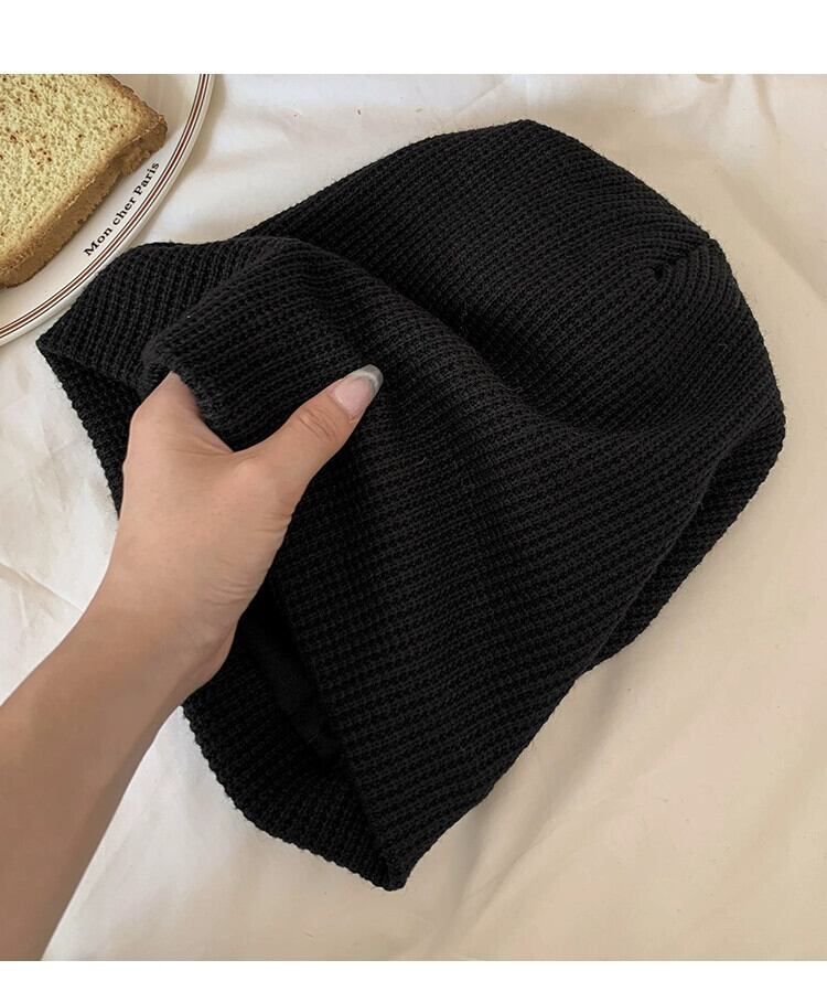 大きな頭囲と小さな包頭ニット防寒帽子スタイルの耳保護閉じ込め帽子トレンディな秋と冬の黒いパイル帽子女性 ブラック オータム 秋物 ウィンター 冬物 15dd65516945862