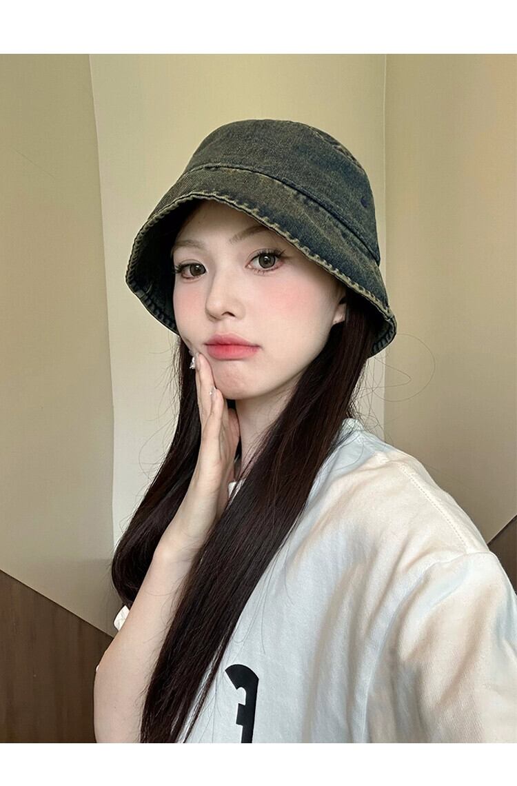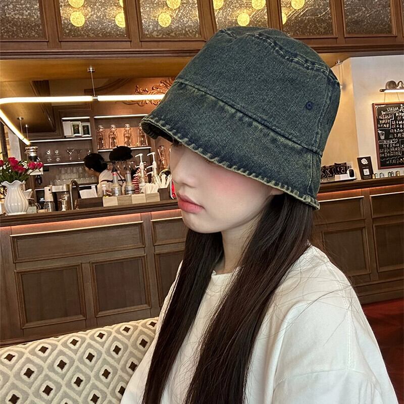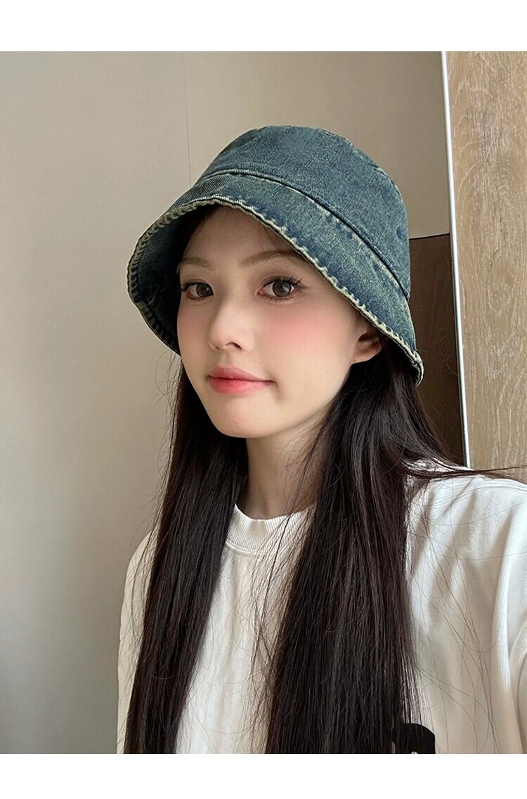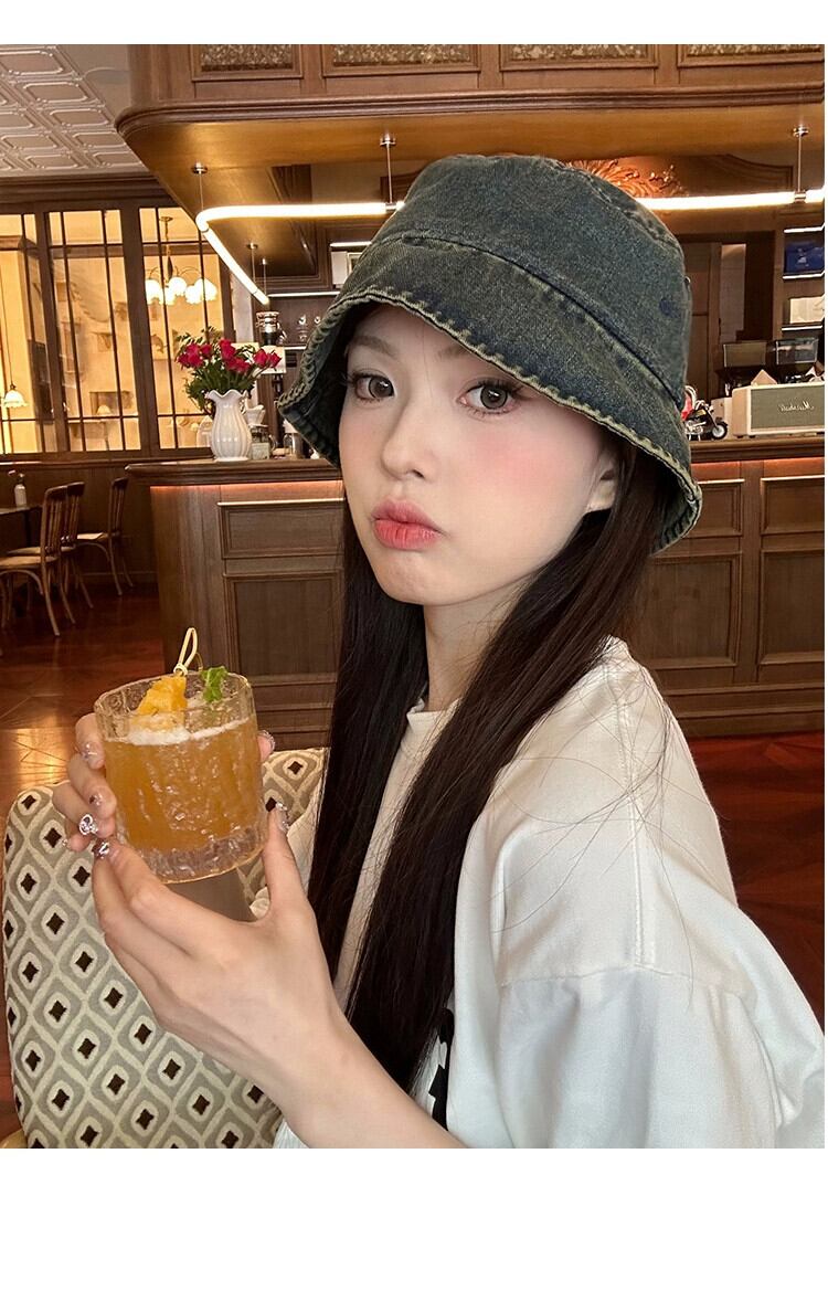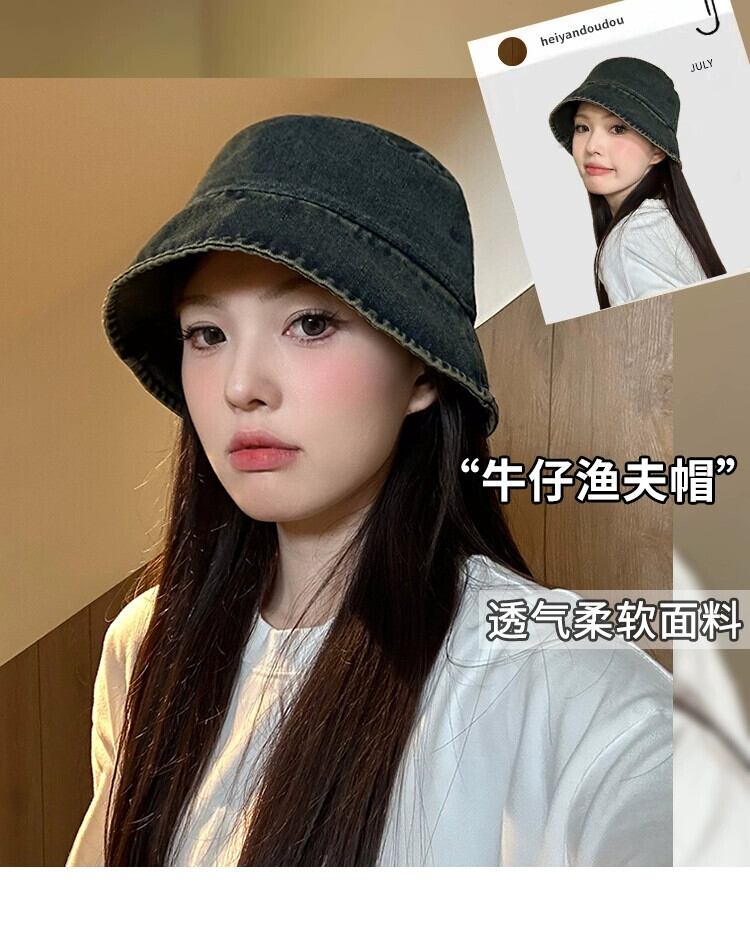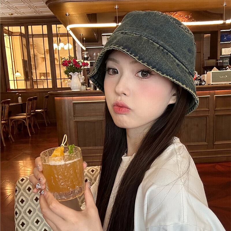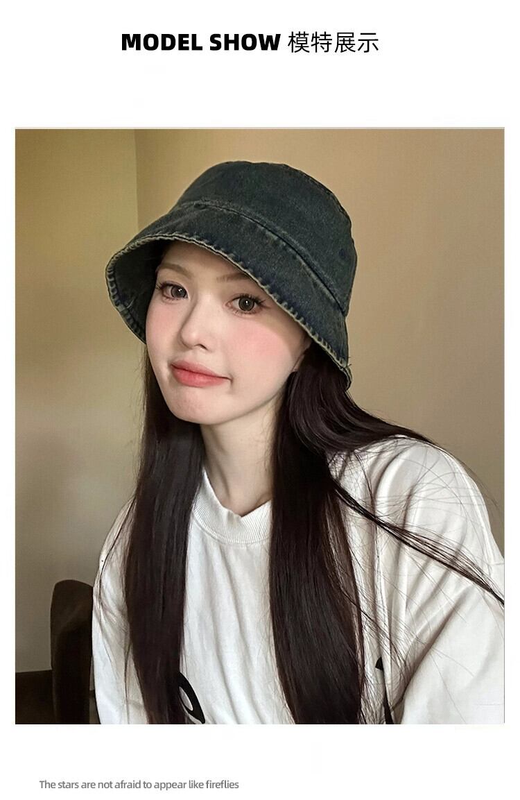 デニム漁師の帽子の女性の秋と冬の 2023 新しい夏短いつば細身気質顔小さな盆地帽子バケツ帽子トレンディな ショート サマー 夏物 オータム 秋物 ウィンター 冬物 15dd82608801985
