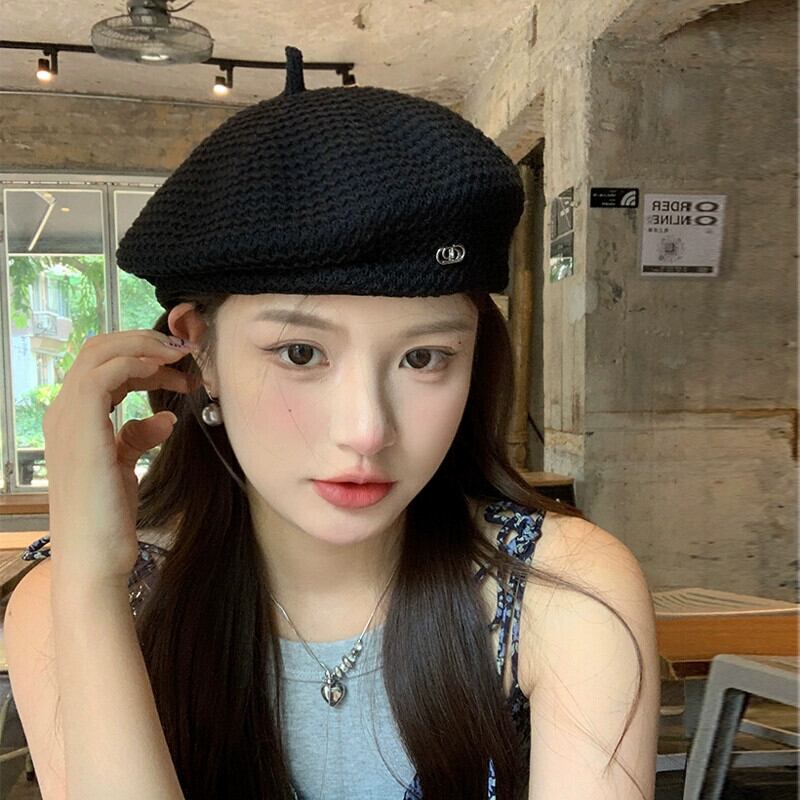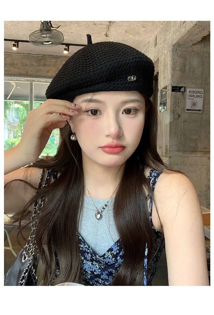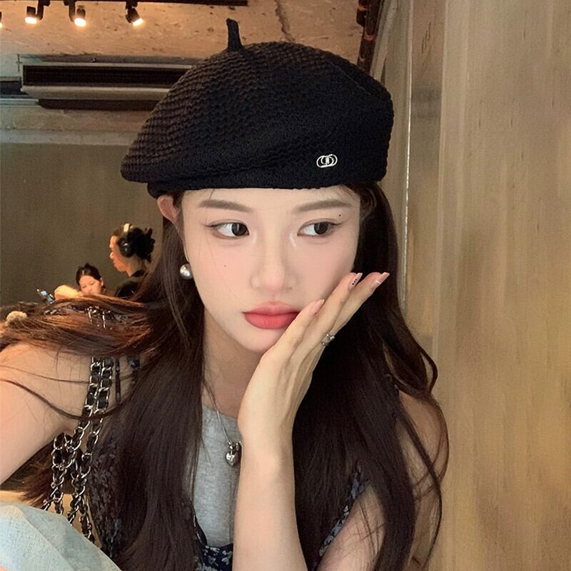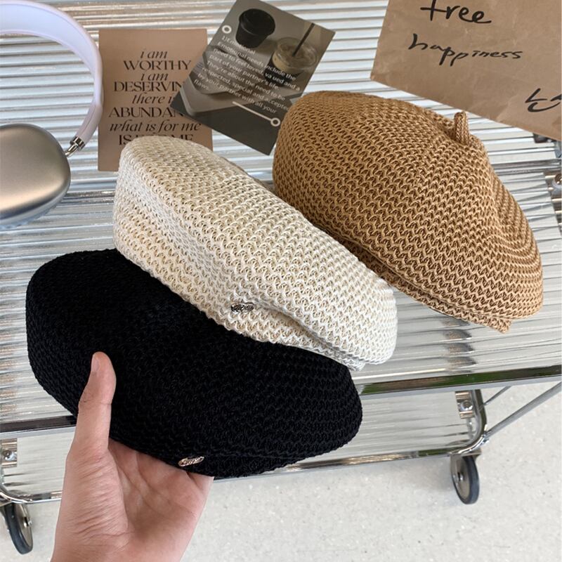 ese ベレー帽の女性 2023 新しいスタイルファッショナブルで多用途、顔が見える小さな夏英国スタイルの通気性の薄いペインター帽子 サマー 夏物 ベレット ヘアアクセサリー 15dd9519612711