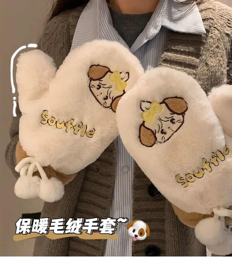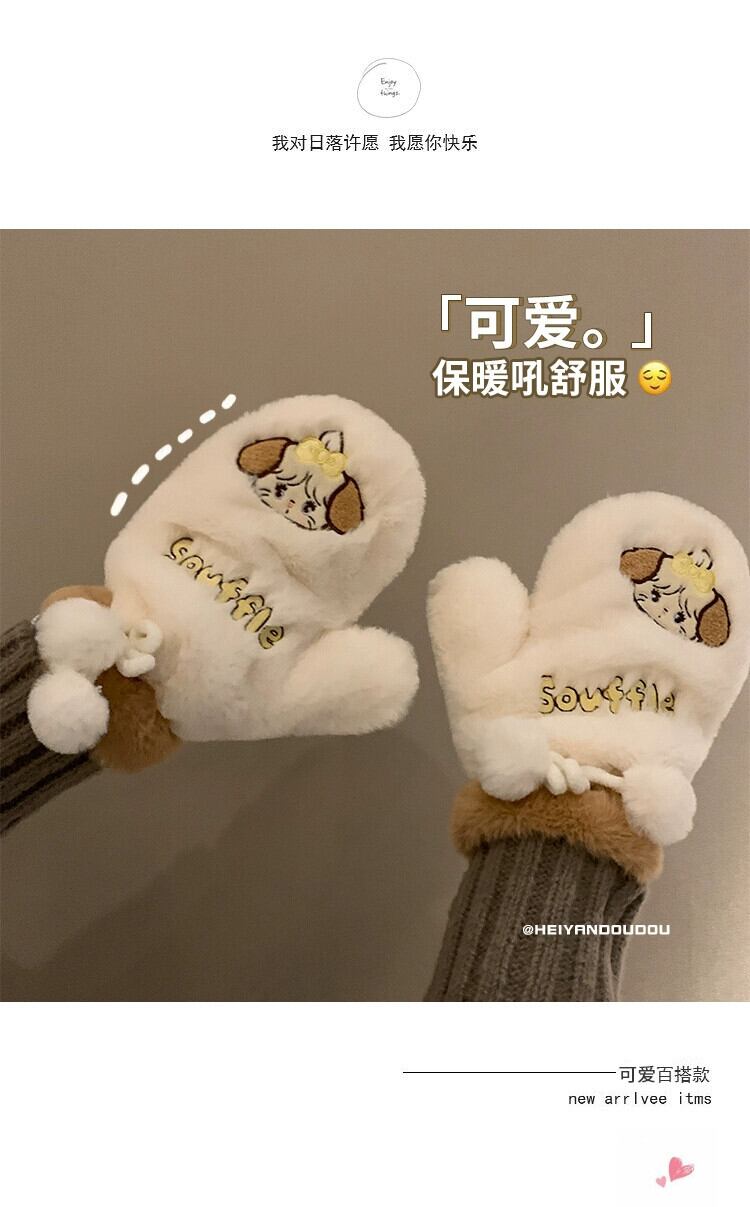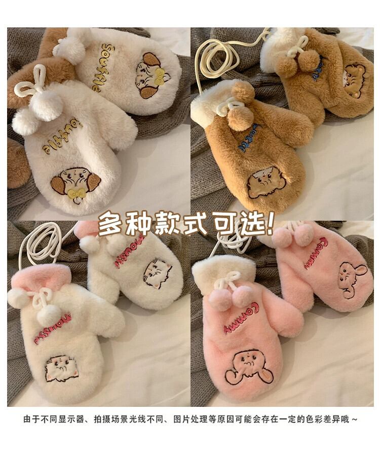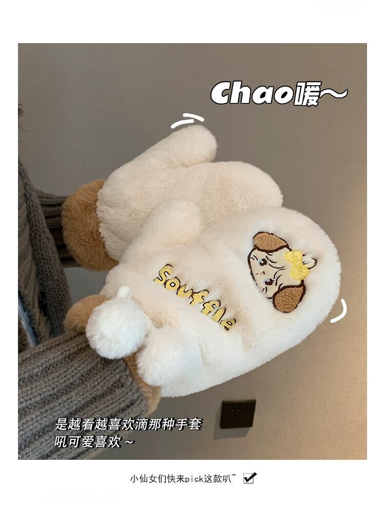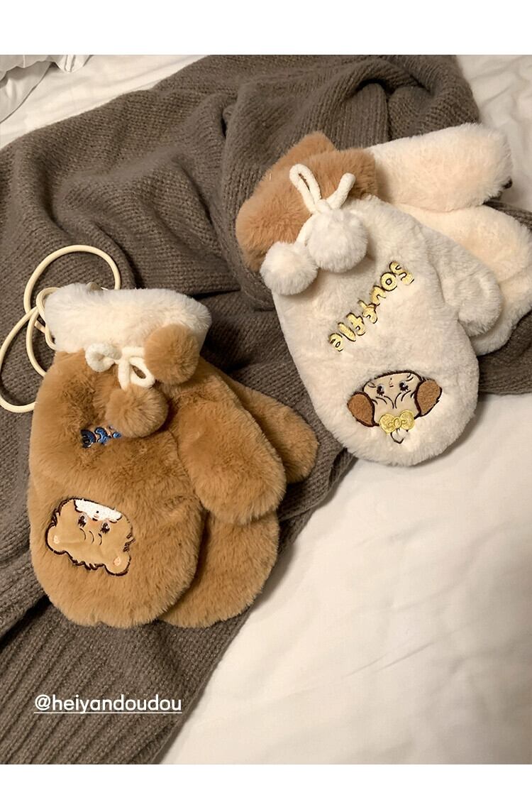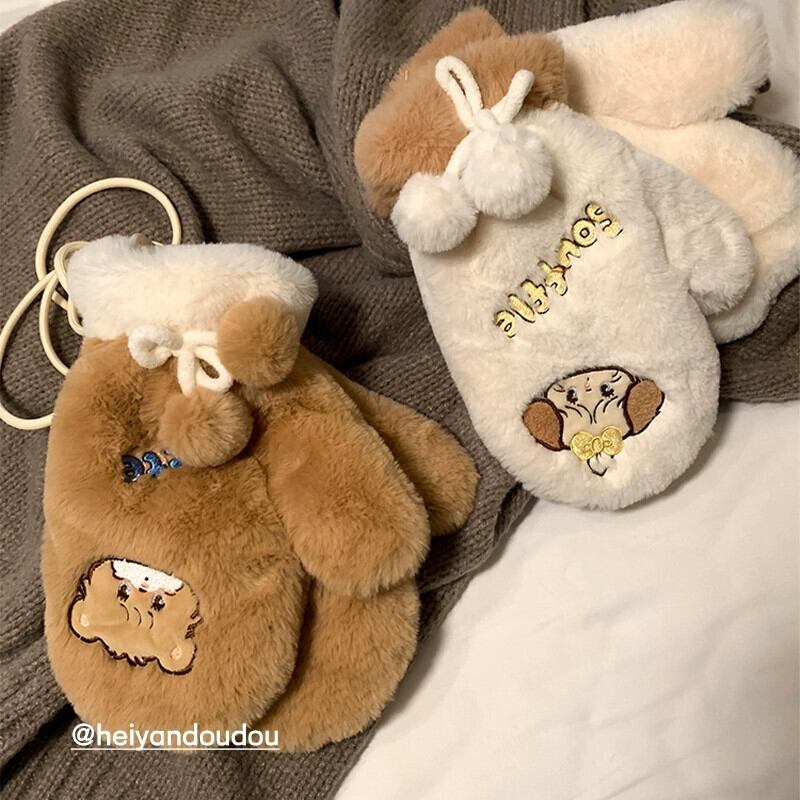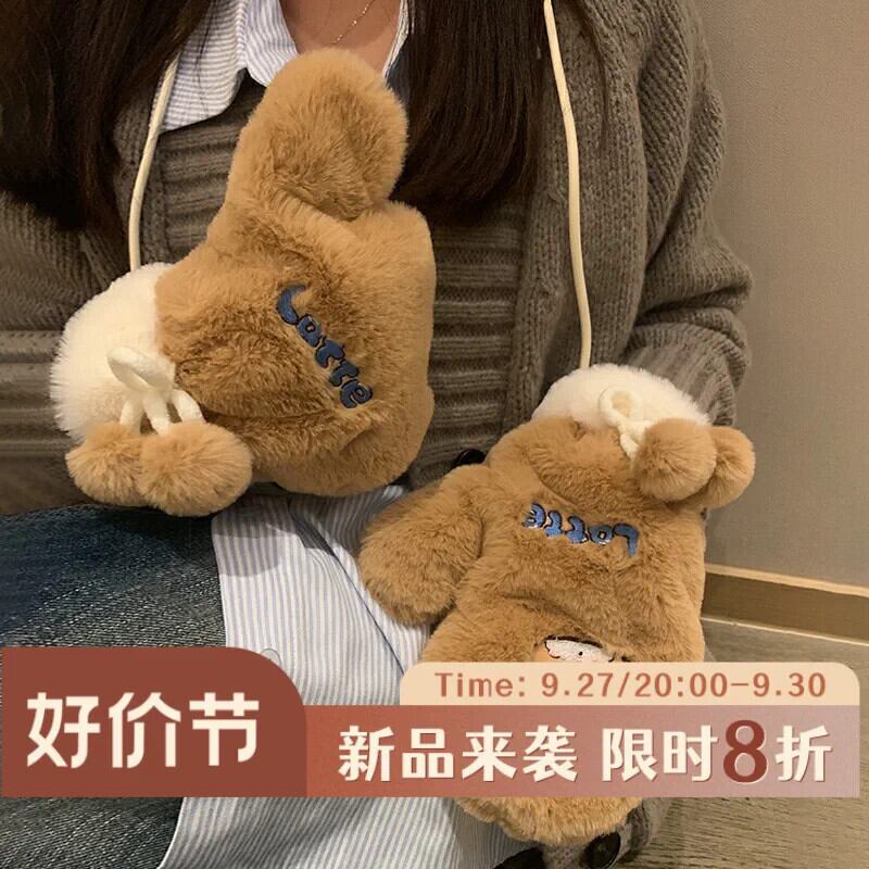 インかわいいクマのぬいぐるみ冬の漫画暖かい肥厚バッグ指暖かく保つためのかわいいミトン 大人ガーリー スウィート キュート カジュアル ウィンター 冬物 15dd60576041180