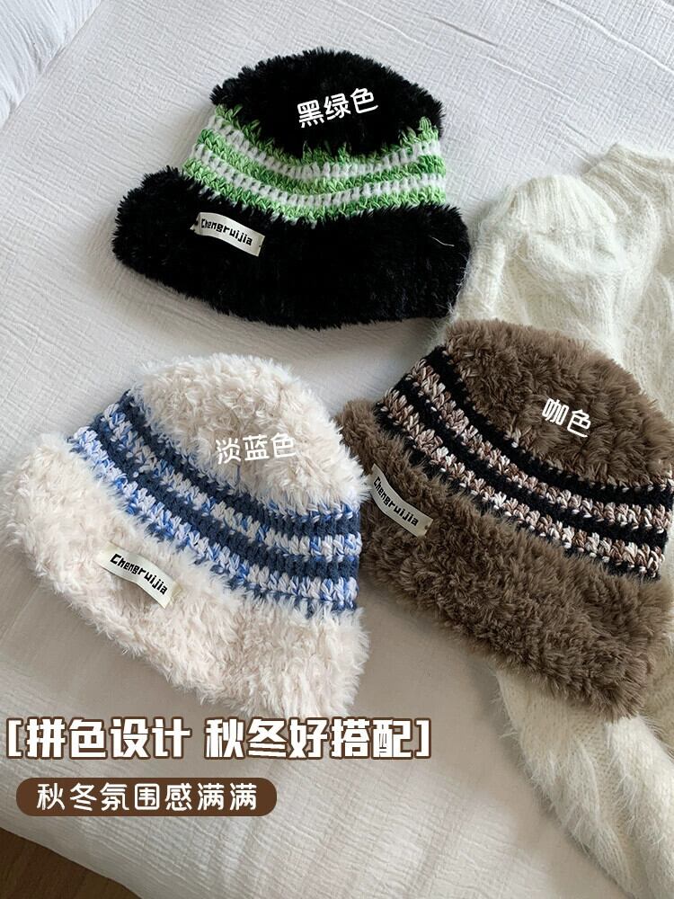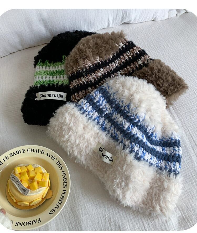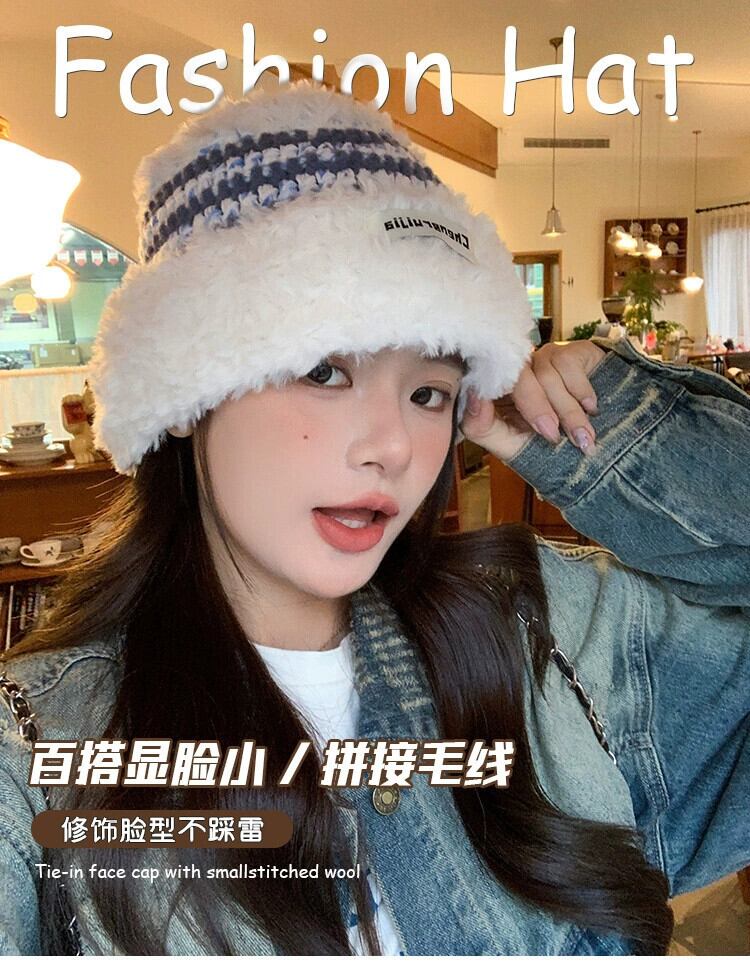 冬の豪華なウールの帽子の女性、耳の保護、防寒、顔が見える小さなニット帽、スタイルの大きな頭囲の防寒帽子のトレンド ウィンター 冬物 15dd46310052181