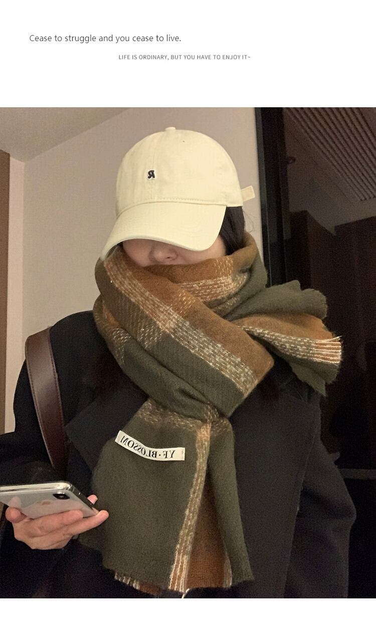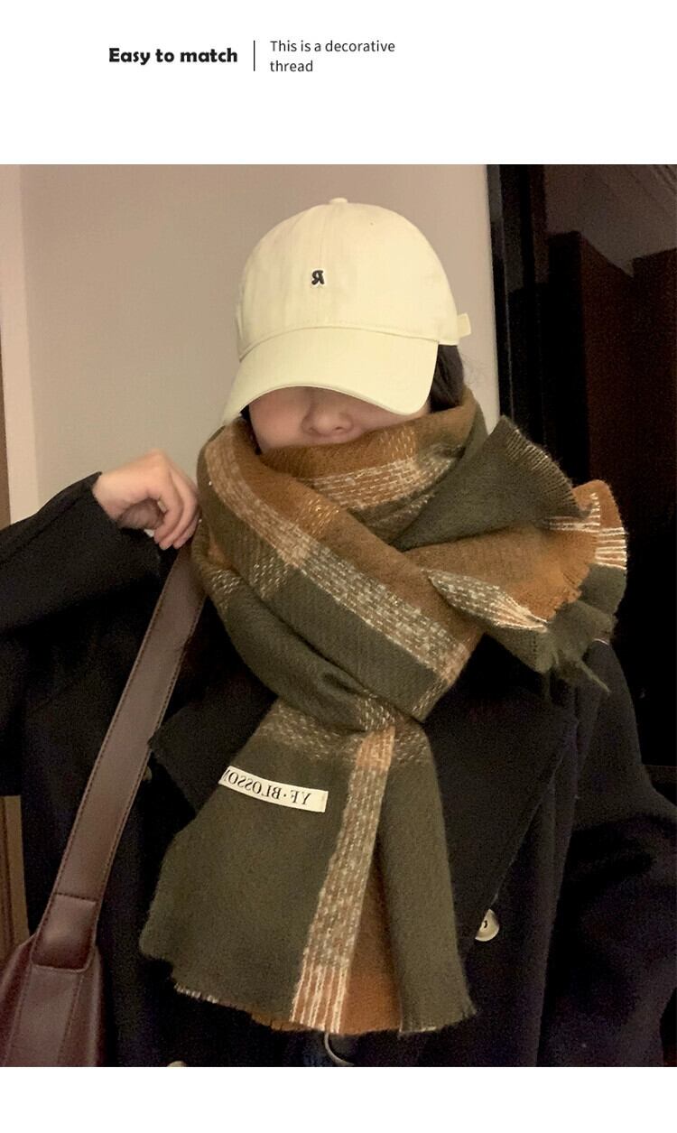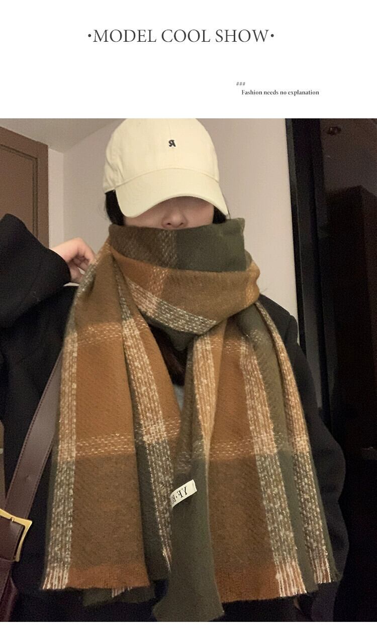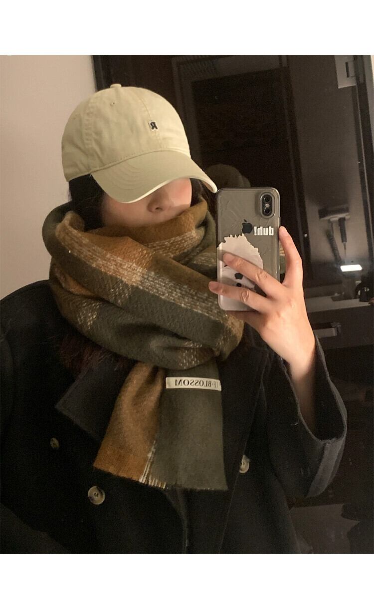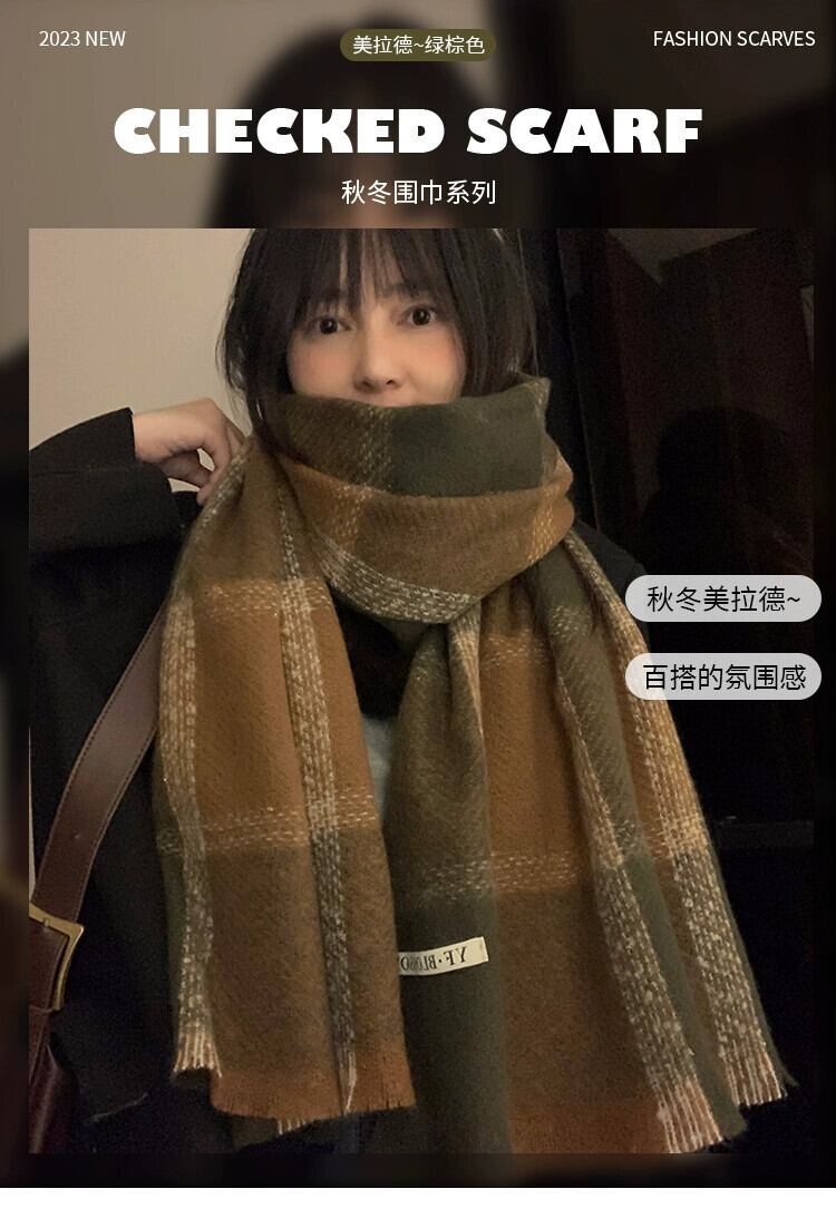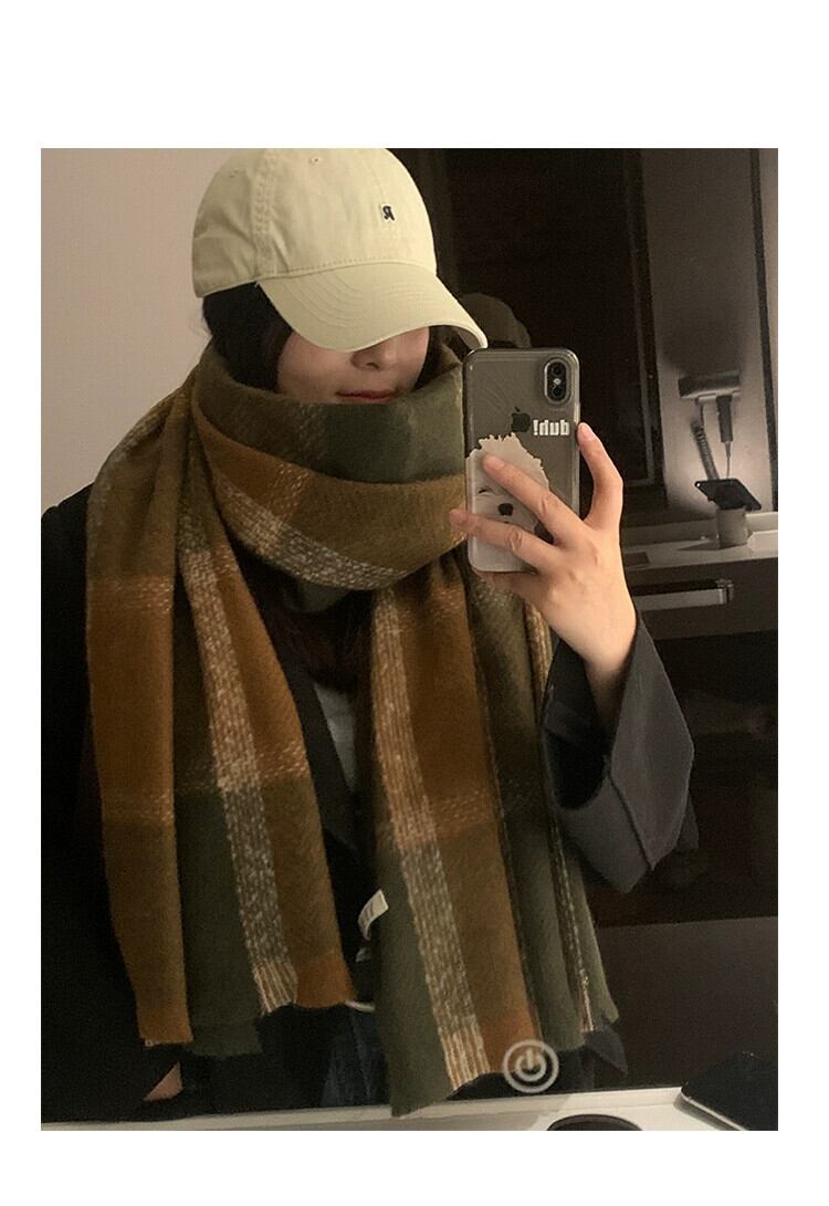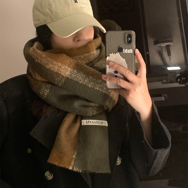 スカーフ女性 2023 冬 ese とスタイル多用途チェック柄暖かく厚みのあるカップルスカーフ学生トレンディなハイエンド感覚 ウィンター 冬物 15dd69637151406