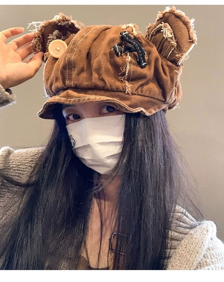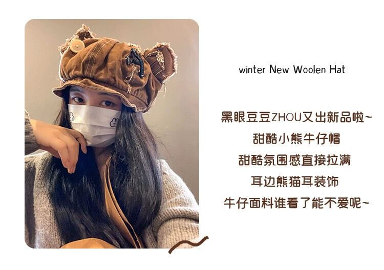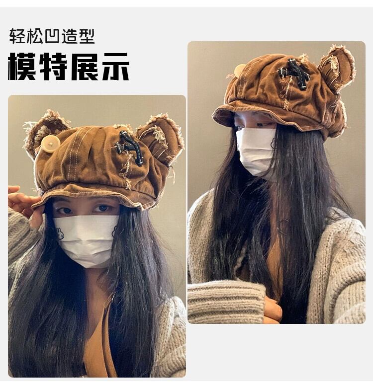 ニッチかわいいクマのベレー帽女性の秋と冬 y2k デザイン顔見せ小さな多用途学生アメリカン八角形帽子 大人ガーリー スウィート キュート カジュアル オータム 秋物 ウィンター 冬物 ベレット ヘアアクセサリー 15dd77291086783