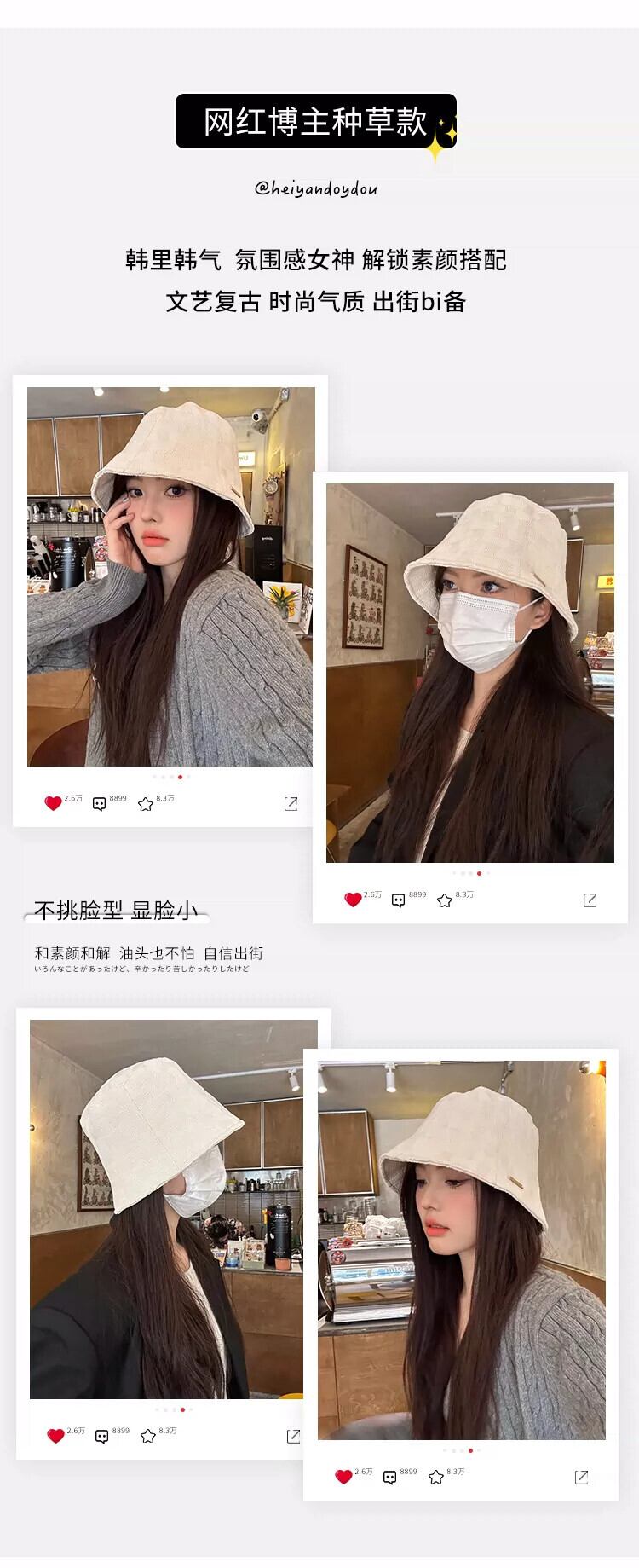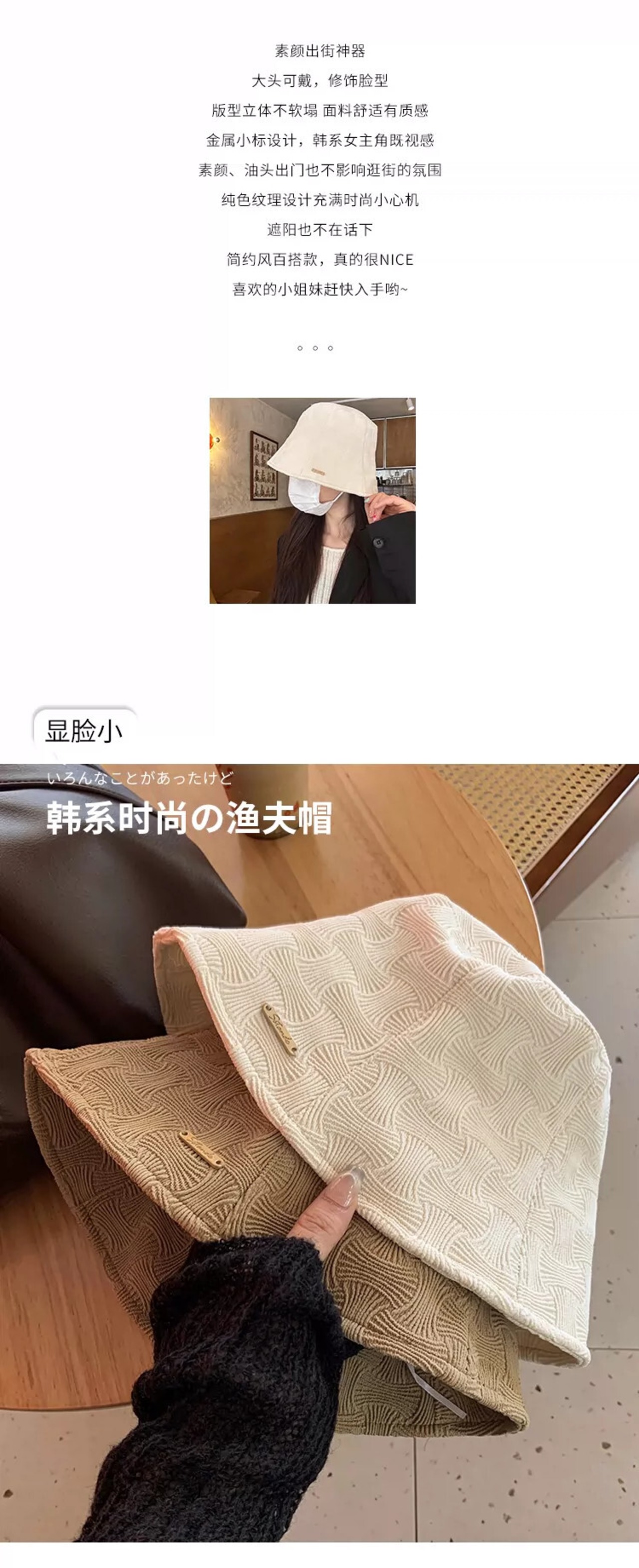 帽子女性 2023 新しいスタイルの漁師の帽子、ハイエンド、ese スタイル、多用途のバケットハット、インターネット有名人、無地の顔、小さな盆地帽子 15dd37379616910