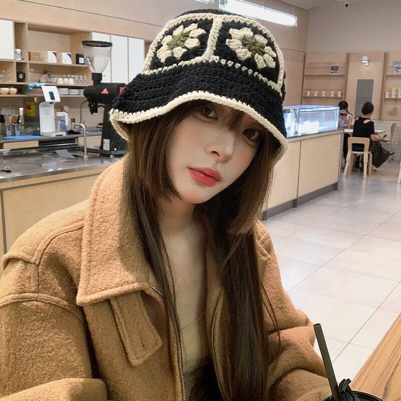 顔が見える小さなニッチの手作りウールのコントラストのあるストライプの漁師の帽子、秋と冬の女性、顔が見える小さな多用途のニット帽、トレンディ オータム 秋物 ウィンター 冬物 15dd30885152942