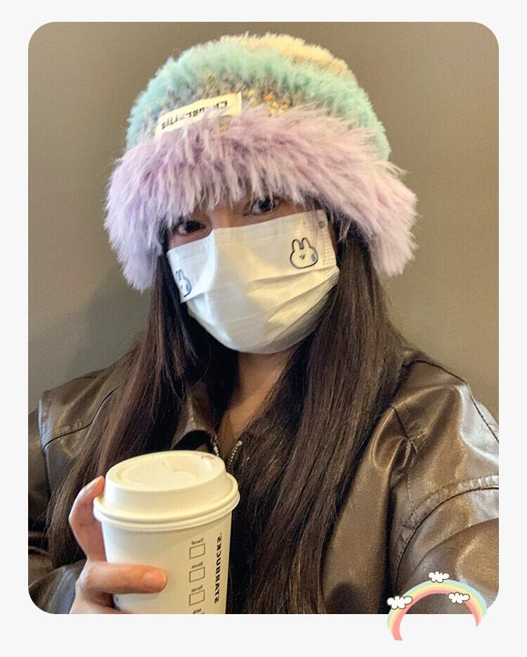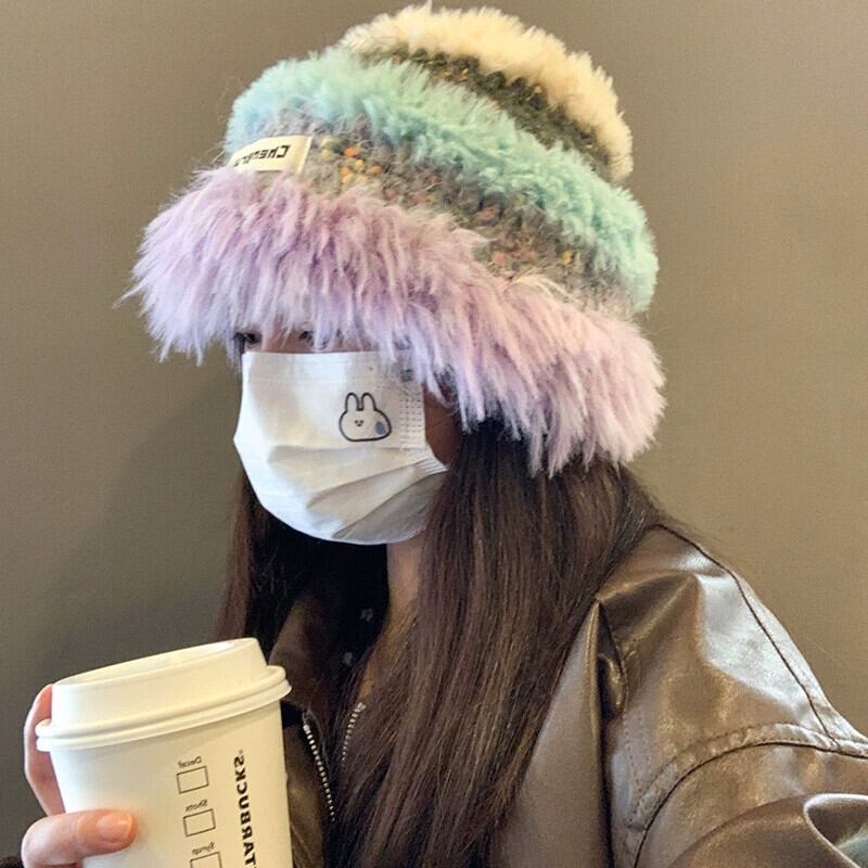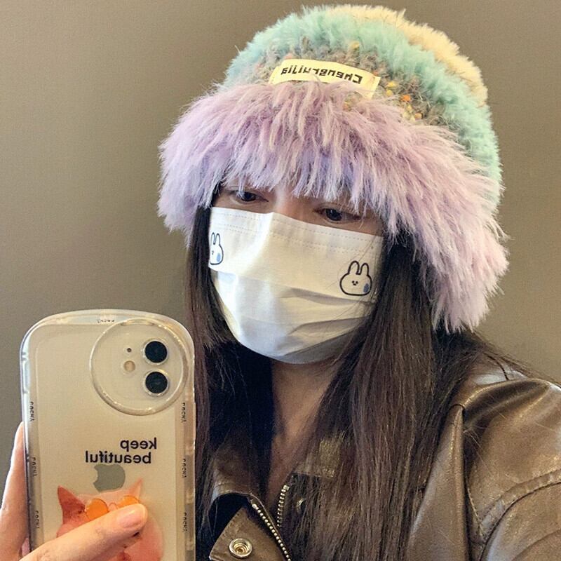 ぬいぐるみニット帽女性 2023 新しい秋と冬の暖かい耳保護ヘッドバンドバージョンインショー顔トレンド 帽子 オータム 秋物 ウィンター 冬物 ヘアバンド ヘアアクセサリー 15dd67031049469