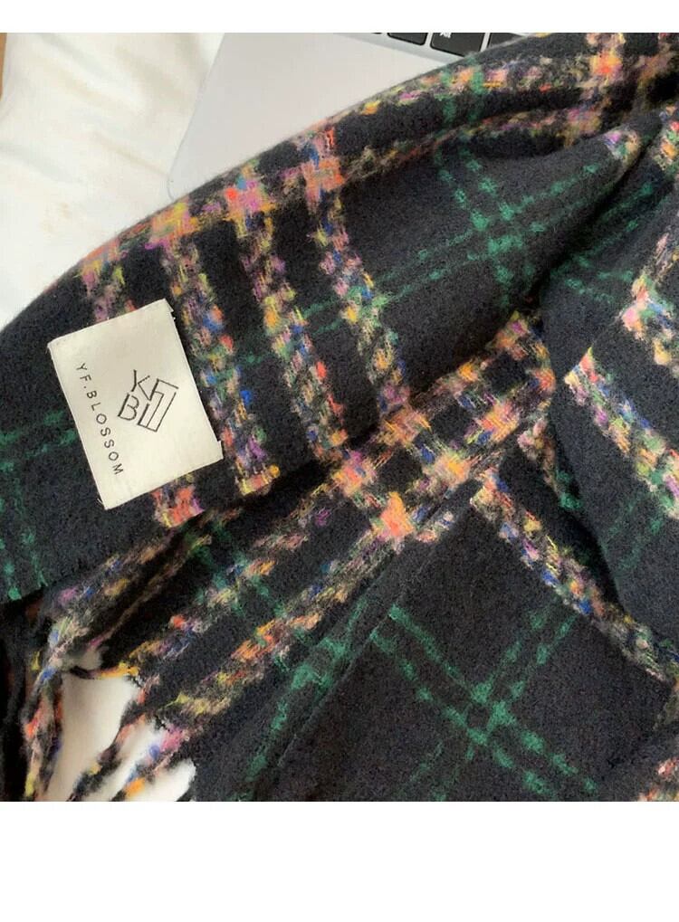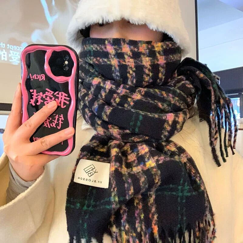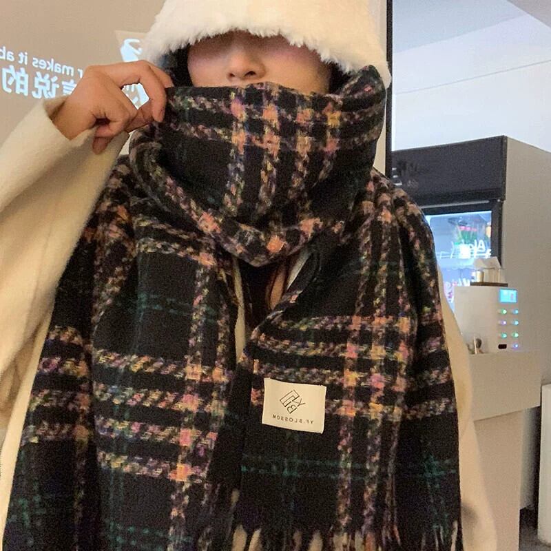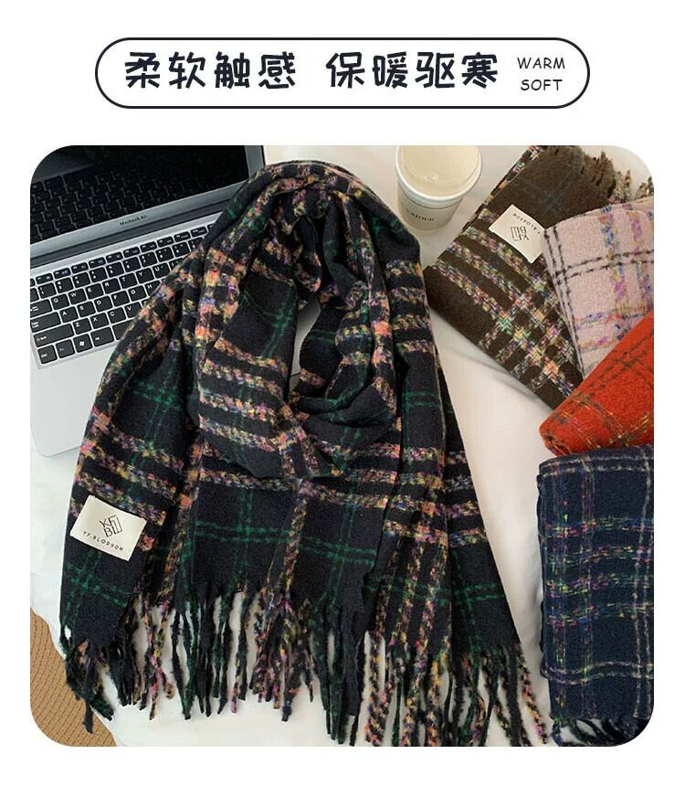 スタイルスカーフ女性の冬のハイエンド 2023 新しい多用途チェック柄学生秋と冬のニット暖かいスカーフ オータム 秋物 ウィンター 冬物 15dd91106795637