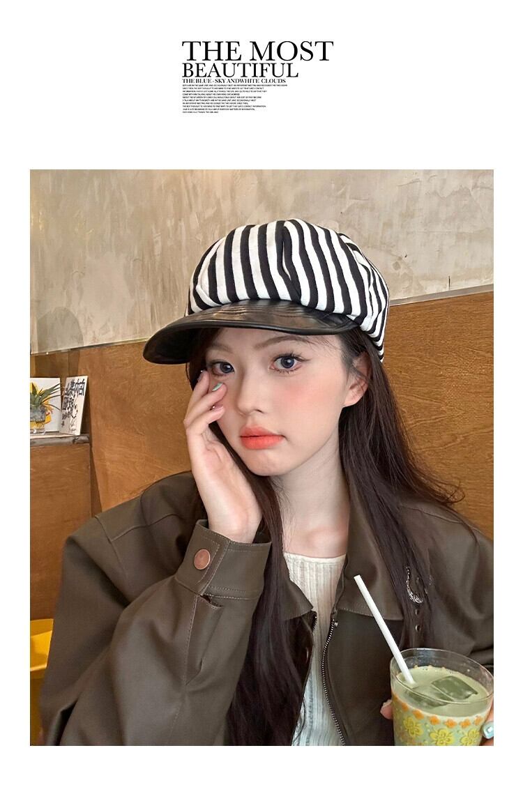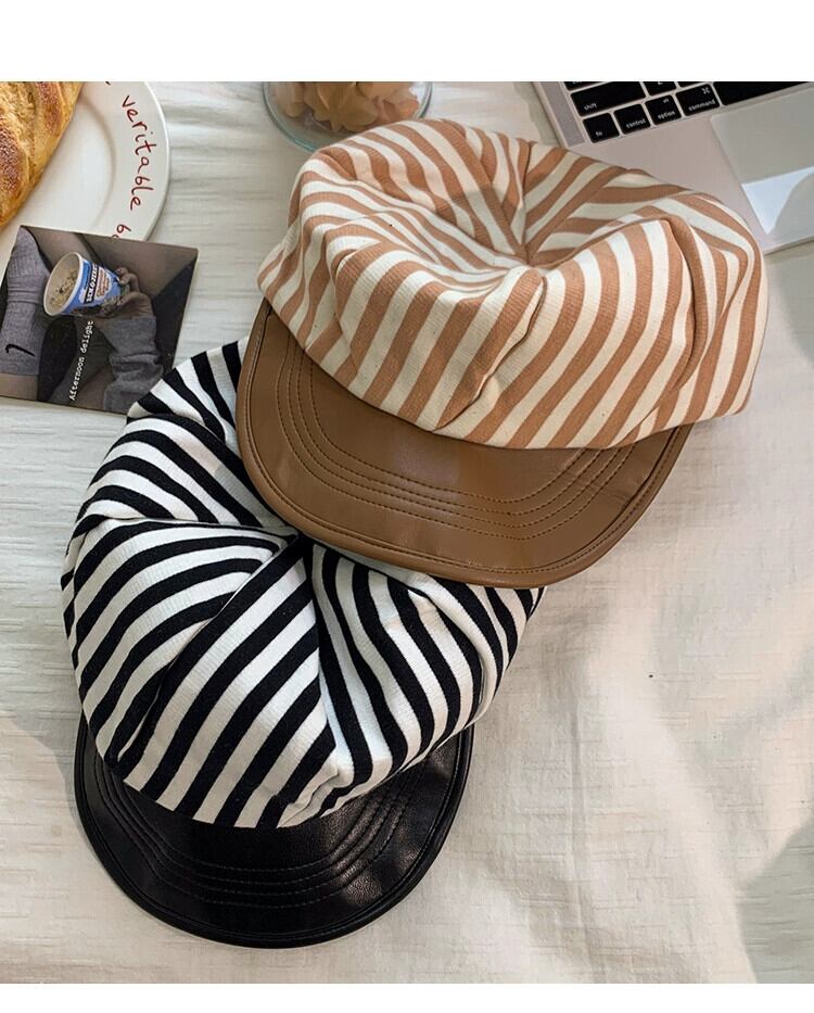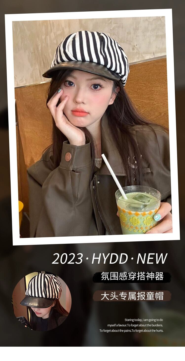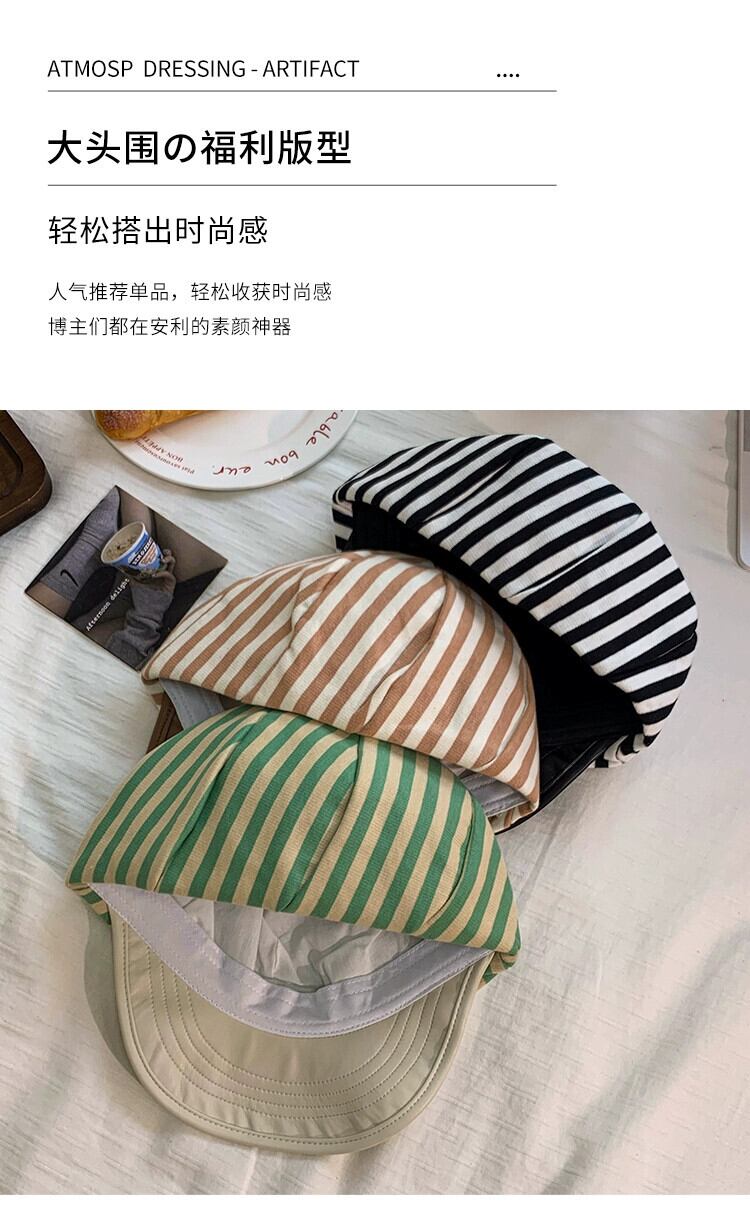 これらのワイドストライプのキャスケット帽子女性の秋と冬のレトロなファッションオールマッチ大きな頭のピークキャップが顔を見せて小さなベレー帽 オータム 秋物 ウィンター 冬物 ベレット ヘアアクセサリー 15dd5747061322