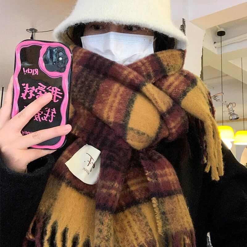 メイラード高級チェック柄スカーフ女性の冬 2023 新しいスタイルショール兼用春と秋厚く暖かいトレンド スプリング 春物 オータム 秋物 ウィンター 冬物 15dd66462556921