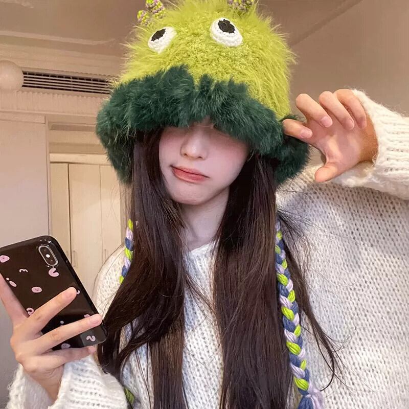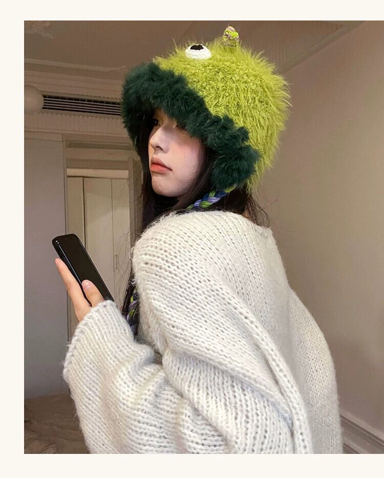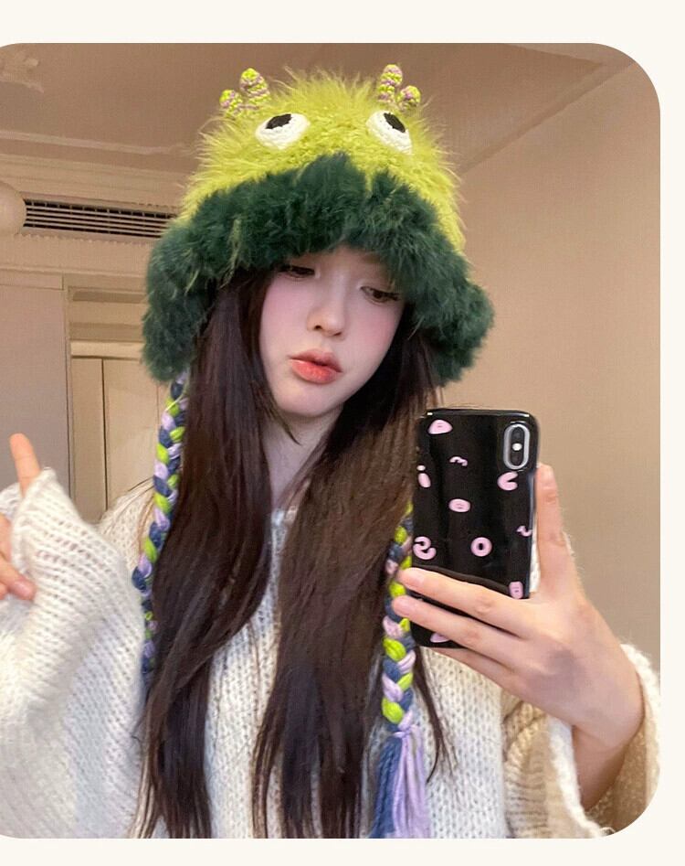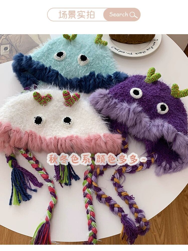かわいい小さなモンスターウールの帽子女性冬プラスベルベット甘い雷峰帽子面白いファッション学生耳保護ニット帽子 大人ガーリー スウィート キュート カジュアル ウィンター 冬物 15dd84247597551