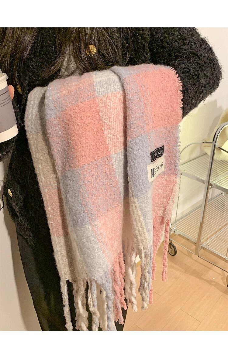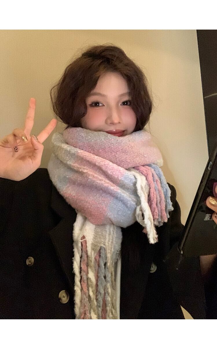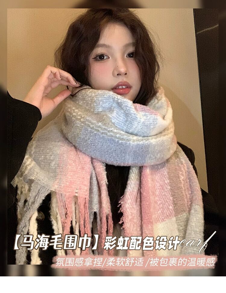ese 優しい虹色のスカーフ女性 2023 新しいハイエンド多用途暖かいスカーフ白カラーブロッキングショール ホワイト 15dd65853862299