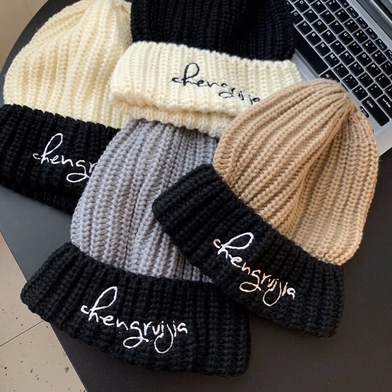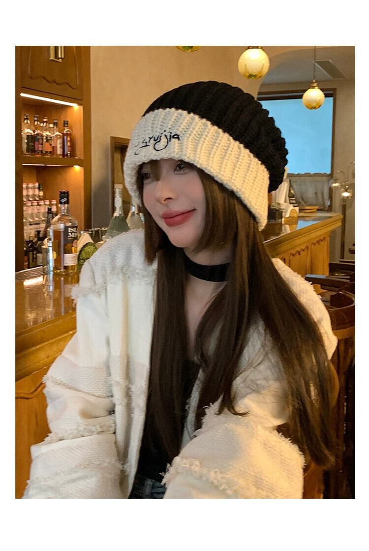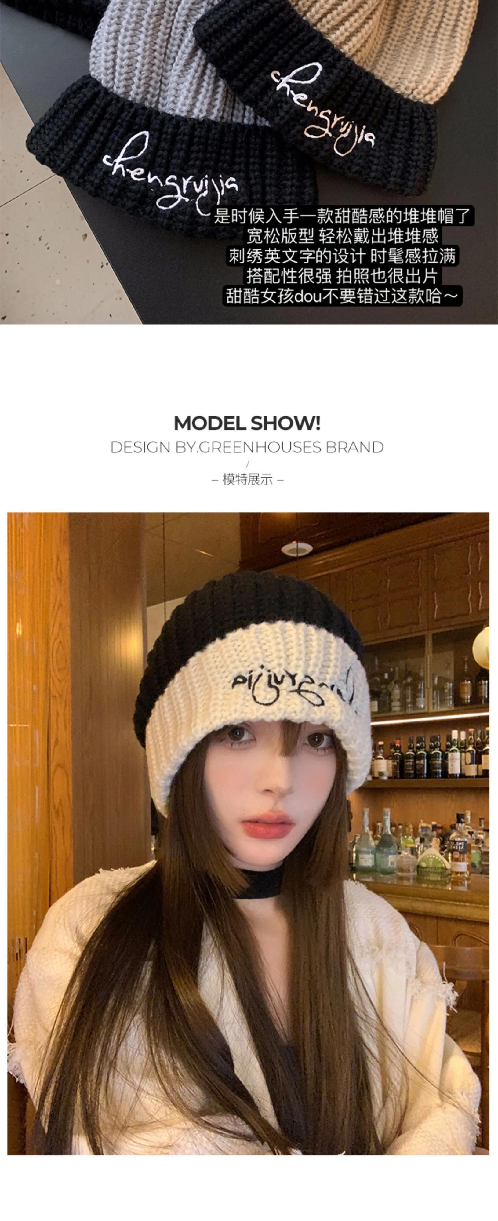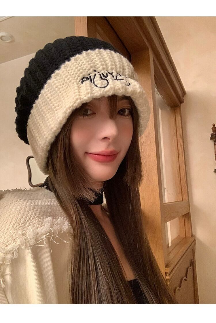 秋と冬のスタイルのクールなウールの帽子の女性の大きな頭囲のゆるいニットパイル帽子、顔が見える小さな暖かい耳の保護帽子 オータム 秋物 ウィンター 冬物 15dd73071647840