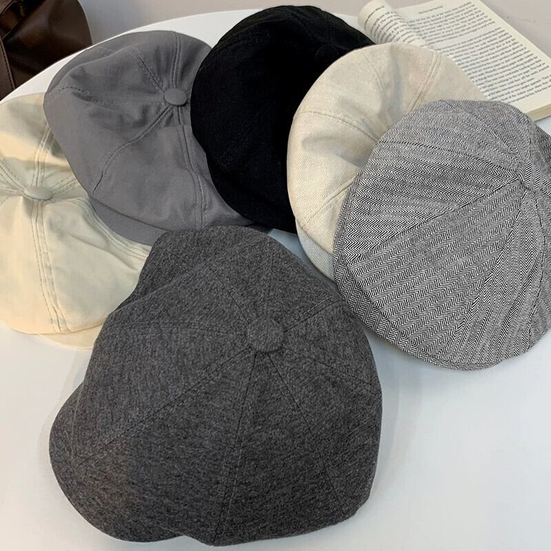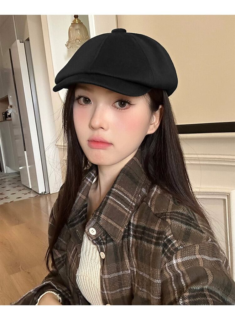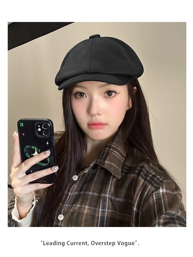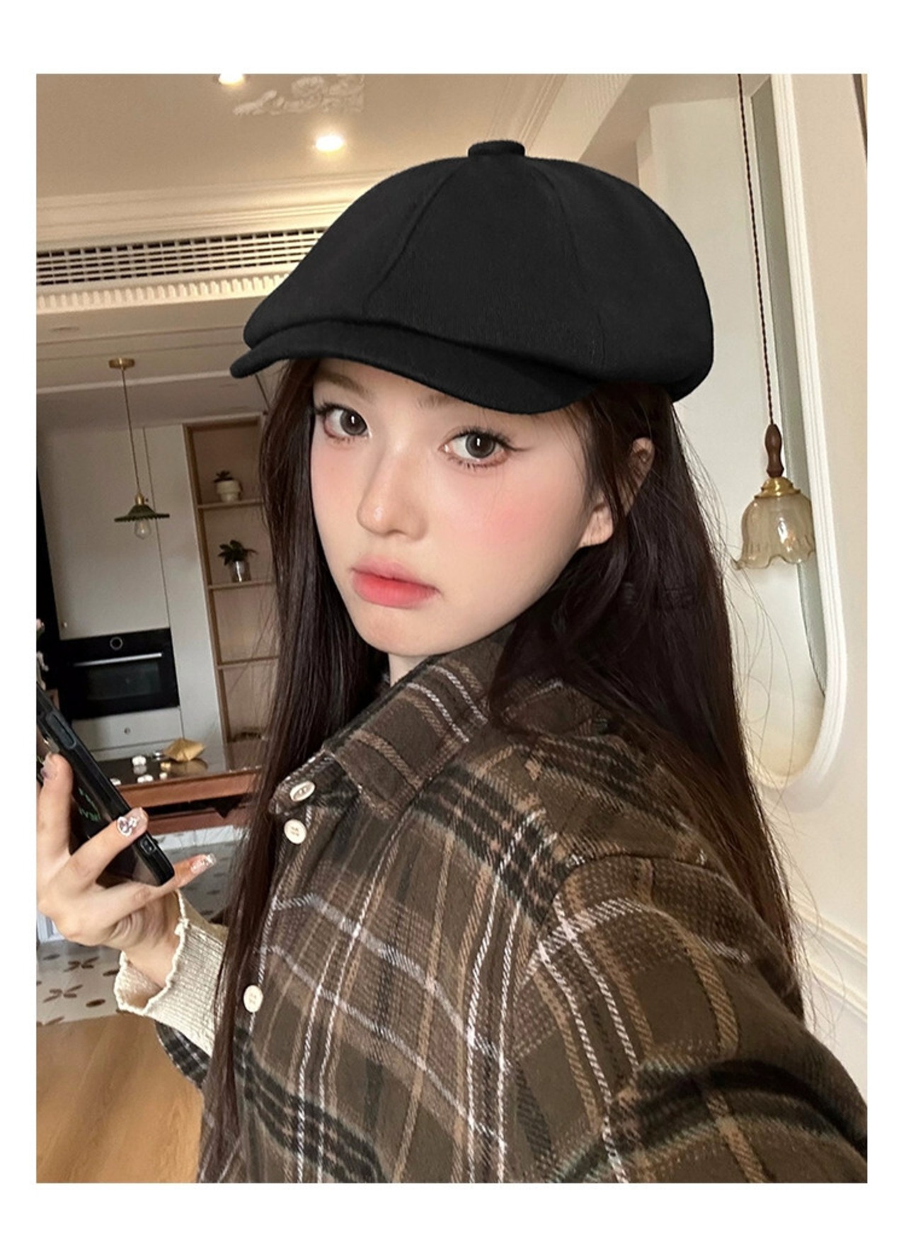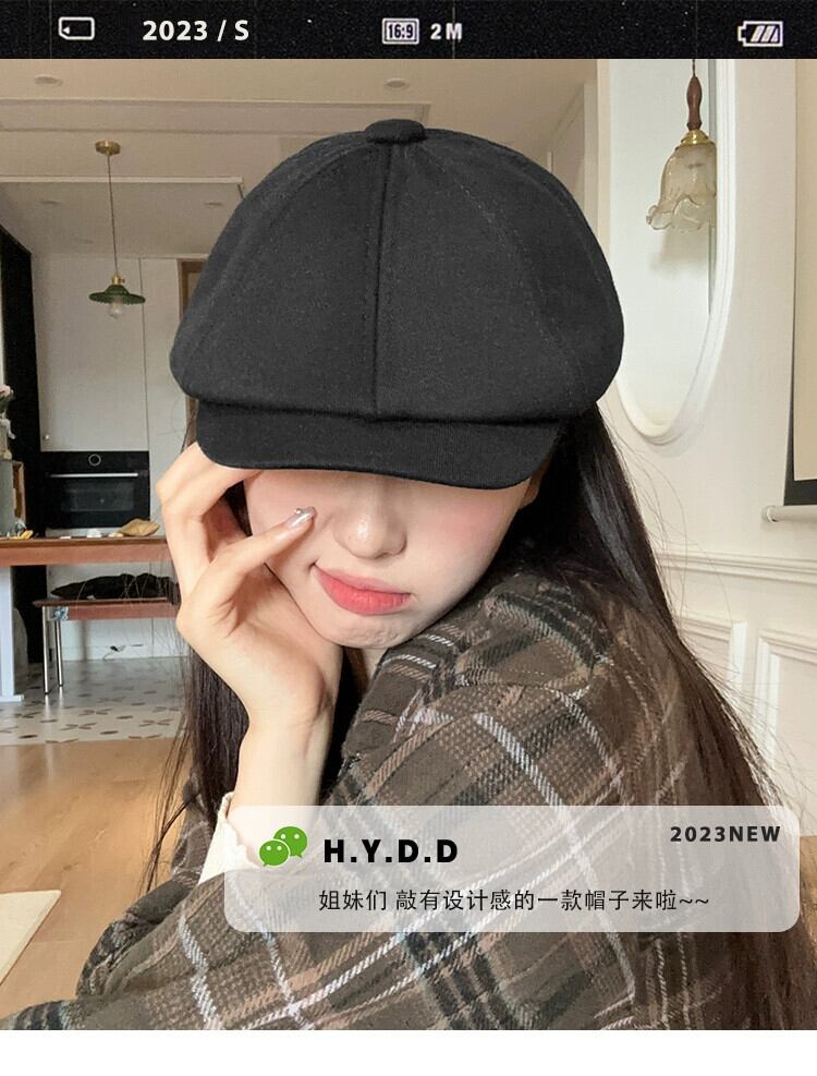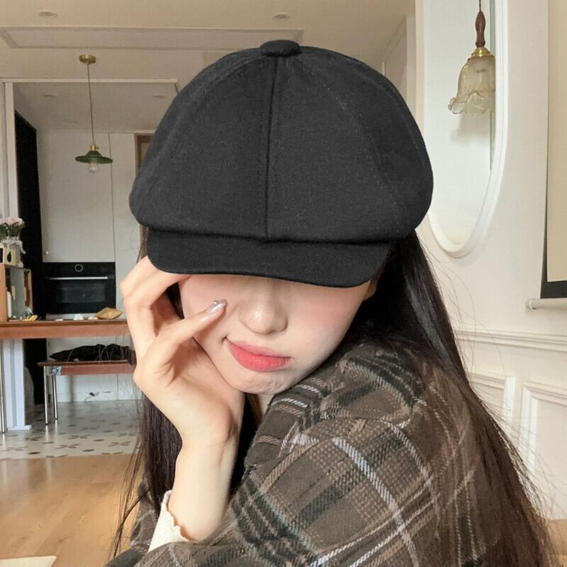 秋の小さな画家の黒い八角形の帽子の女性、多用途の英国スタイルのダックビルの画家の帽子、顔を見せて、小さなキャスケット帽子、トレンディな ブラック オータム 秋物 15dd95343166695