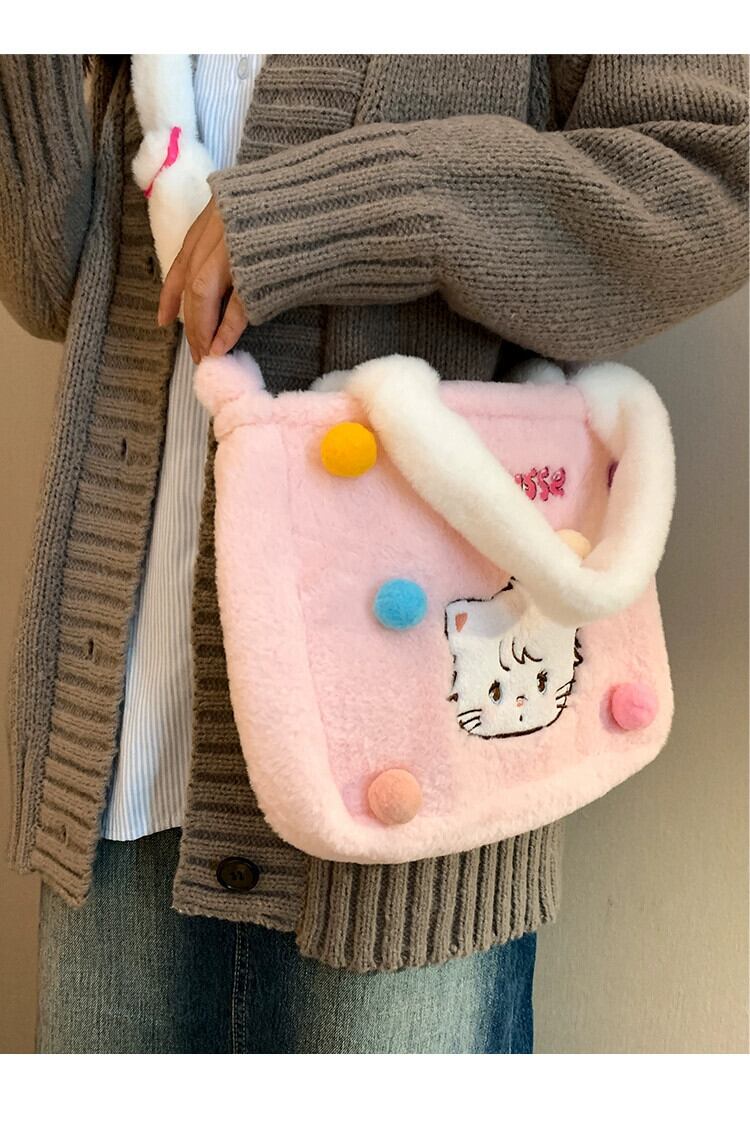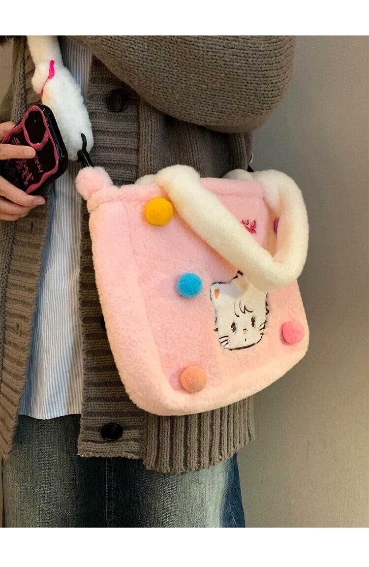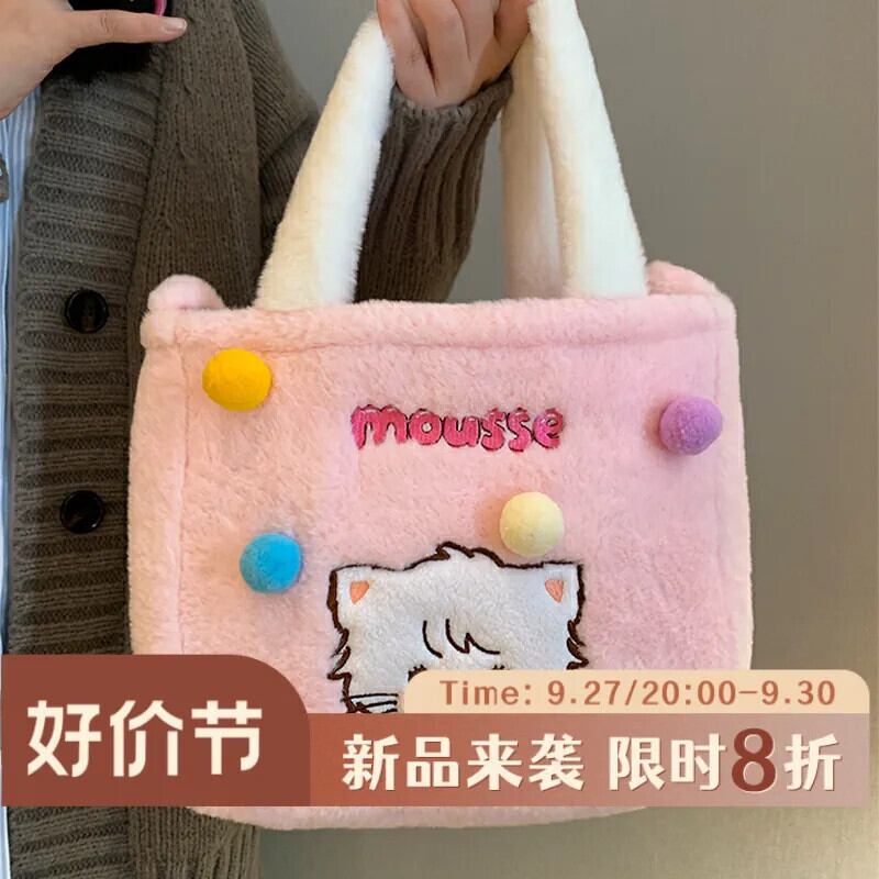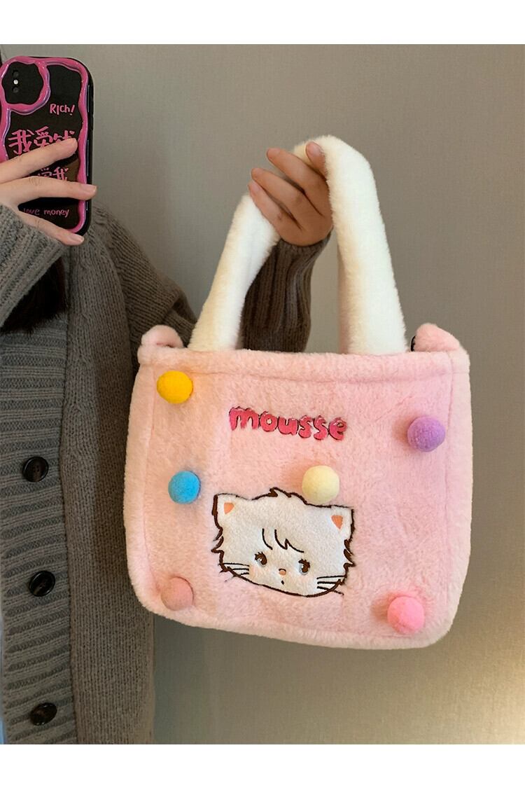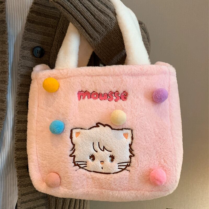 毛皮のようなバッグ秋と冬かわいい学生大容量トートバッグ漫画猫多用途ショルダーぬいぐるみトートバッグ 大人ガーリー スウィート キュート カジュアル オータム 秋物 ウィンター 冬物 15dd86329423001