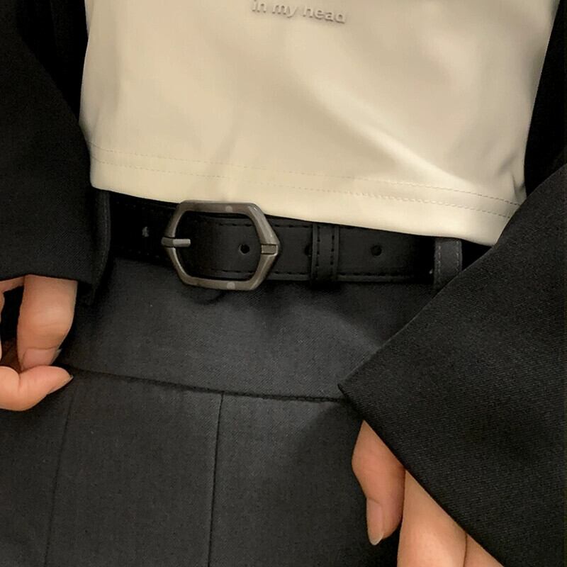 香港スタイル PU 新しいベルト男性と女性のピンバックルインスタイル多用途黒パーソナライズされた小さなデザインセンスベルトファッショナブルでシンプル ブラック ハーネス 15dd53187459142