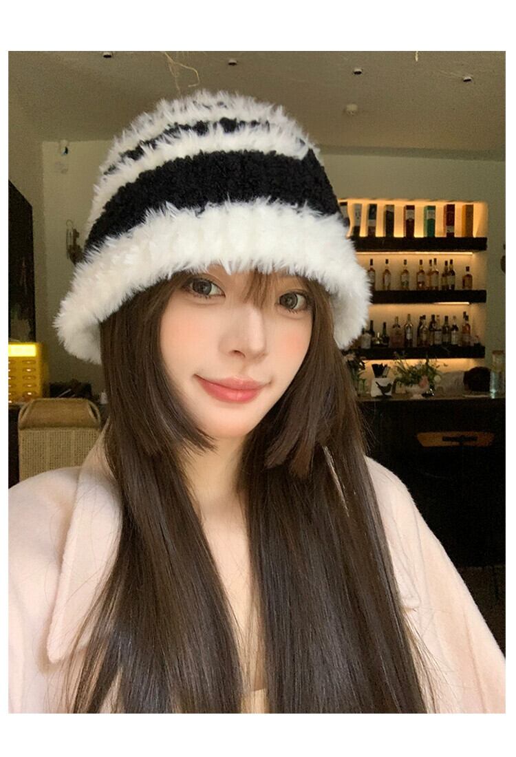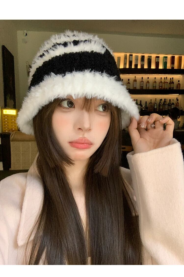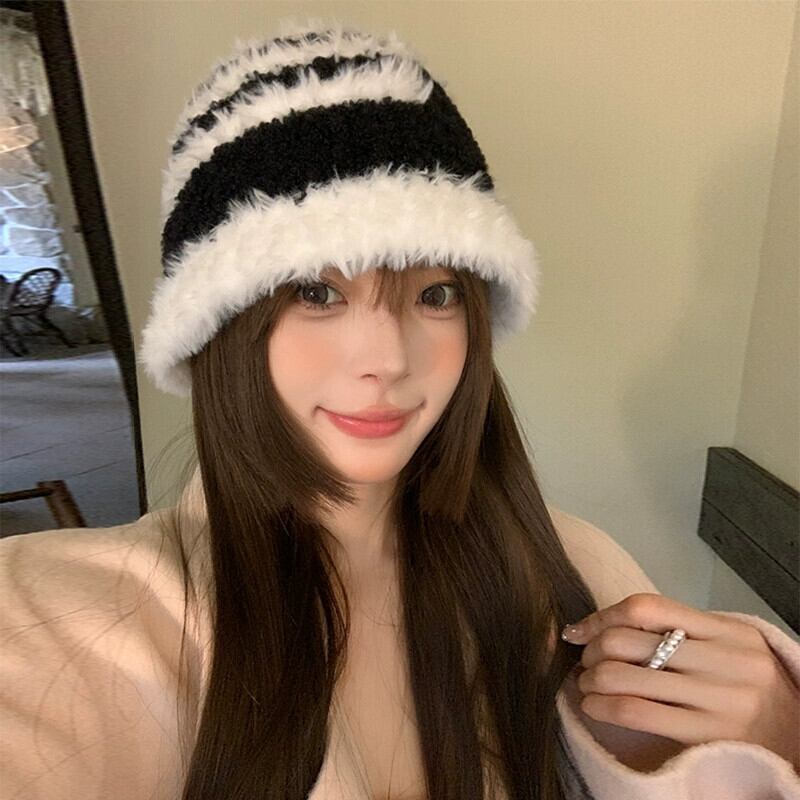 毛皮の帽子の女性の秋と冬の大きな頭囲暖かいウールの帽子顔が見える小さな耳の保護ぬいぐるみニット漁師帽子 オータム 秋物 ウィンター 冬物 15dd63773267670