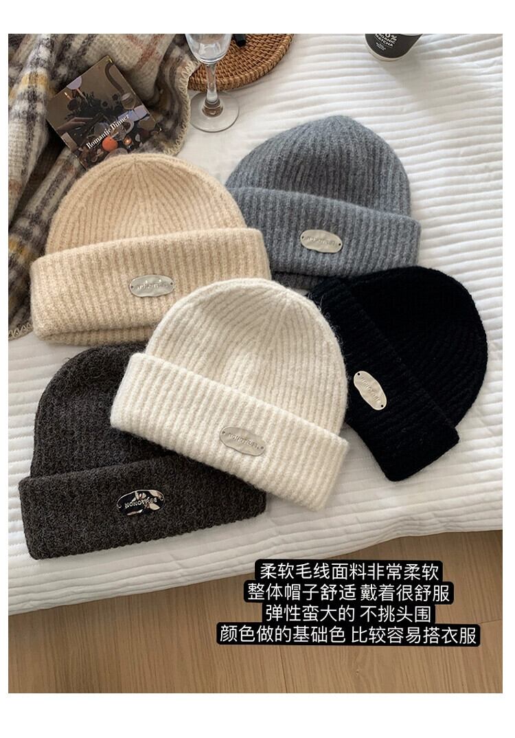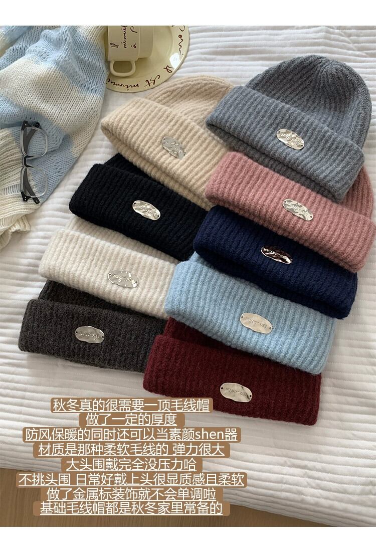 大きな頭囲厚いウールの帽子女性の秋と冬ゆるい暖かい防寒帽子耳保護顔キビニット帽子 オータム 秋物 ウィンター 冬物 15dd63893491552