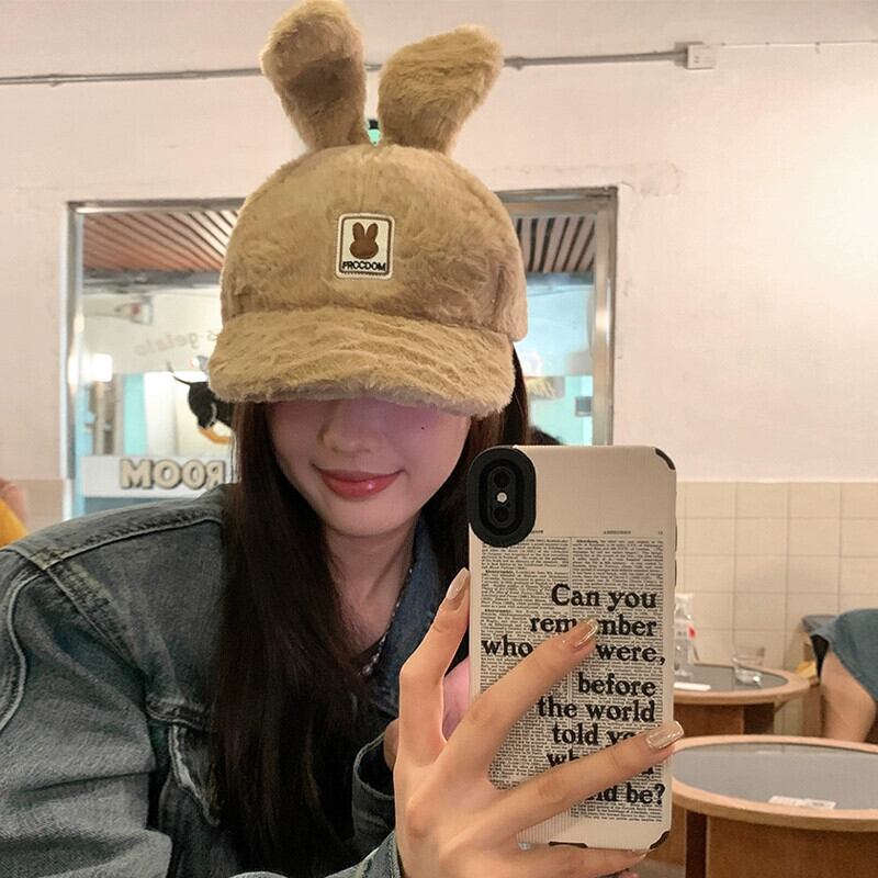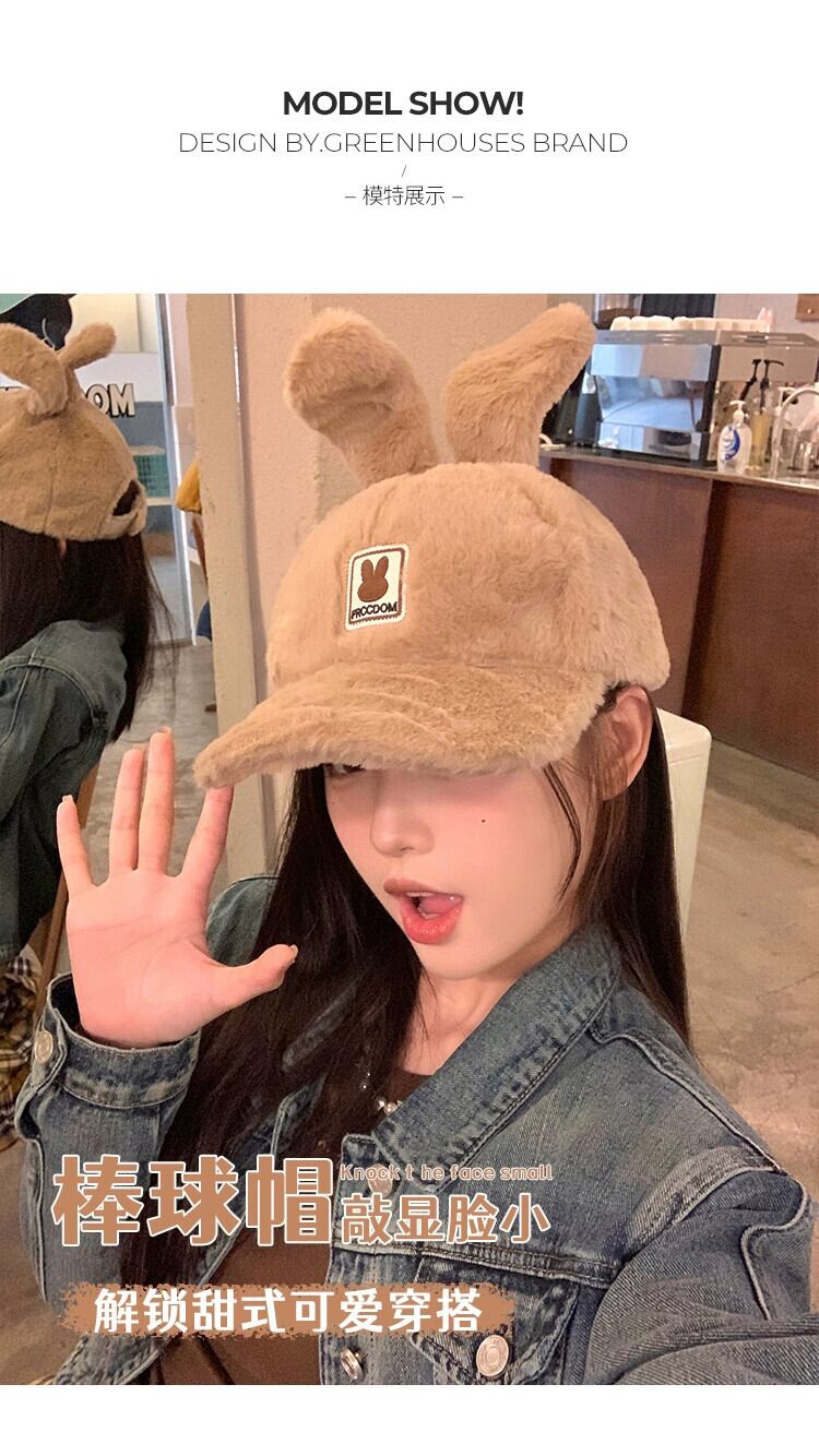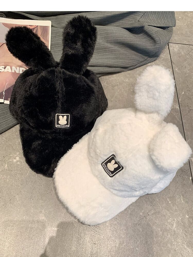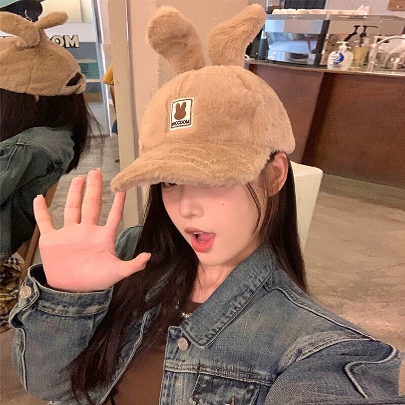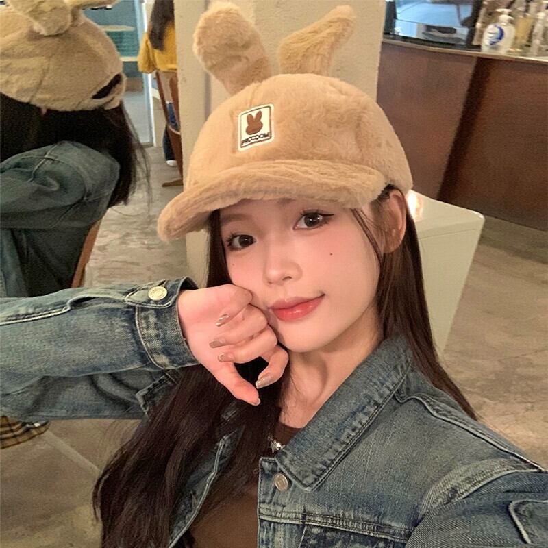 かわいいウサギの耳の豪華な野球帽の女性、甘い帽子、秋と冬の顔を見せる小さな多用途の大きな頭の尖った帽子トレンディです。 大人ガーリー スウィート キュート カジュアル オータム 秋物 ウィンター 冬物 15dd93810675942