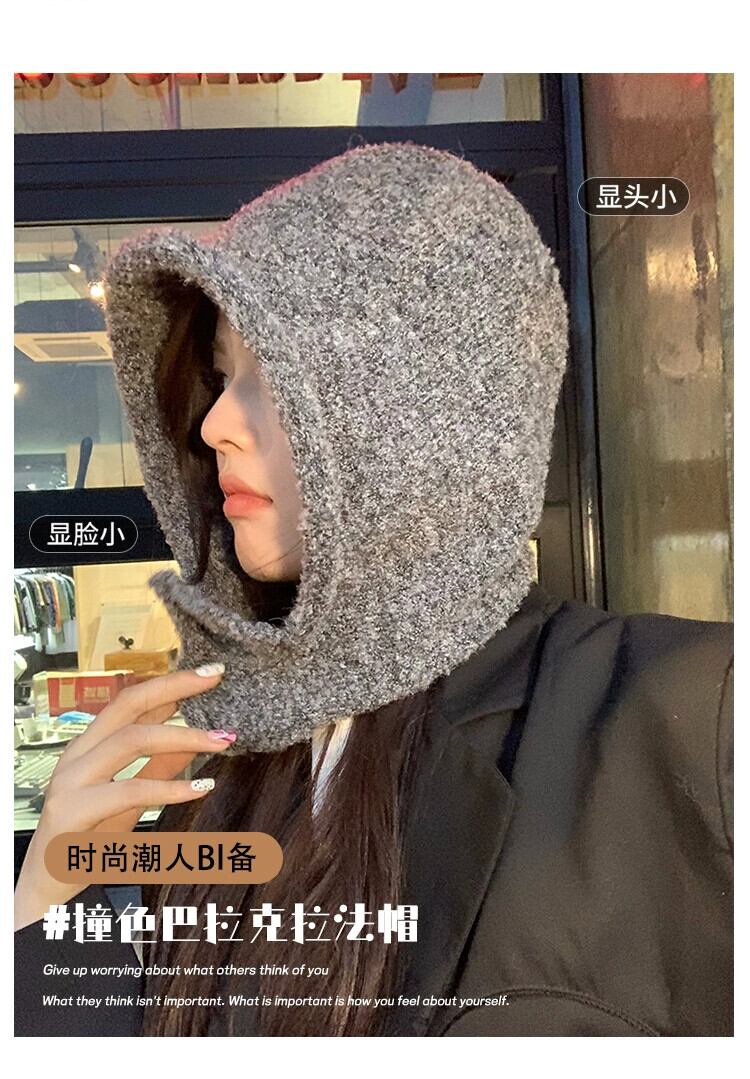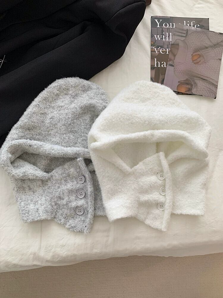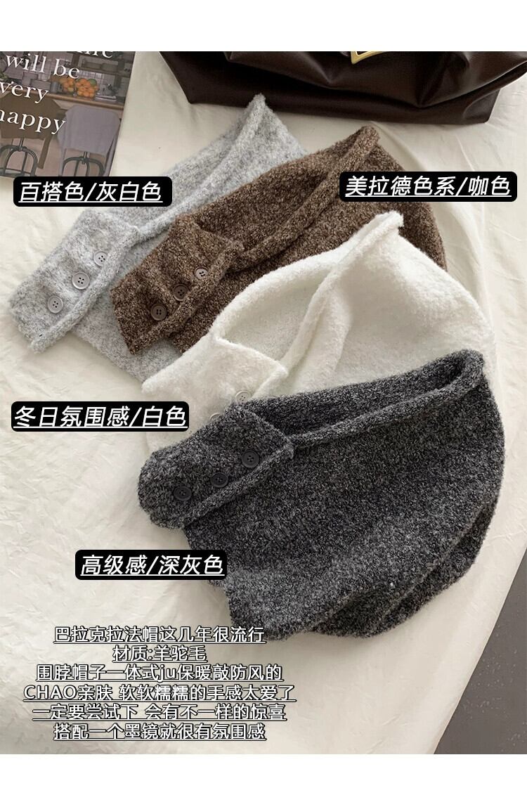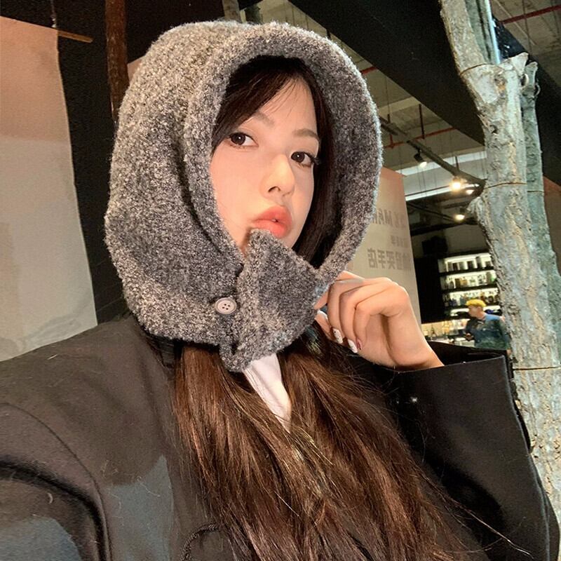 目出し帽女性の冬暖かいグレー帽子ネックスカーフ統合耳保護ラップヘッドウールニット帽子 ウィンター 冬物 15dd91943987984