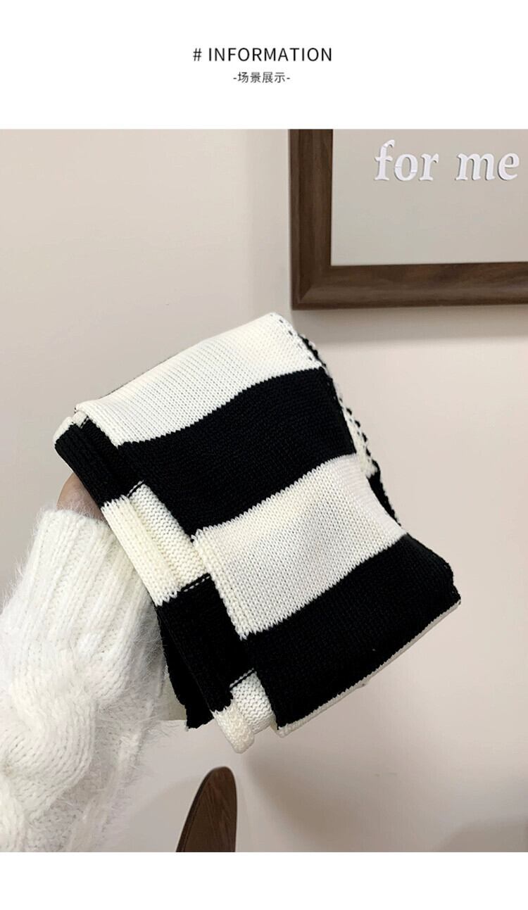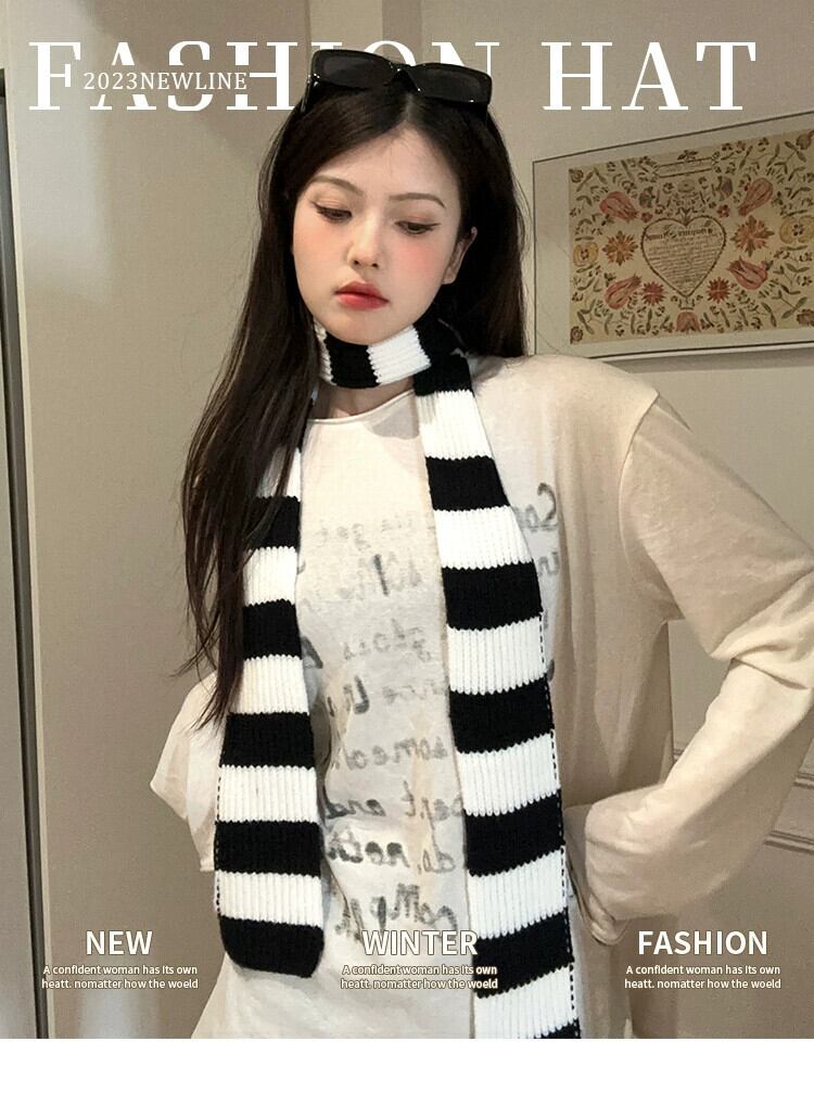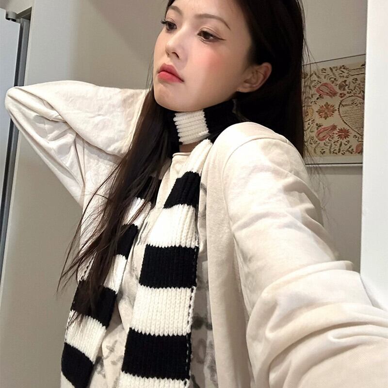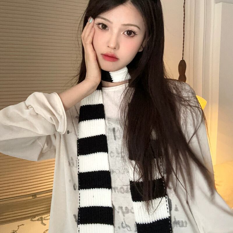 追加ポイントマッチング〜ハイエンドの黒と白のストライプのニット小型バージョンスカーフ女性秋冬スタイル装飾ウールスカーフトレンディ ホワイト ブラック オータム 秋物 ウィンター 冬物 15dd21255385251
