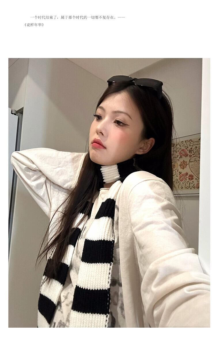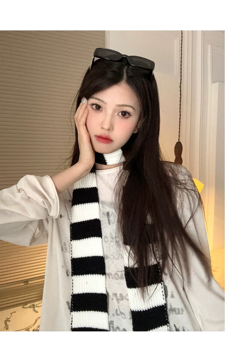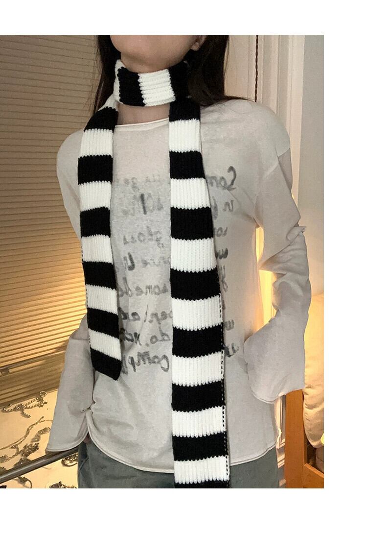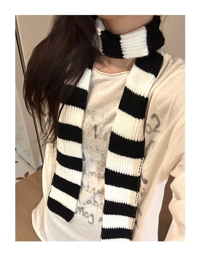 追加ポイントマッチング〜ハイエンドの黒と白のストライプのニット小型バージョンスカーフ女性秋冬スタイル装飾ウールスカーフトレンディ ホワイト ブラック オータム 秋物 ウィンター 冬物 15dd21255385251
