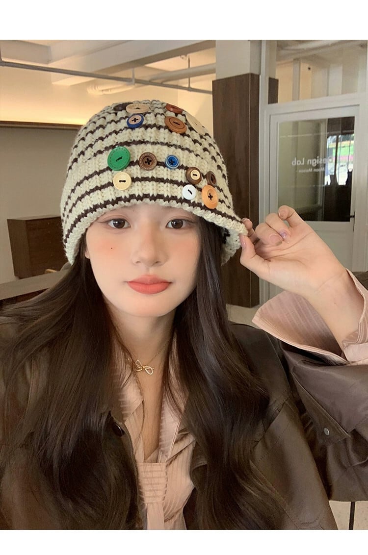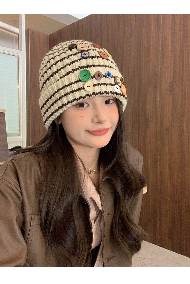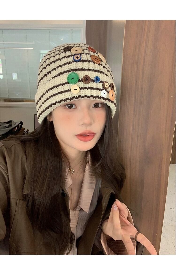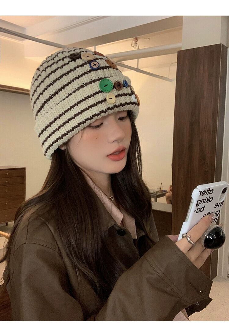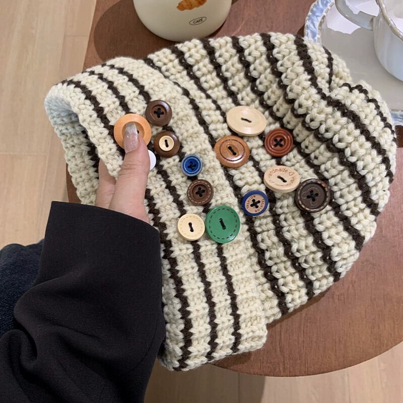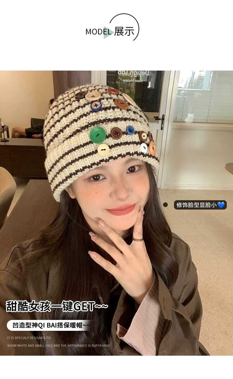 ドーパミンボタン厚いウールニットコールド帽子女性 2023 新人表示秋と冬のオールマッチ耳保護キャップ オータム 秋物 ウィンター 冬物 15dd41962658239
