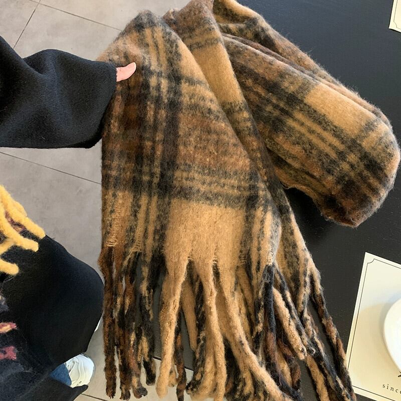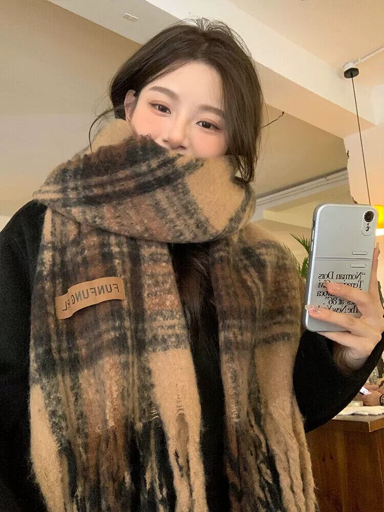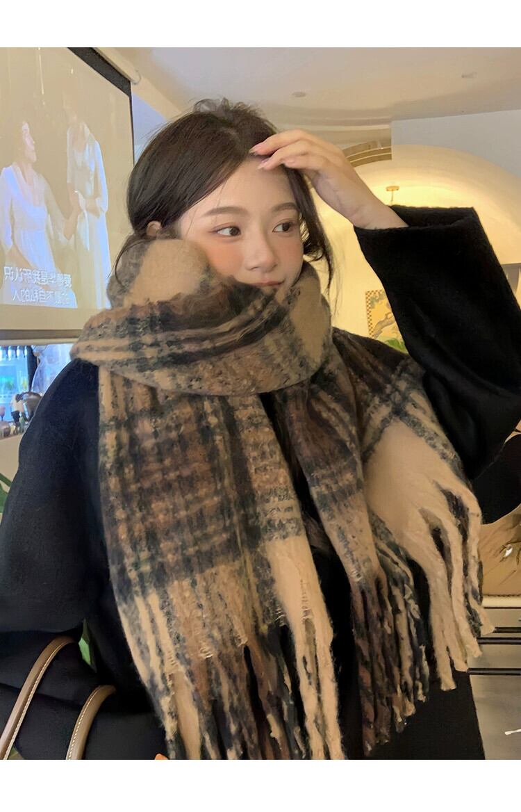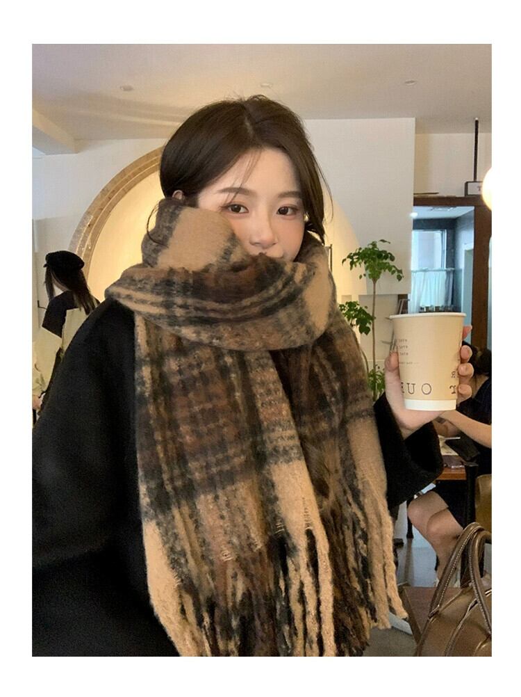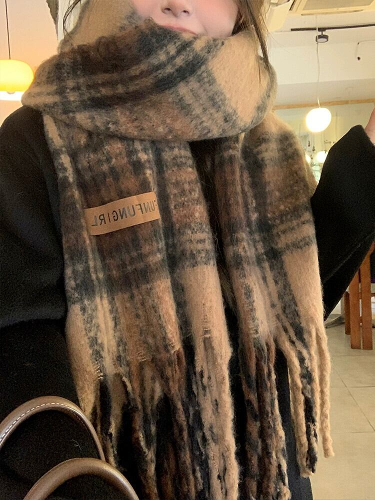 Nuanka Maillard ~ - エンドチェック柄スカーフ女性、秋と冬レトロ多用途厚く暖かいショールとスカーフトレンディ オータム 秋物 ウィンター 冬物 15dd19371392207
