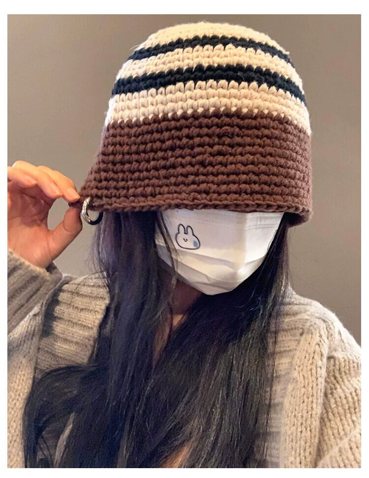 ニッチウール漁師の帽子女性秋と冬の新しいスタイル暖かくて顔に優しい小さなつま先キャップ鉄リング耳保護ニット帽子 オータム 秋物 ウィンター 冬物 指輪 15dd85295445170