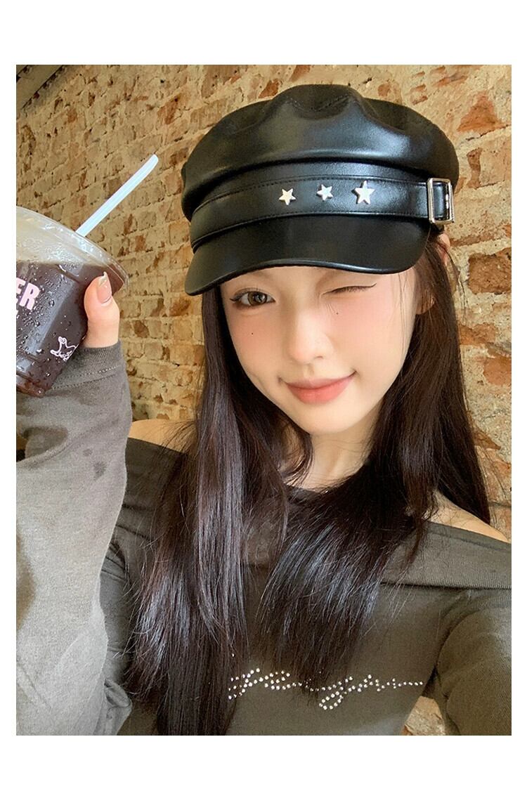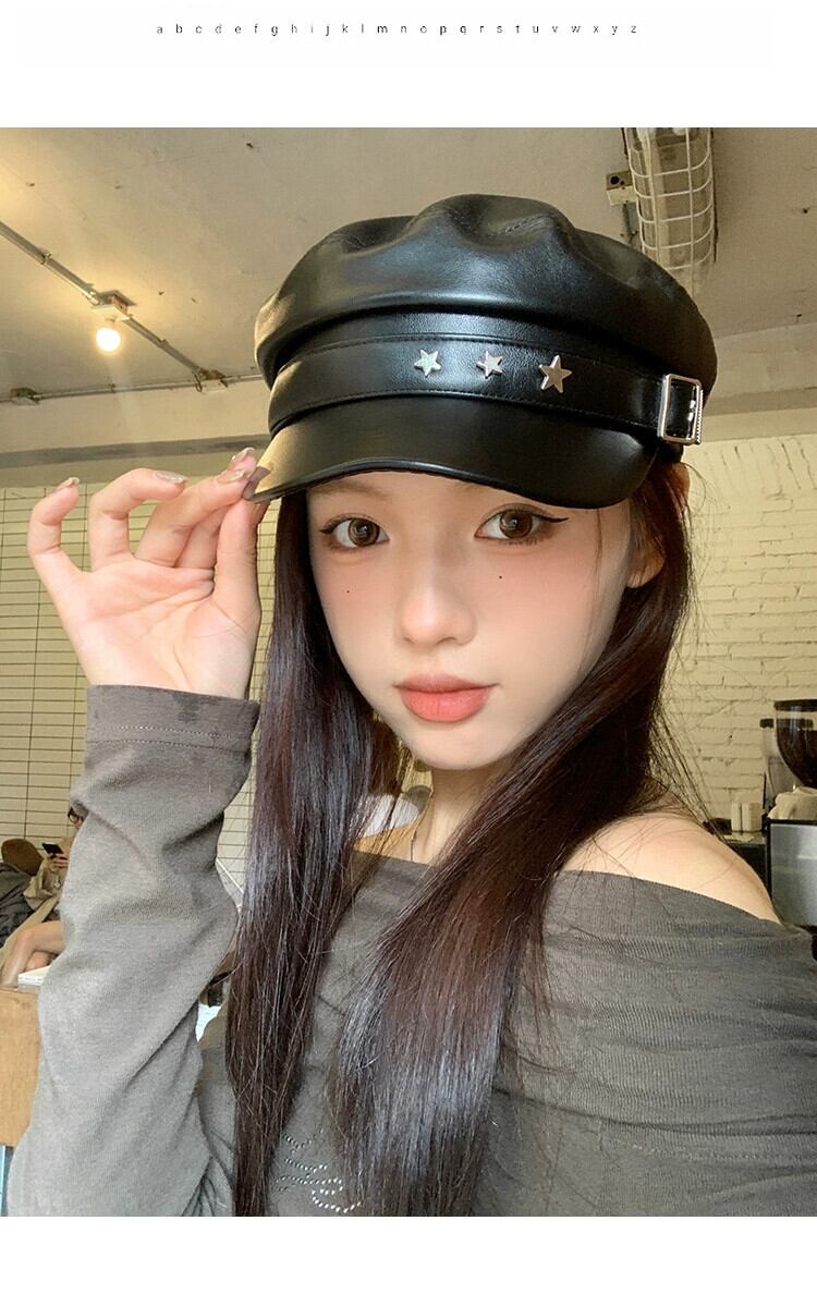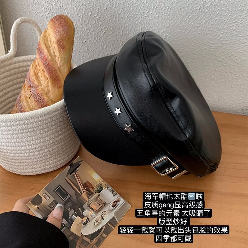 スターブラックベレー帽女性の 2023 秋と冬顔明らかに小さな八角帽子 ese ビッグヘッド sboy 帽子 オータム 秋物 ウィンター 冬物 ベレット ヘアアクセサリー 15dd55090677725