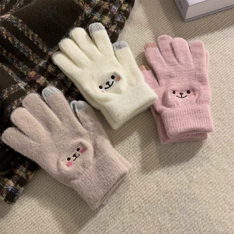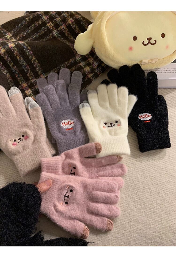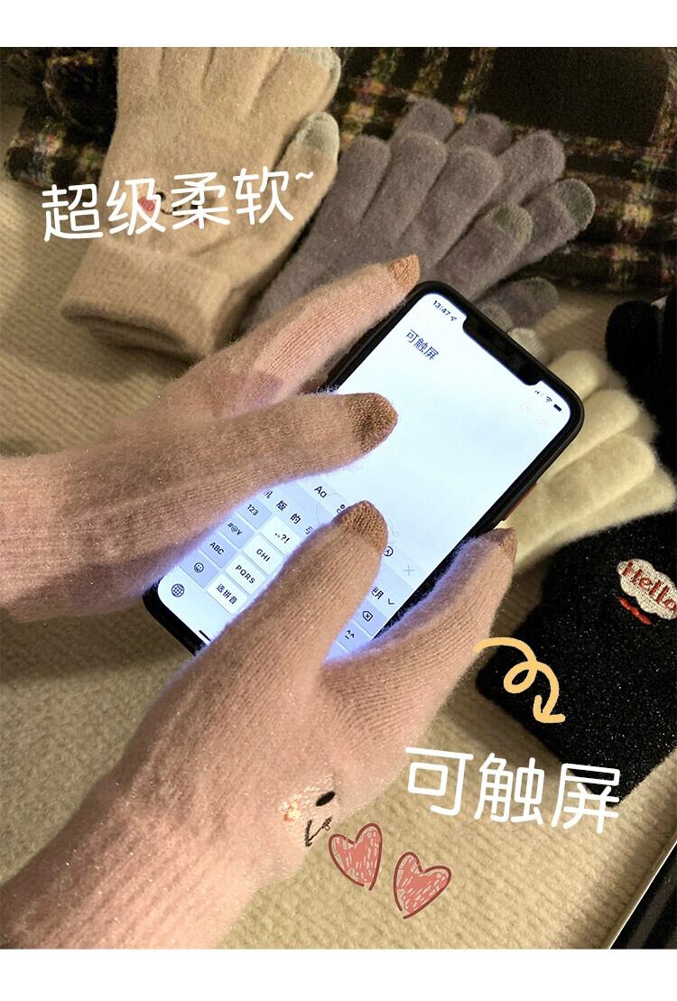 女性用冬用暖かい学生手袋、バージョン、かわいい、ベルベットと厚みのある、サイクリング用5本指防寒タッチスクリーン手袋、秋と冬 大人ガーリー スウィート キュート カジュアル オータム 秋物 ウィンター 冬物 15dd39318622265