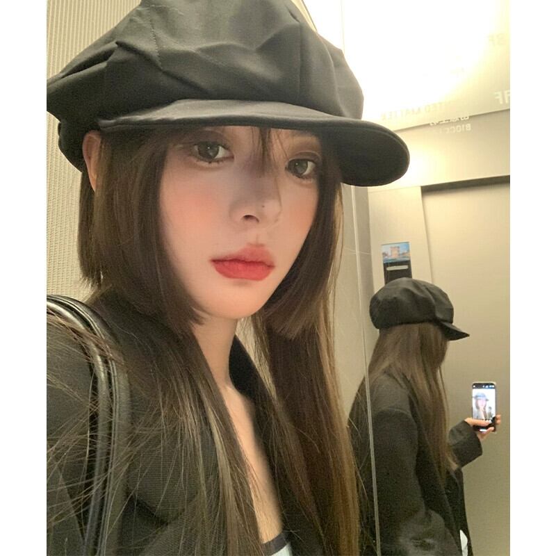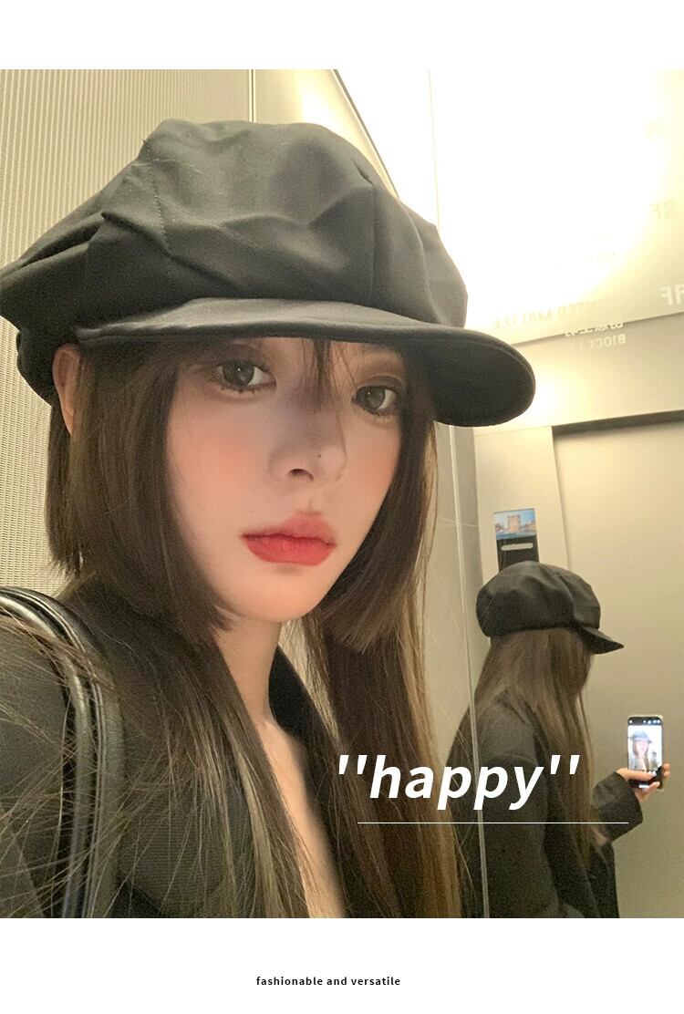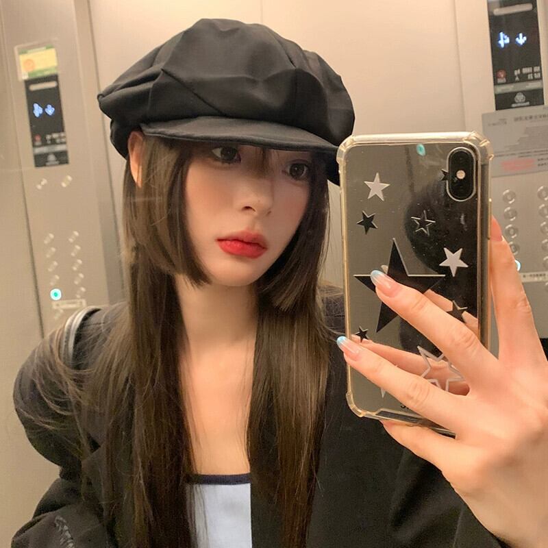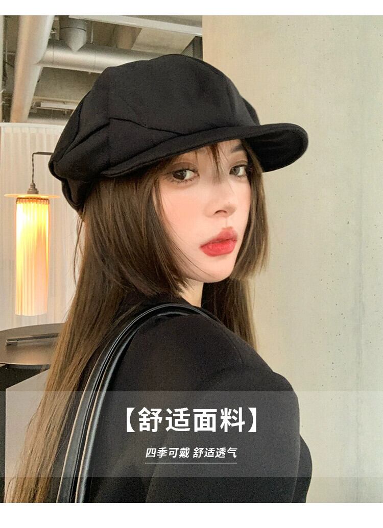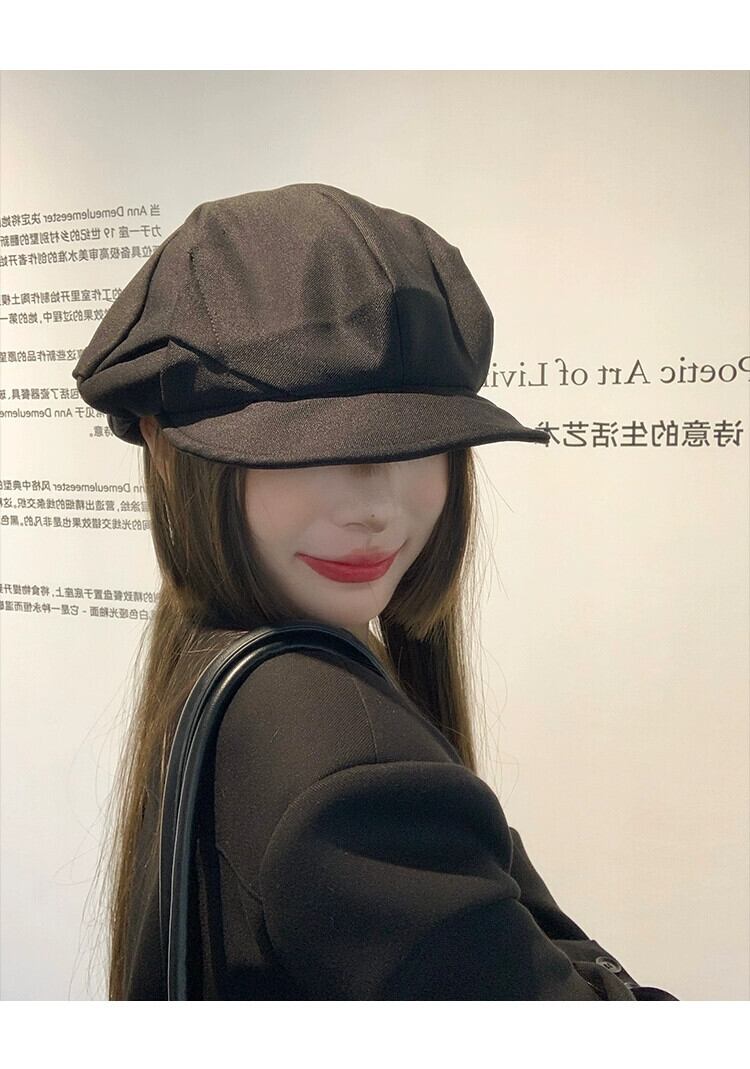 大きい頭囲秋と冬のカモノハシ帽子女性の黒のカジュアルなレトロ画家ベレー帽顔小さな雲八角形帽子 ブラック オータム 秋物 ウィンター 冬物 ベレット ヘアアクセサリー 15dd29369351932