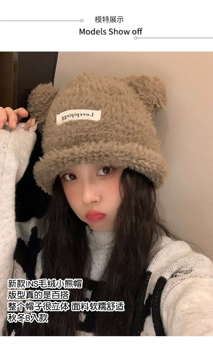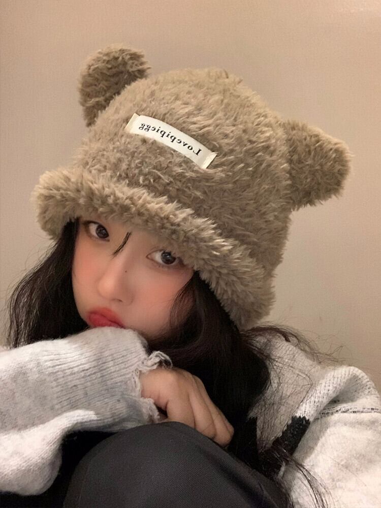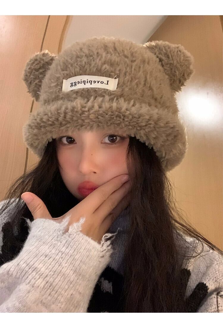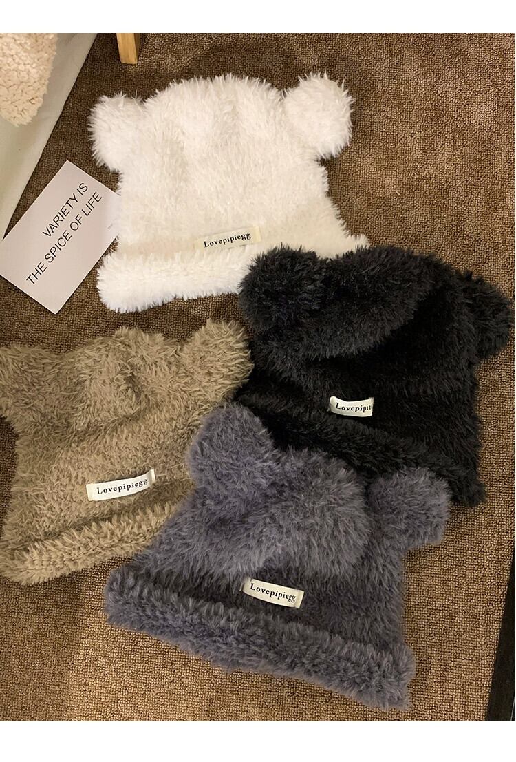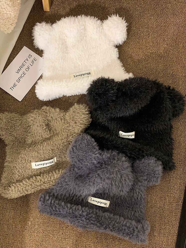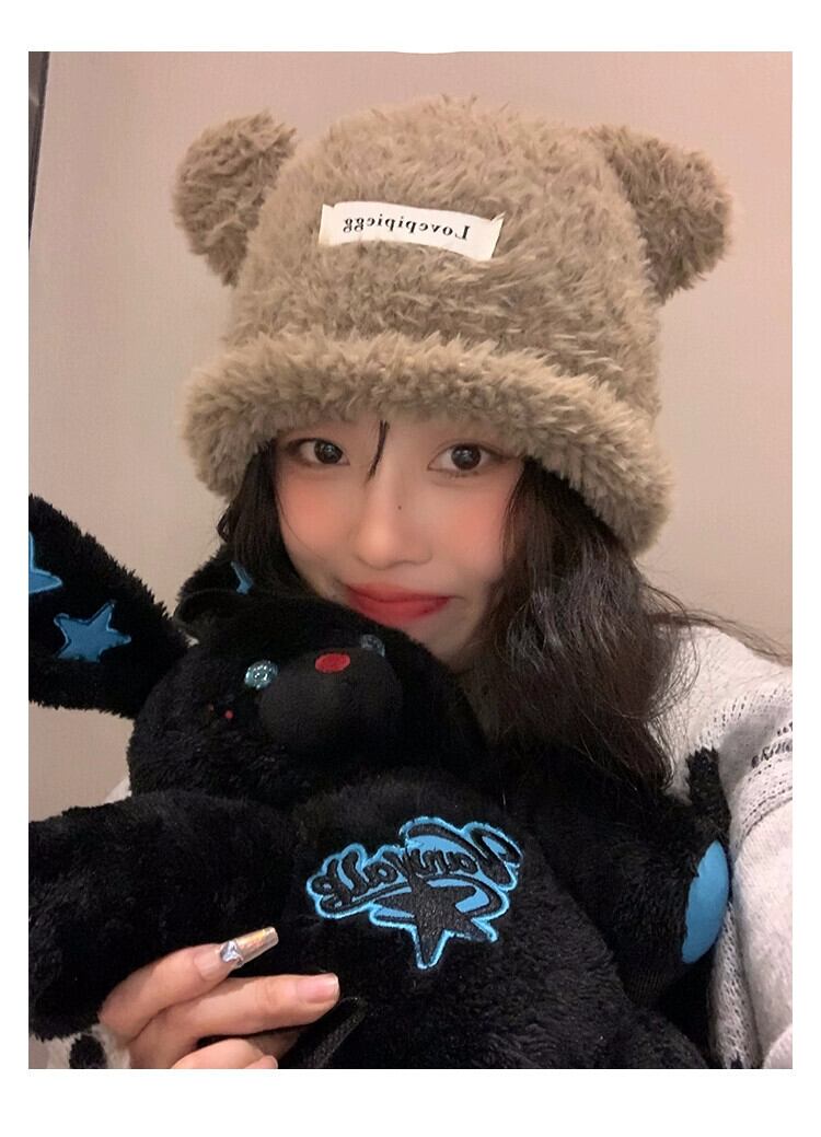 かわいいクマの耳ぬいぐるみ帽子女性 2023 冬暖かい毛皮のようなニットビーニー帽子大頭サイズ 大人ガーリー スウィート キュート カジュアル ウィンター 冬物 15dd20099962264