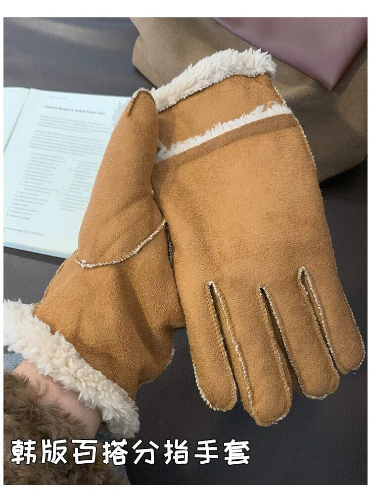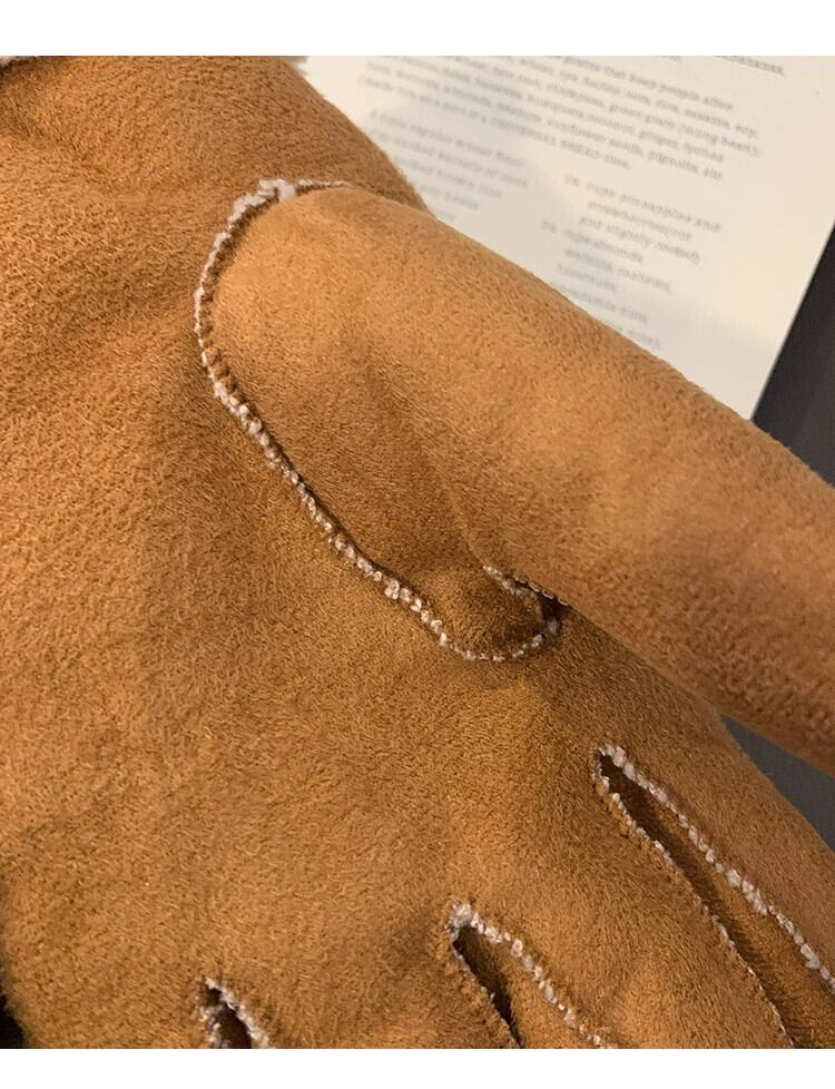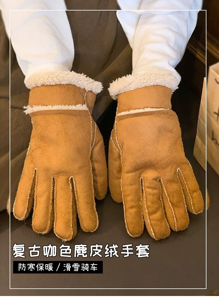 アメリカンレトロ手袋女性冬の屋外乗馬とスキー防風電気自動車 5 本指スエード肥厚防寒 スウェード ウィンター 冬物 15dd58332852634