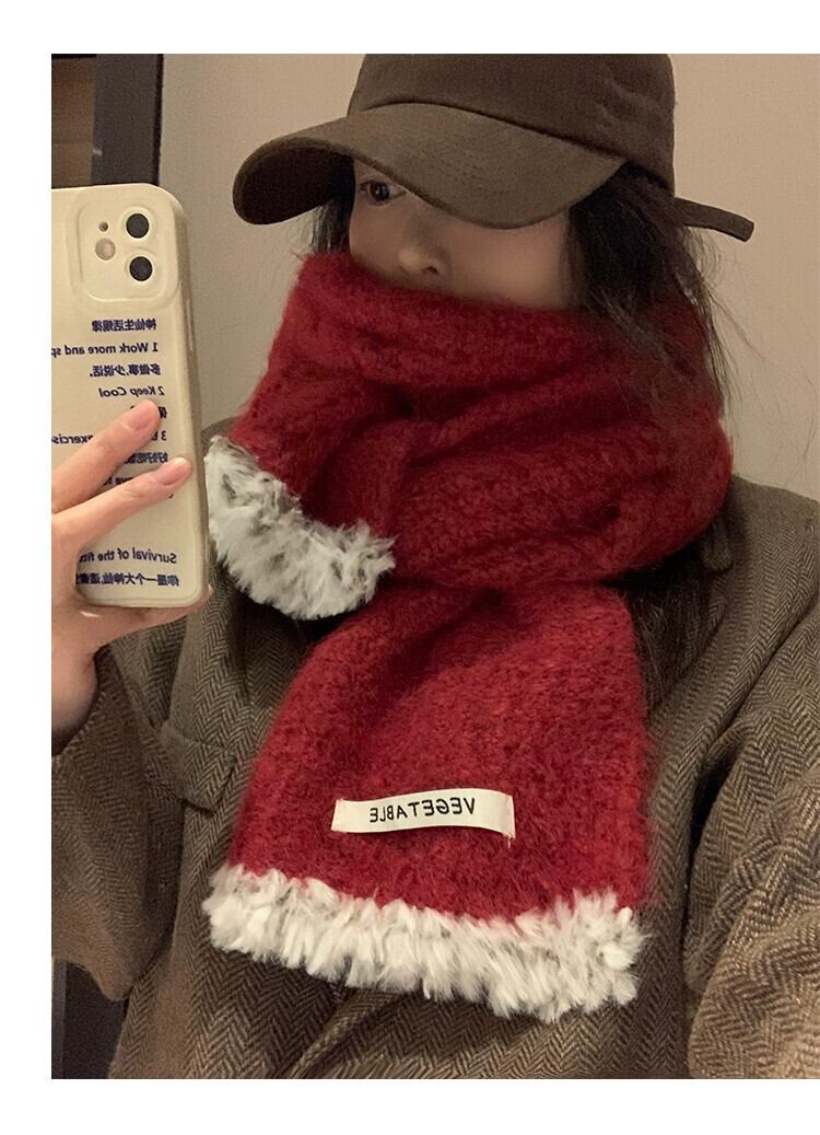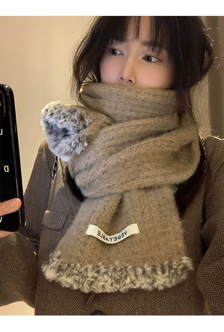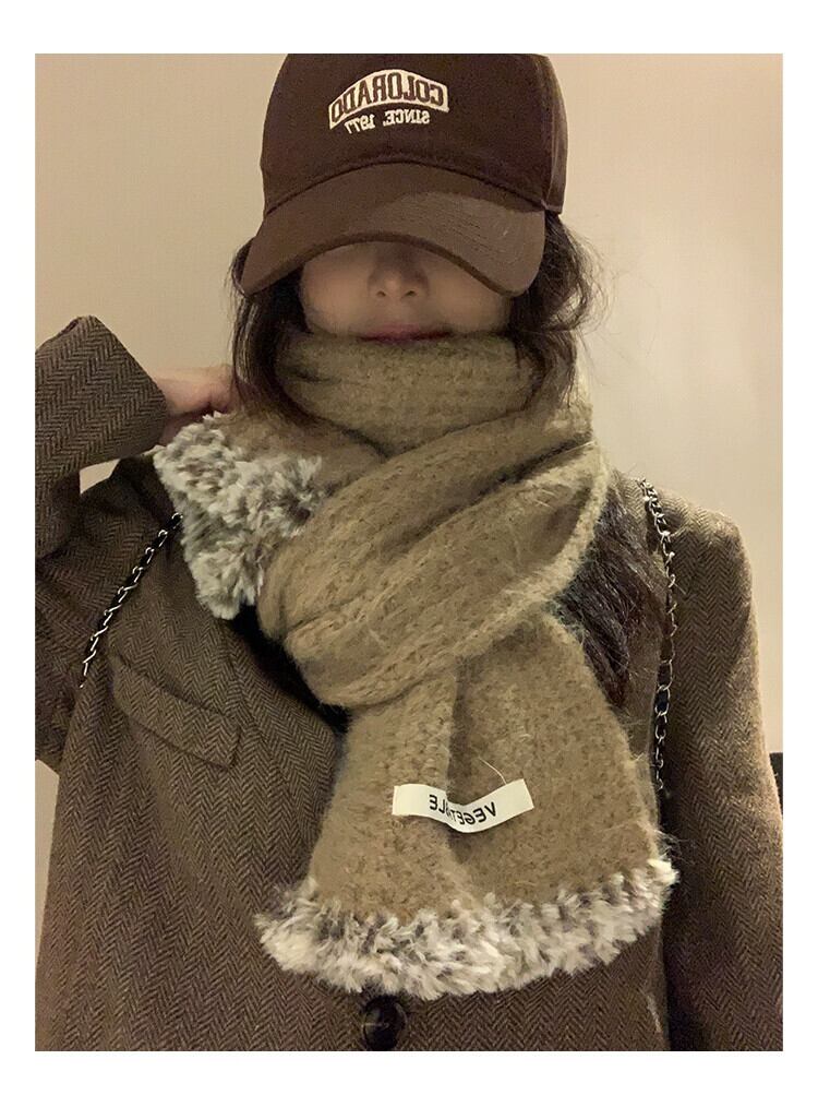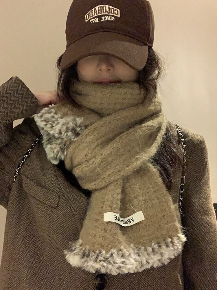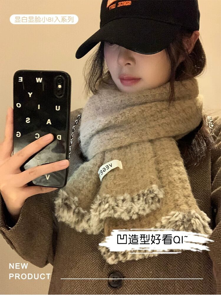 ソフトワックススカーフ女性 2023 冬の新しいニット暖かい多用途学生カップルウールスカーフトレンディなウールを含む ウィンター 冬物 15dd74086083331