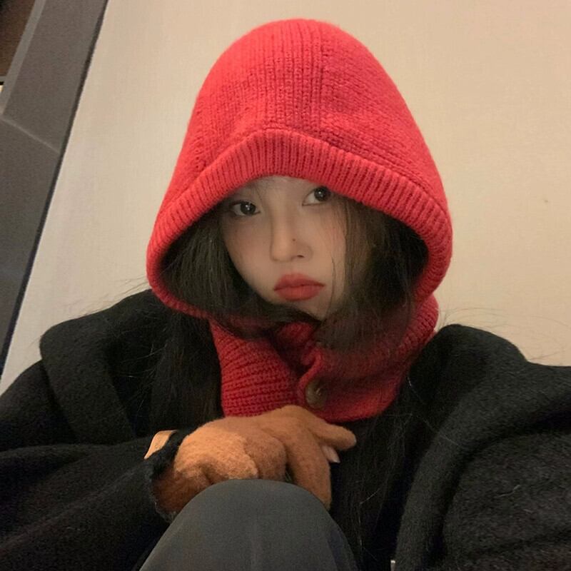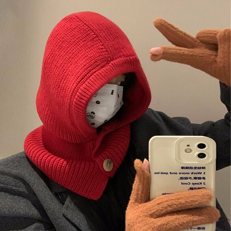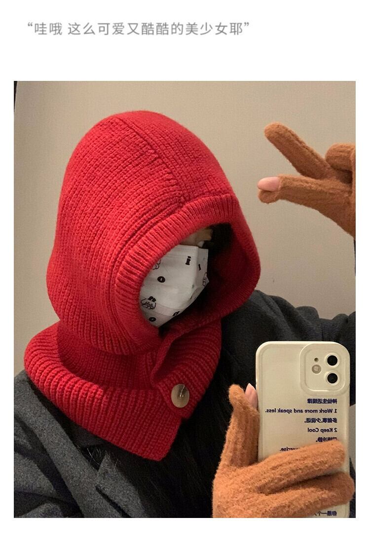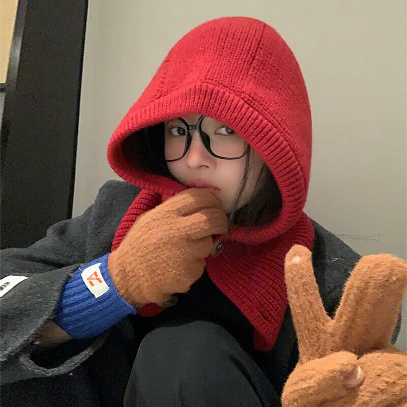 バラクラバ秋冬レディースレッド暖かいニットウール年帽子ワンピース耳保護スカーフ オータム 秋物 ウィンター 冬物 15dd52624486156