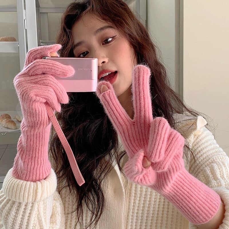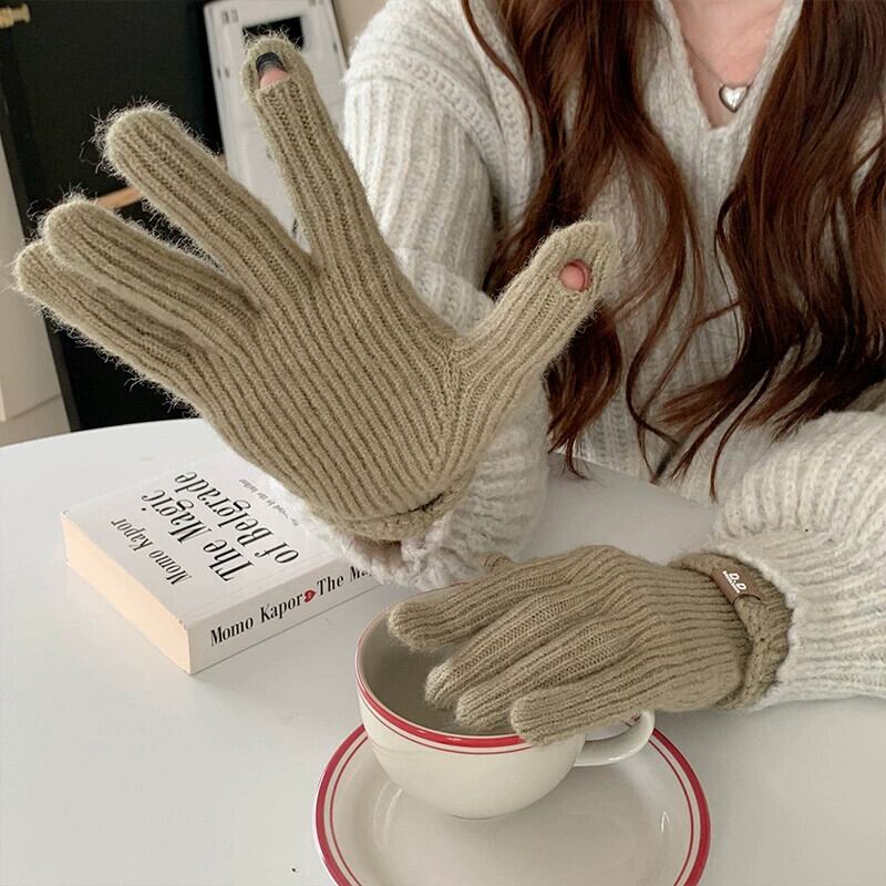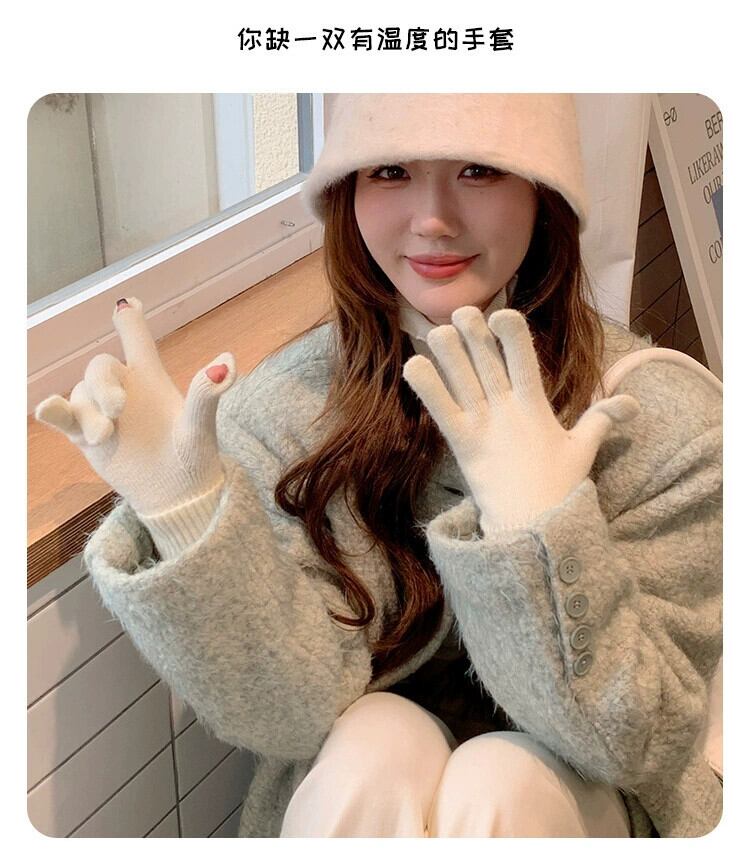 冬のウールニットの厚い漏れやすい指のソリッドカラーの拡張手袋、タッチスクリーンライディング、防風性と暖かさ ウィンター 冬物 15dd56482189288