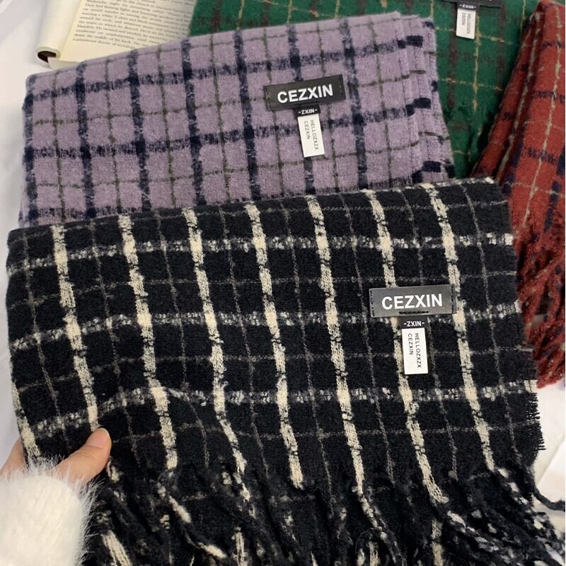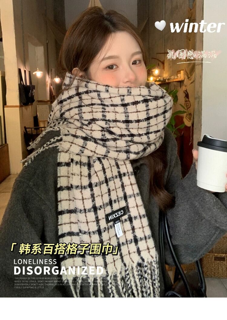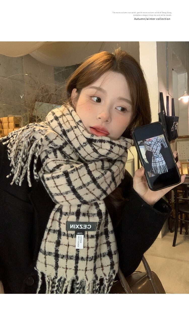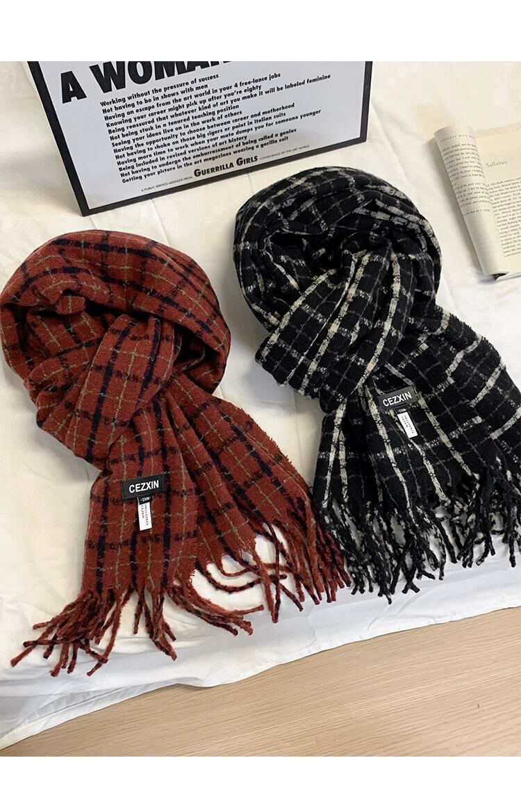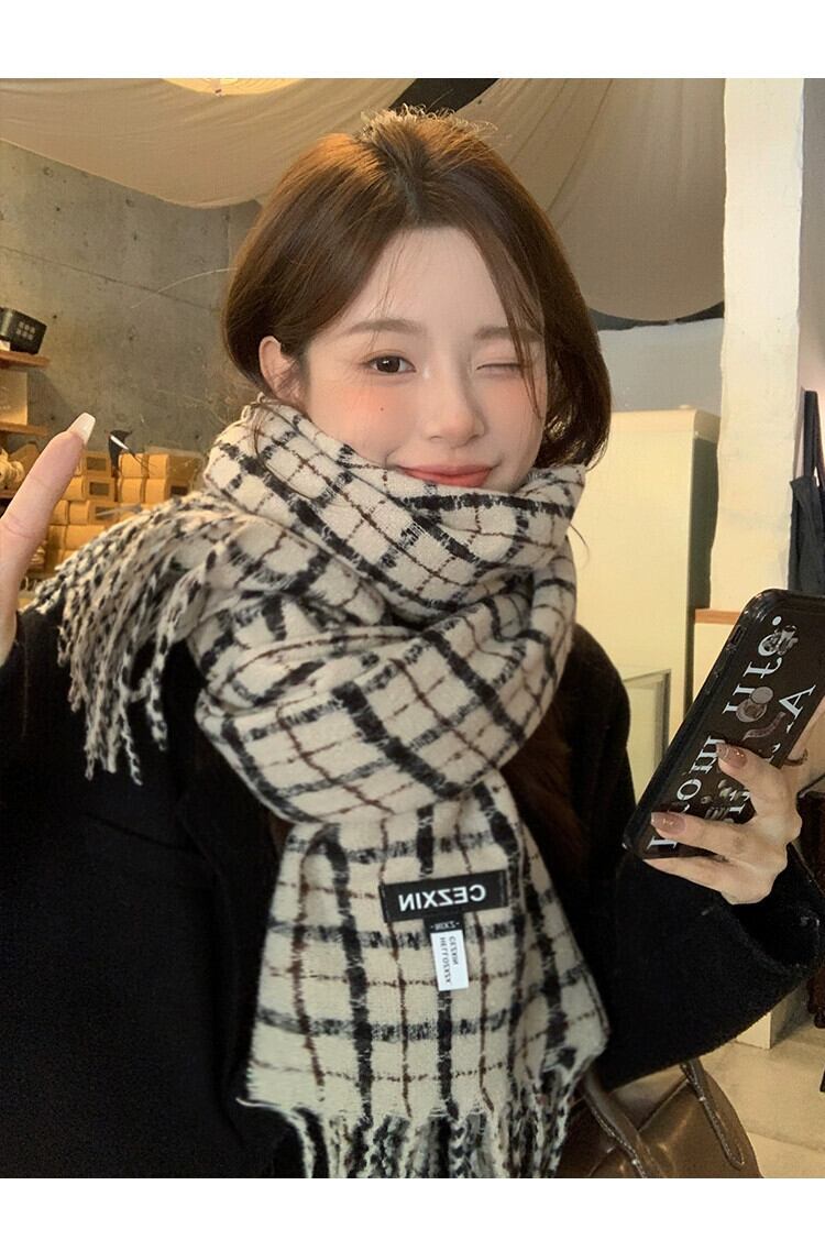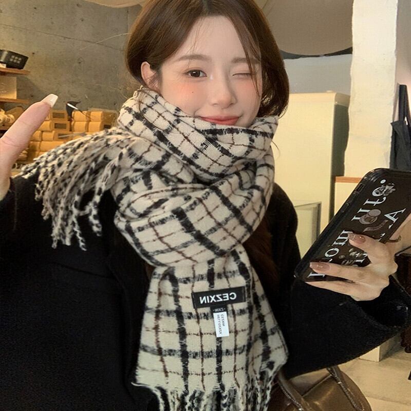 レトロ模造カシミヤスカーフ女性 2023 冬の新しいチェック柄ハイエンド暖かいスカーフ寒いロングショールトレンドを防ぐ ウィンター 冬物 15dd33966070276