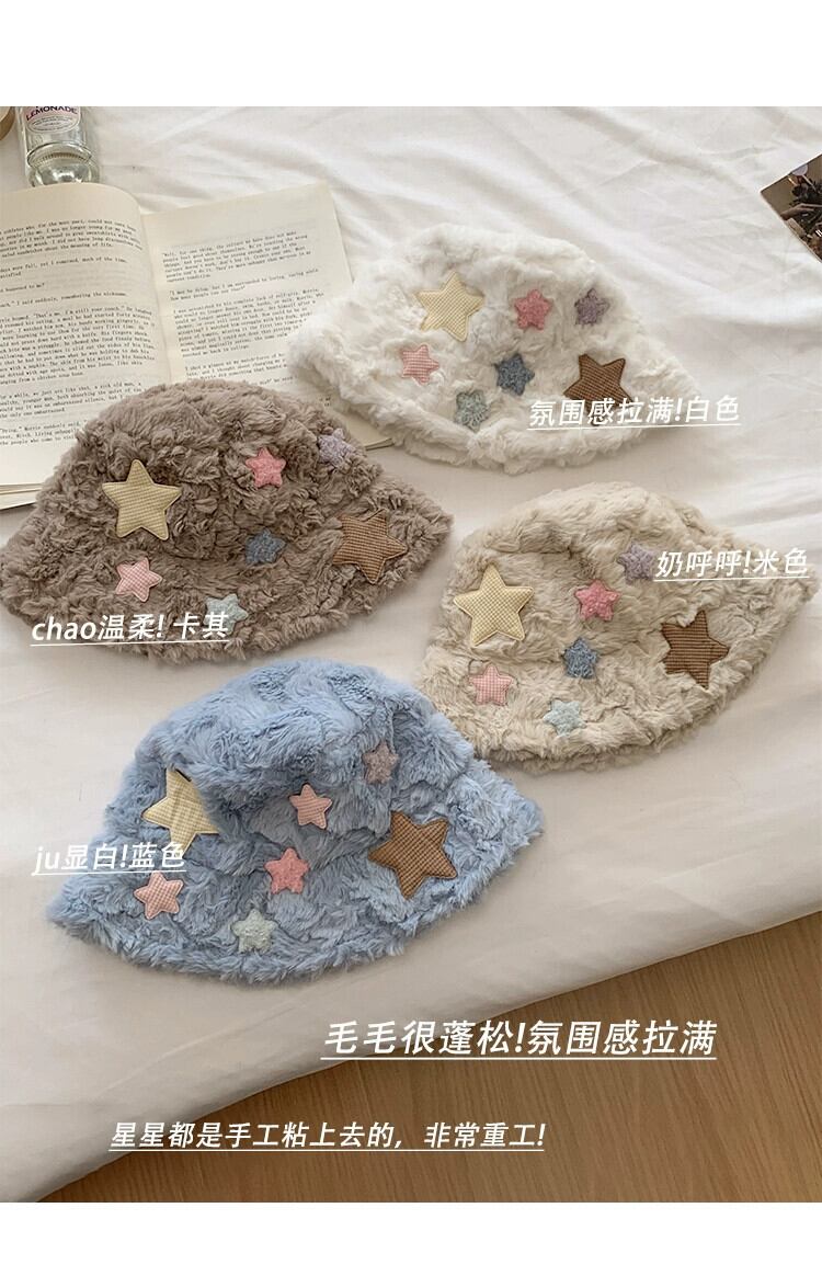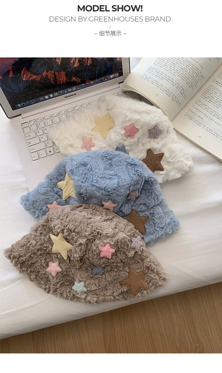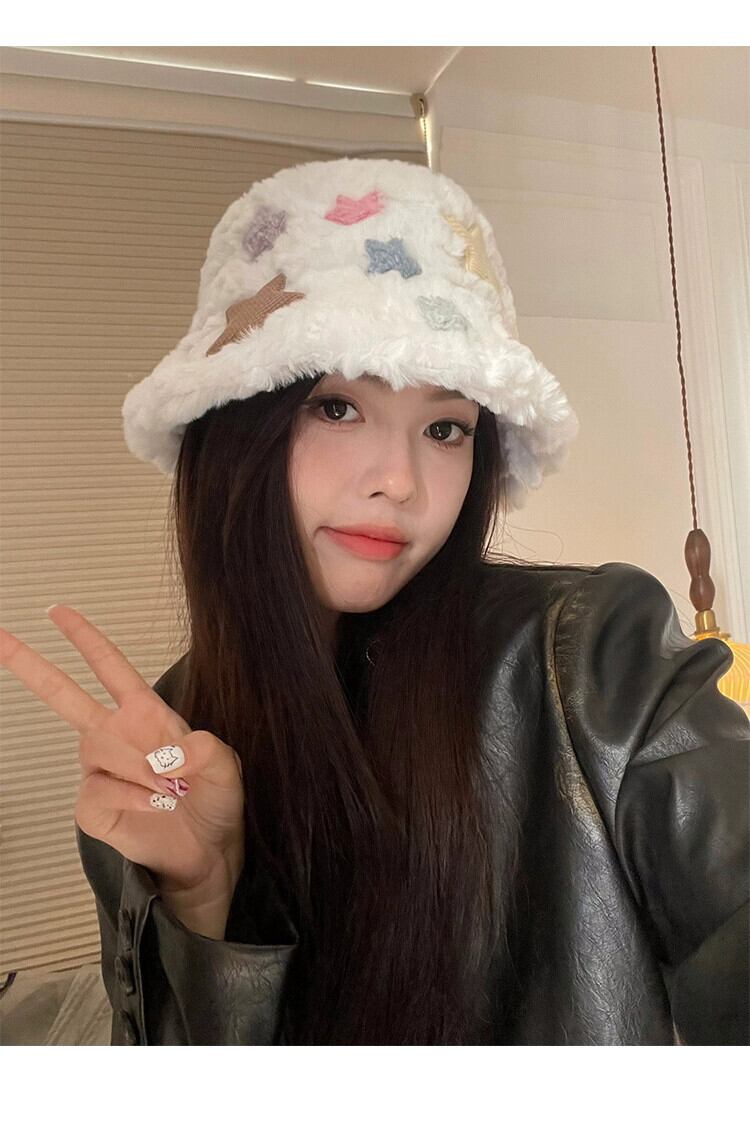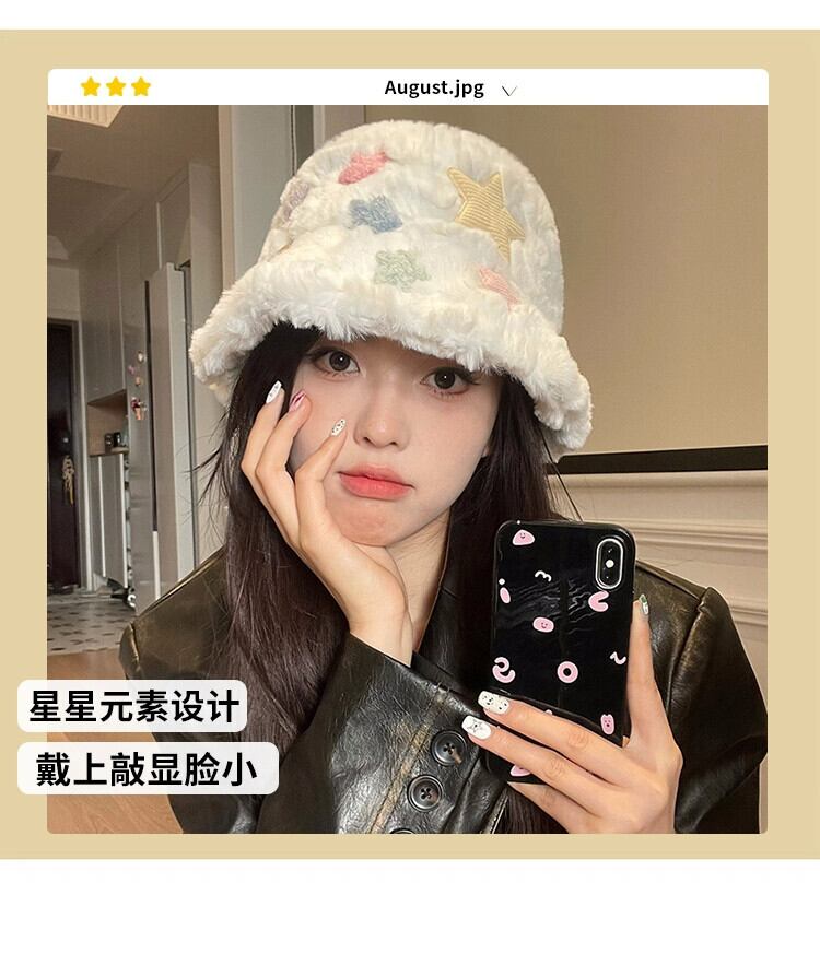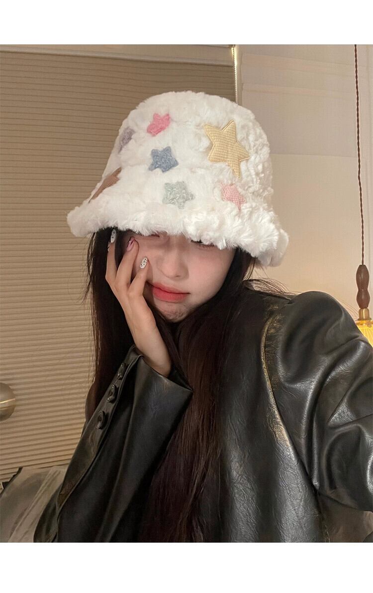 大気の白い星ぬいぐるみ帽子漁師の帽子の女性の新しい ese スタイルの冬厚くて暖かい小さな盆地帽子顔付き ホワイト ウィンター 冬物 15dd15885177484