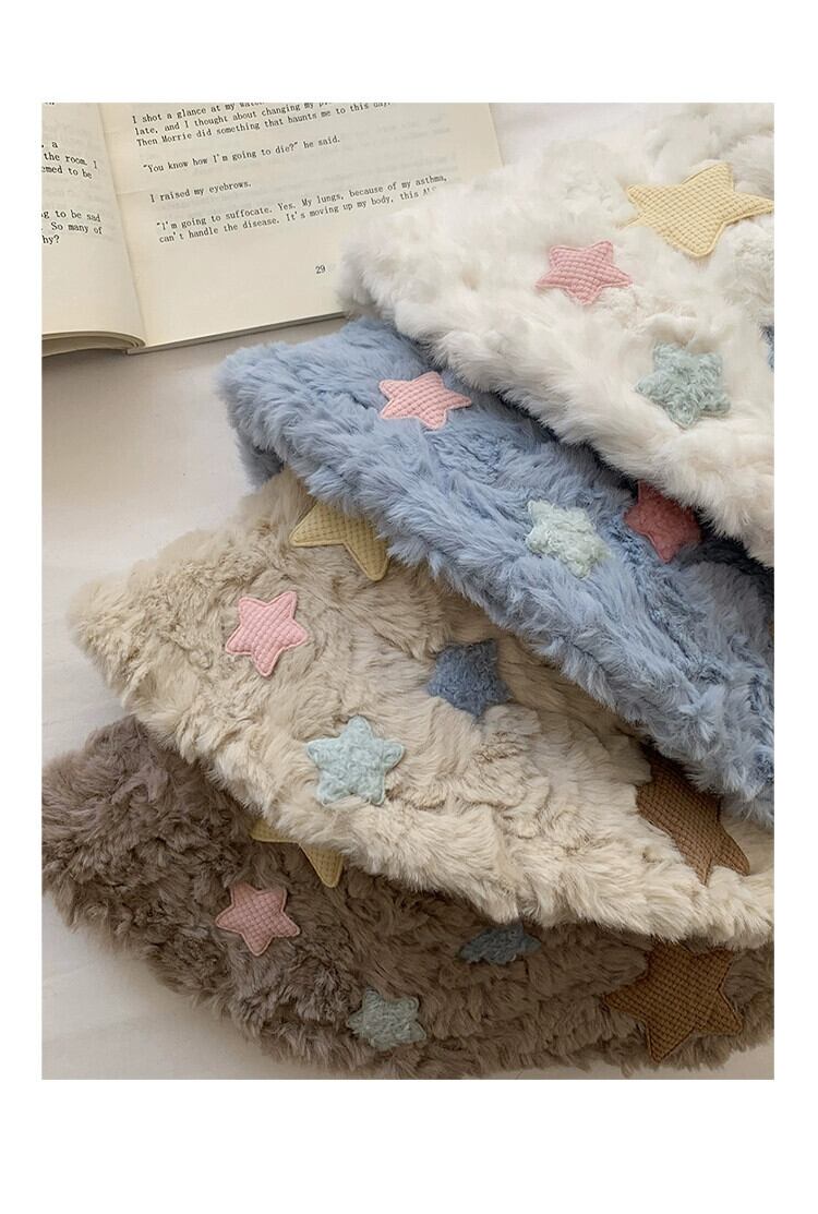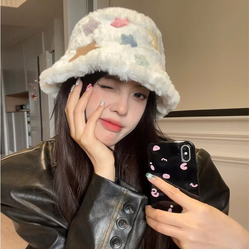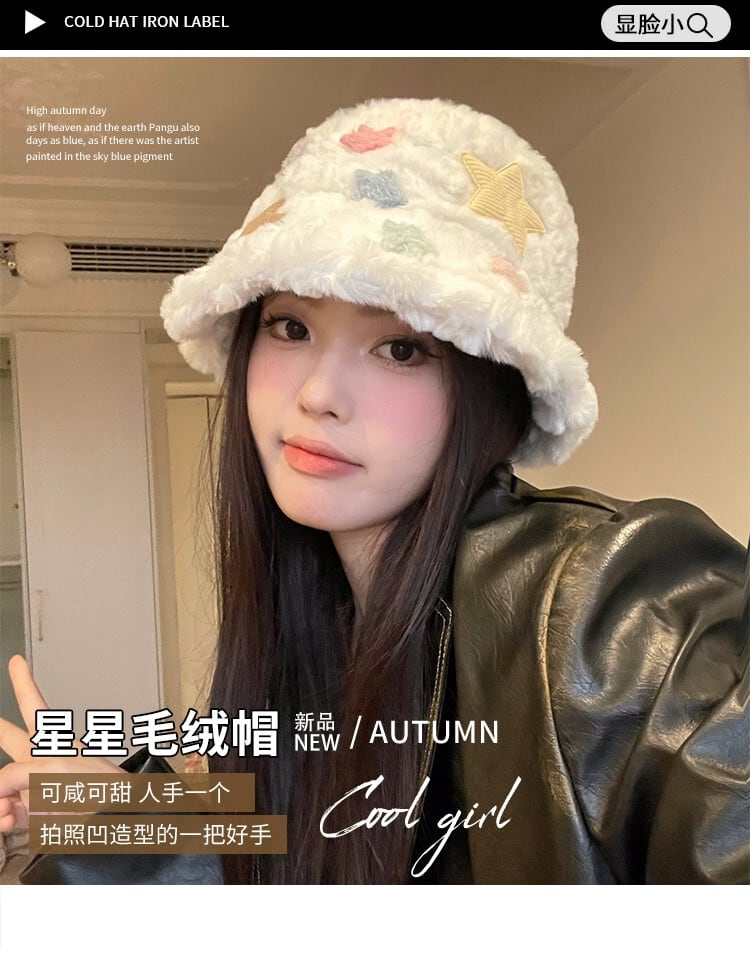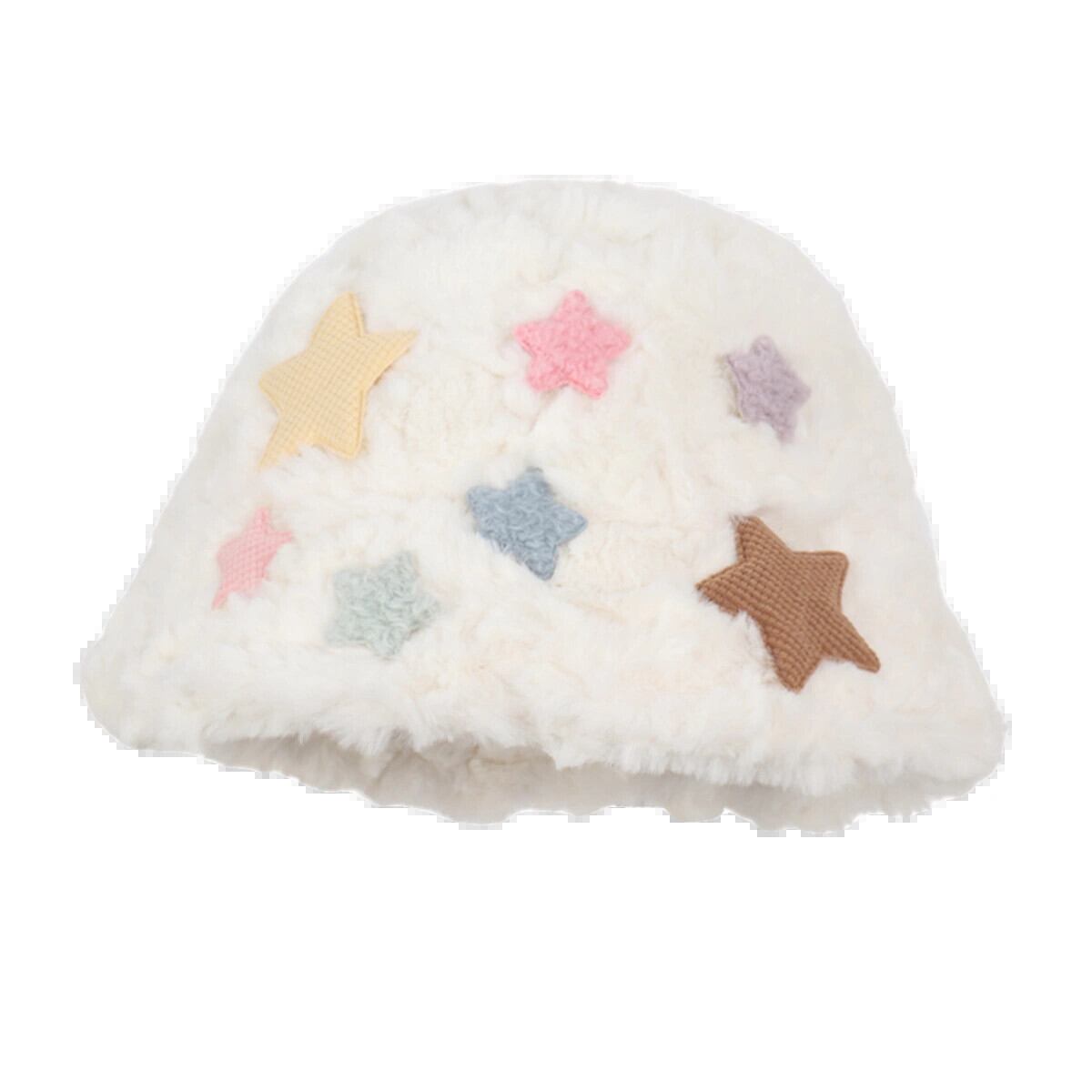 大気の白い星ぬいぐるみ帽子漁師の帽子の女性の新しい ese スタイルの冬厚くて暖かい小さな盆地帽子顔付き ホワイト ウィンター 冬物 15dd15885177484
