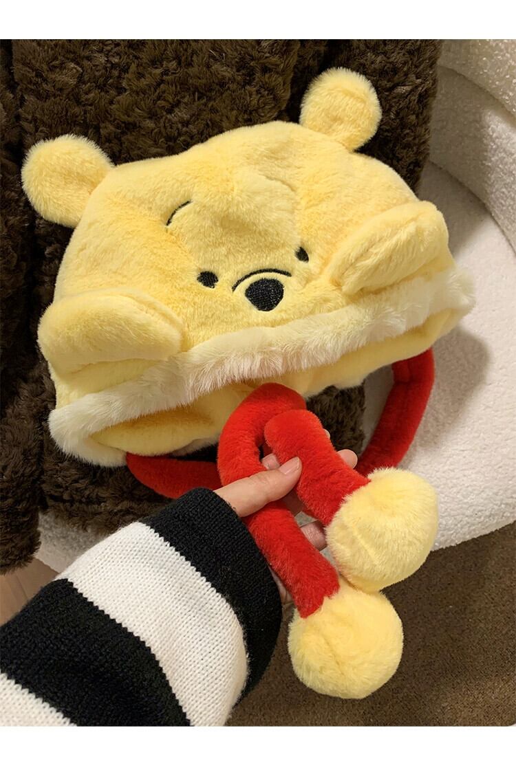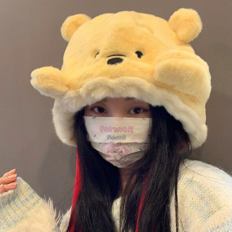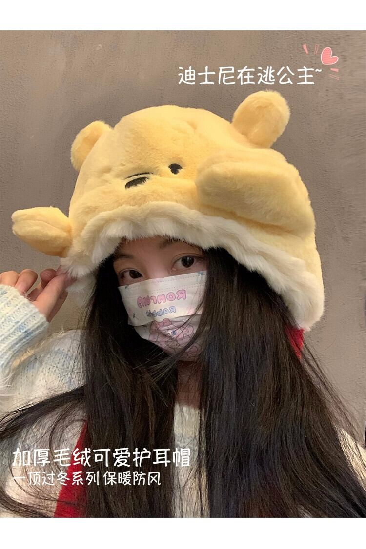 ディズニー本物のかわいいぬいぐるみくまのプーさん包頭帽子冬の暖かさ耳保護防寒帽子プラスベルベットプルオーバー帽子 大人ガーリー スウィート キュート カジュアル ウィンター 冬物 天然 15dd71142093186