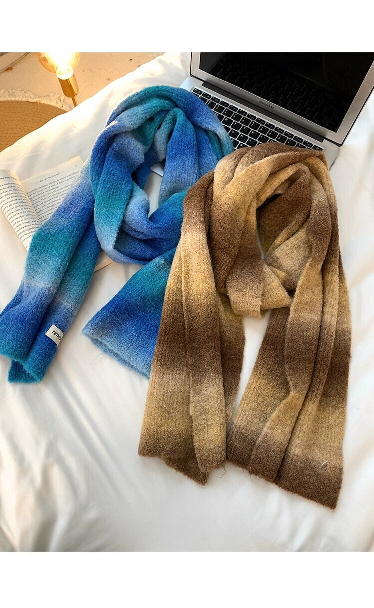 2023 年冬のウール スカーフ レディース 新しいニット ウール オールマッチ スカーフ グラデーション メイラード ウェア学生トレンドが含まれています ウィンター 冬物 15dd78102338362