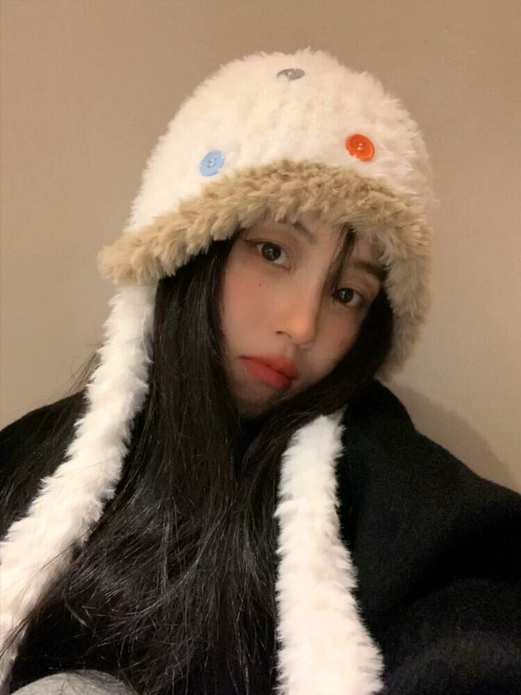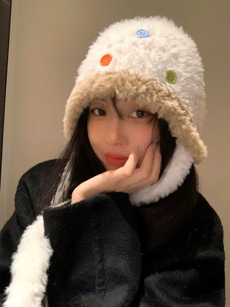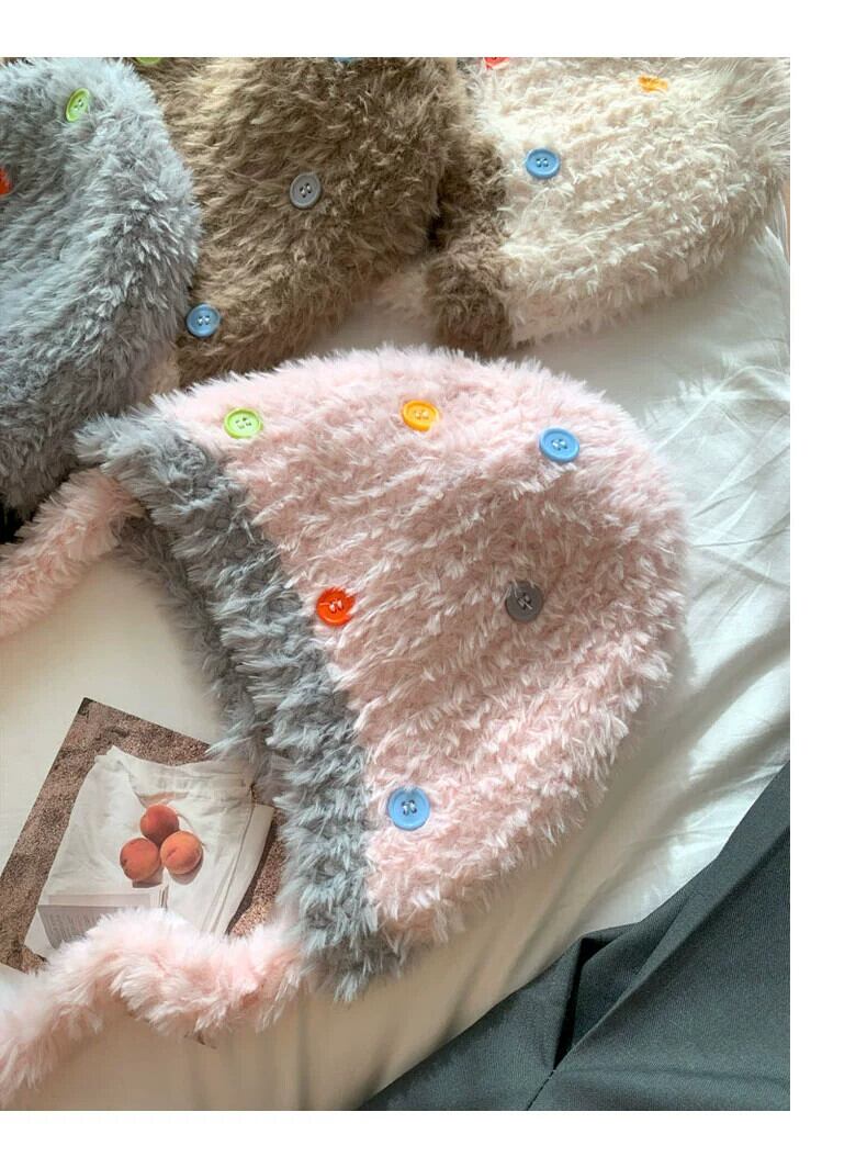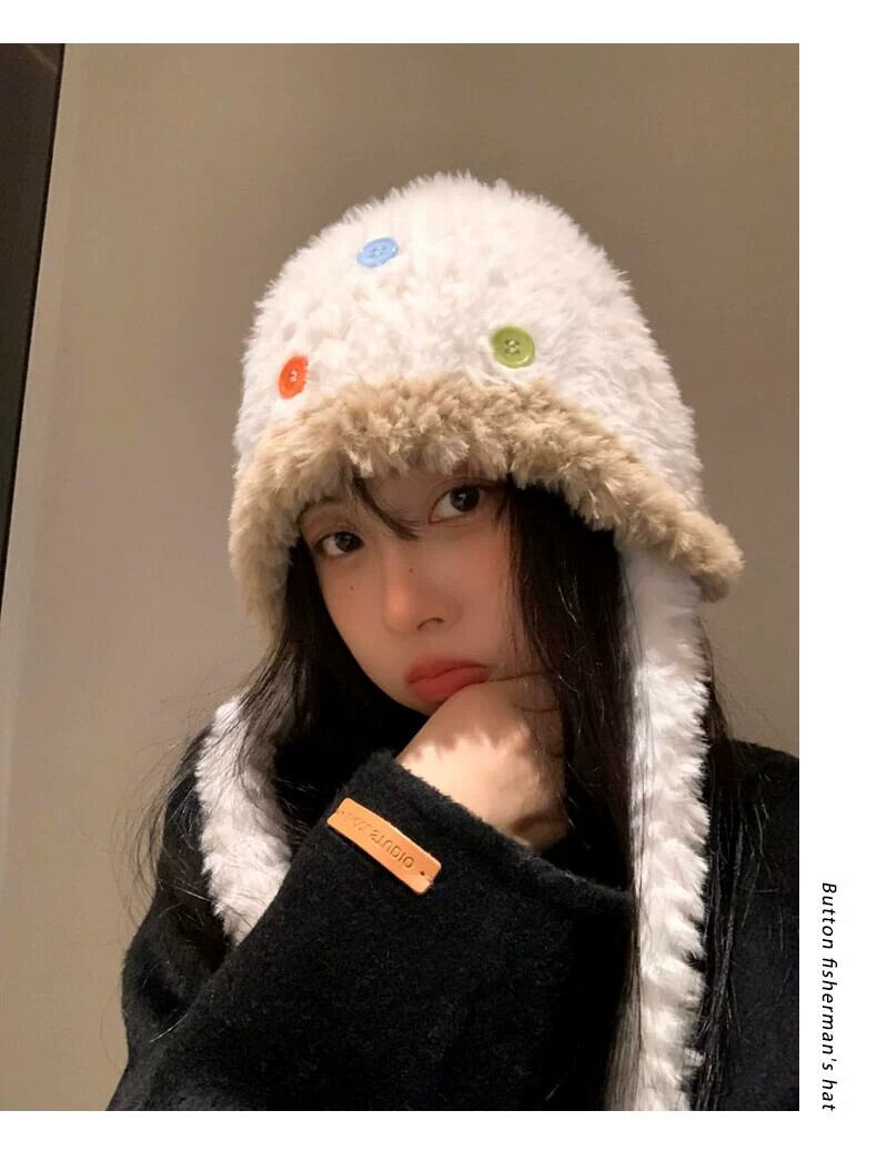 冬の耳の保護雷峰帽子女性 2023 新しいベルベット肥厚スタイルかわいいボタンニット帽子暖かい豪華な帽子 大人ガーリー スウィート キュート カジュアル ウィンター 冬物 15dd11196975547